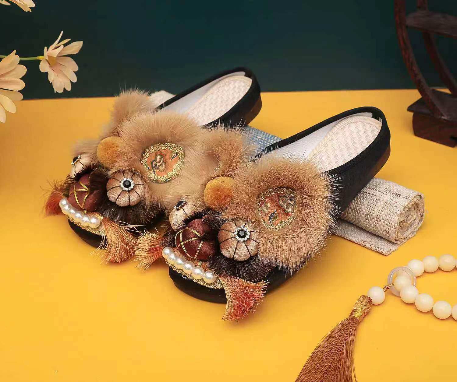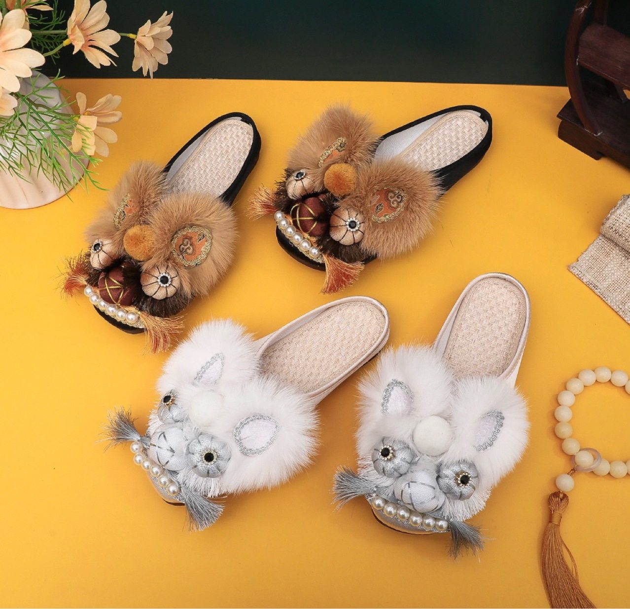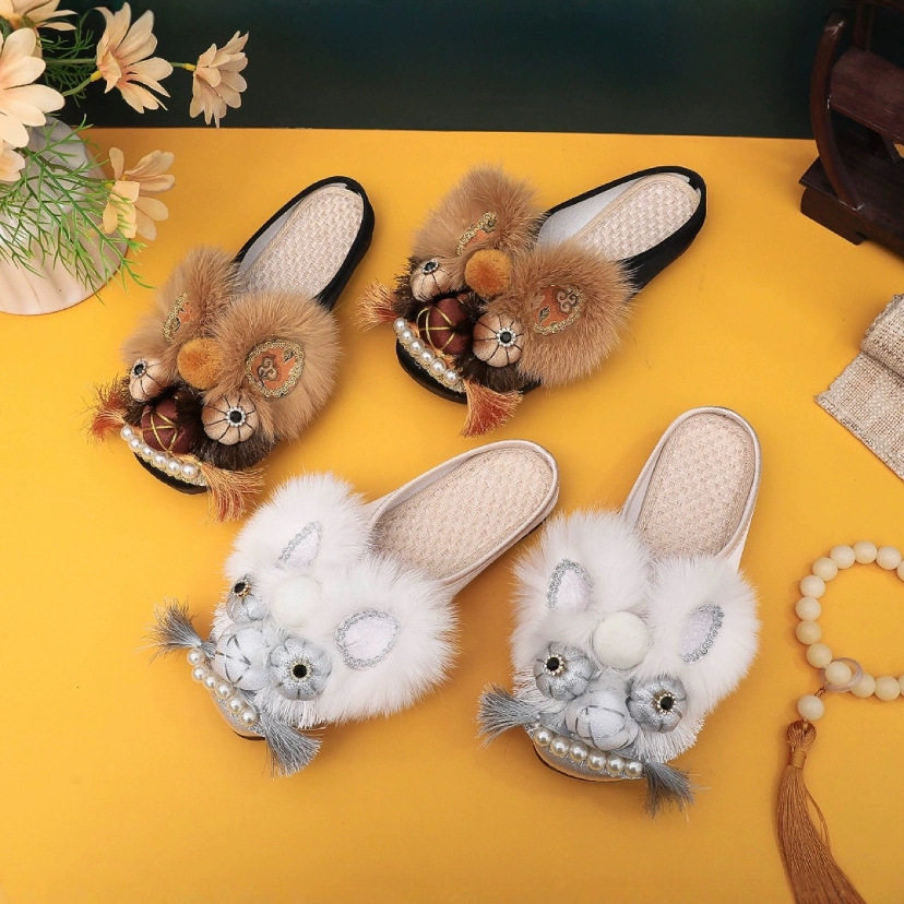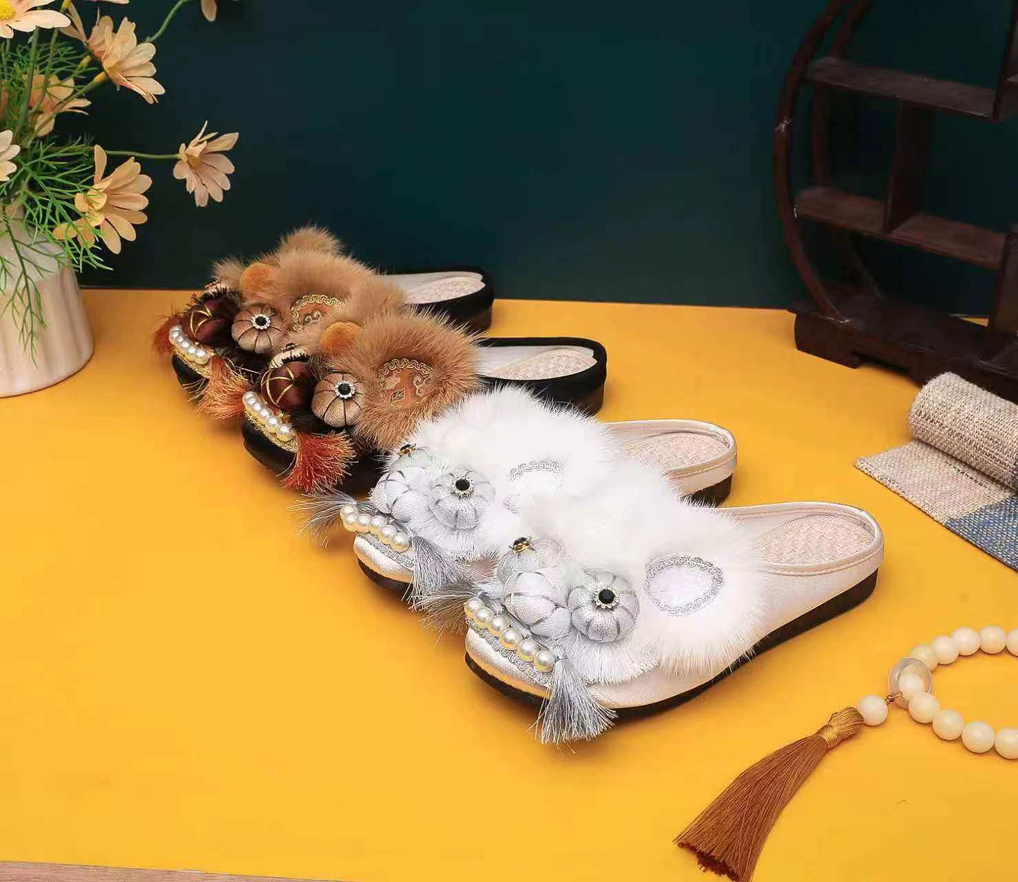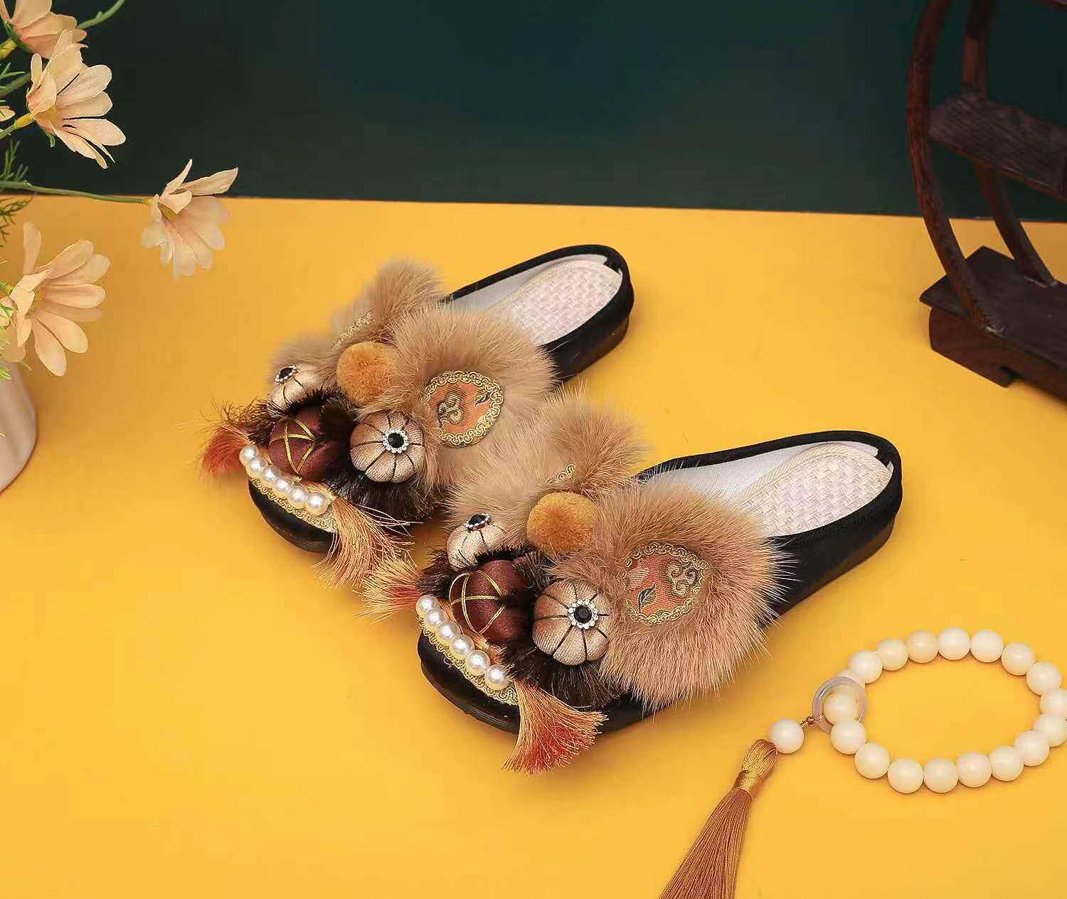 New Original Ethnic Style Adult Tiger Head Slippers Shoes Hand-Embroidered Shoes National Trend Retro Flats Folk Cloth Shoes for Women