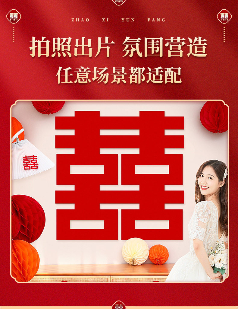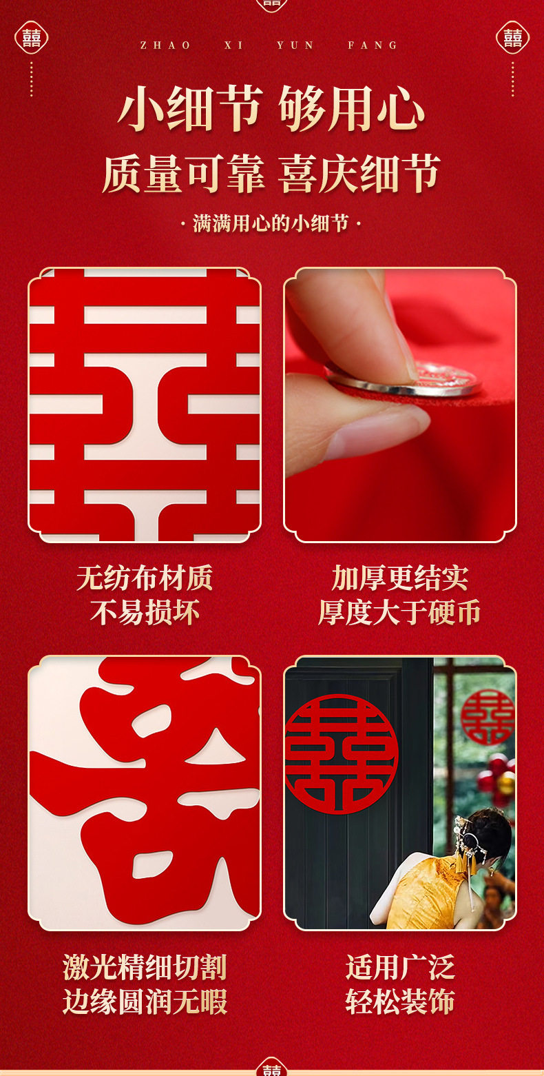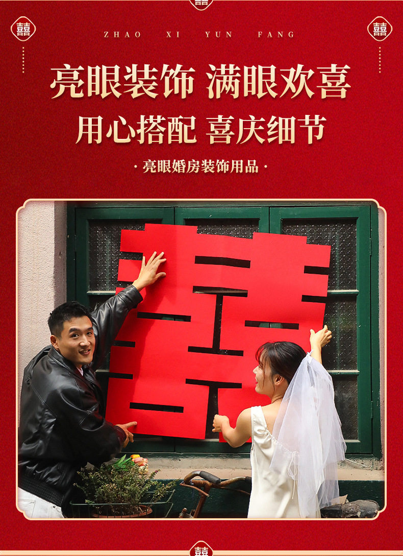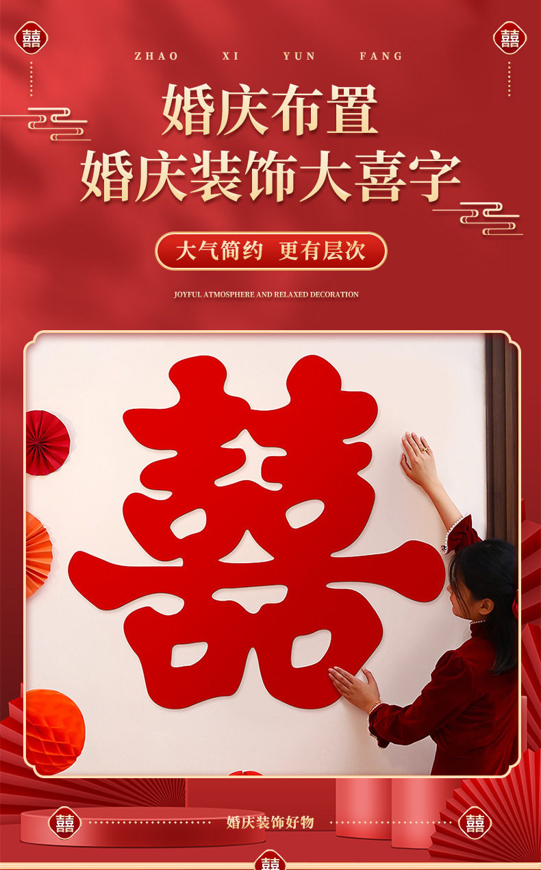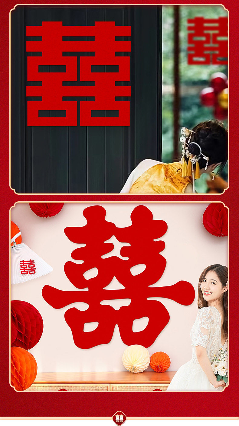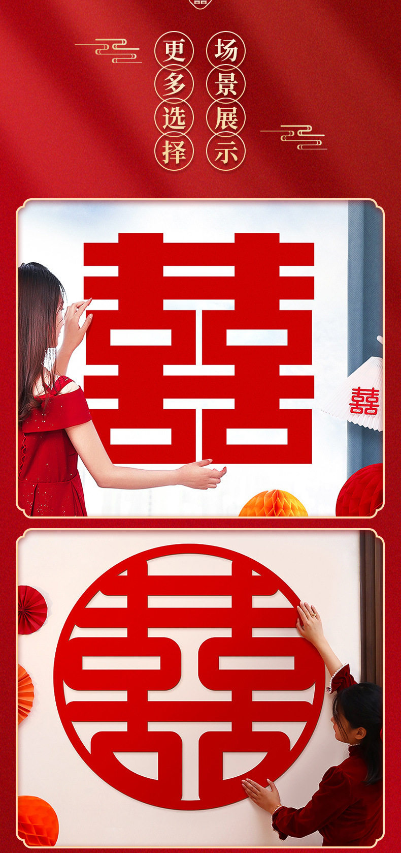 Extra-Large Double Happiness Character Wedding Supplies, Wedding Room Decorations, Double Happiness Character Stickers, Wedding Double Happiness Character Decorations, Wedding Room Arrangement, Double Happiness Character Stickers