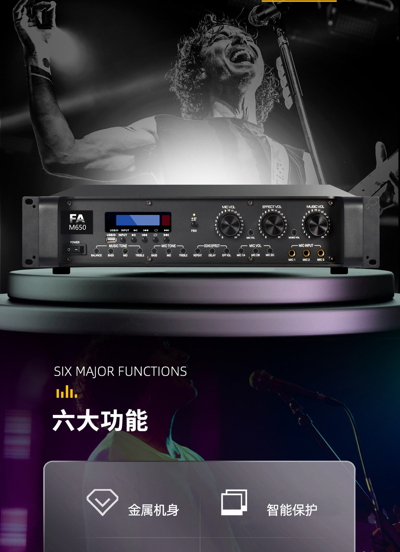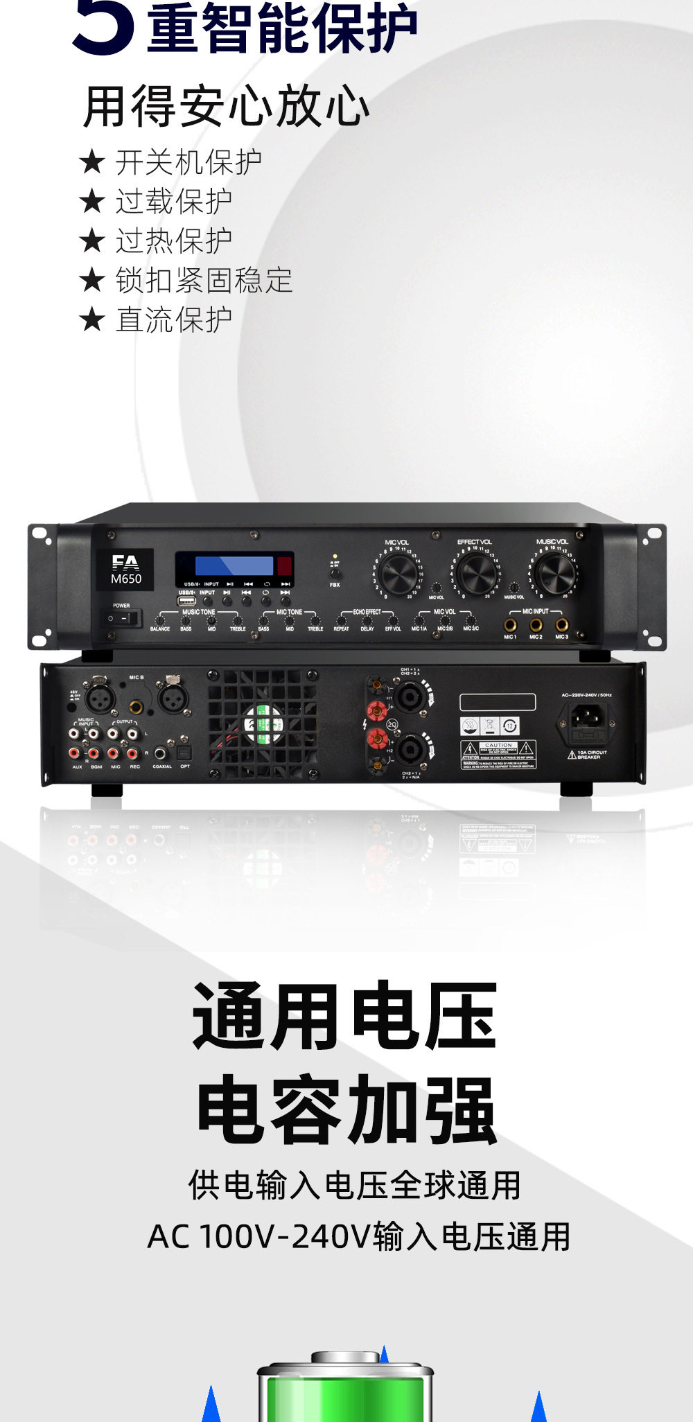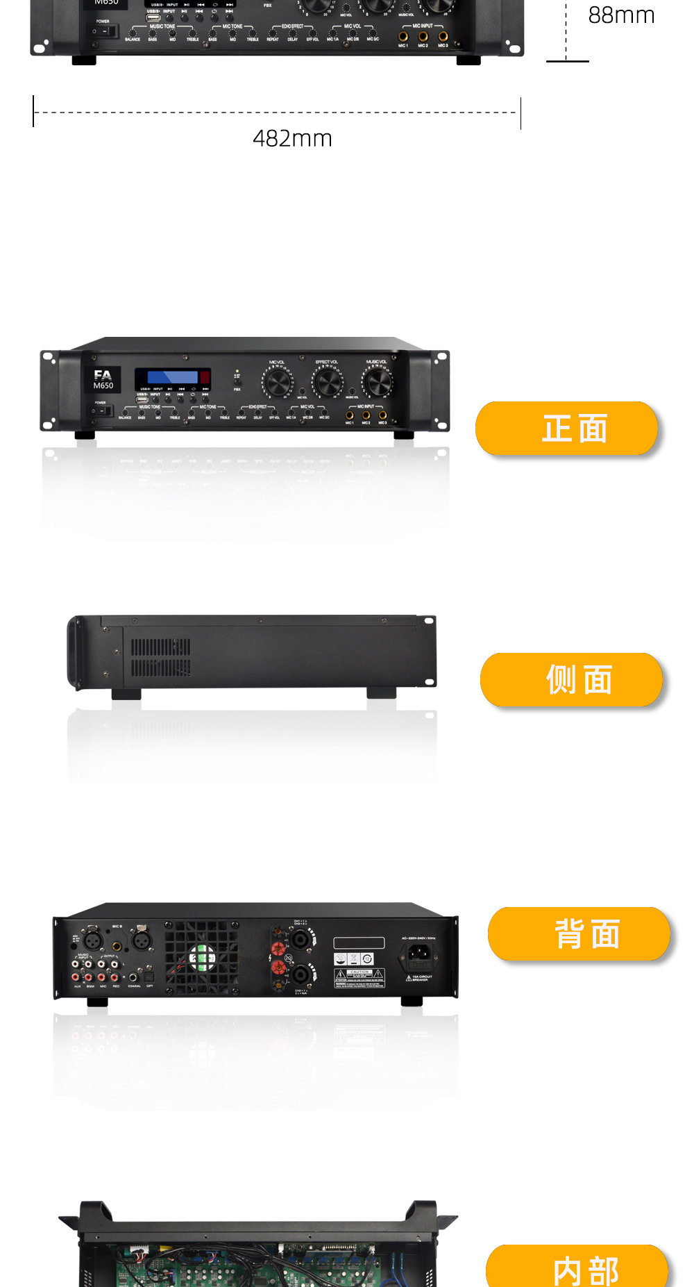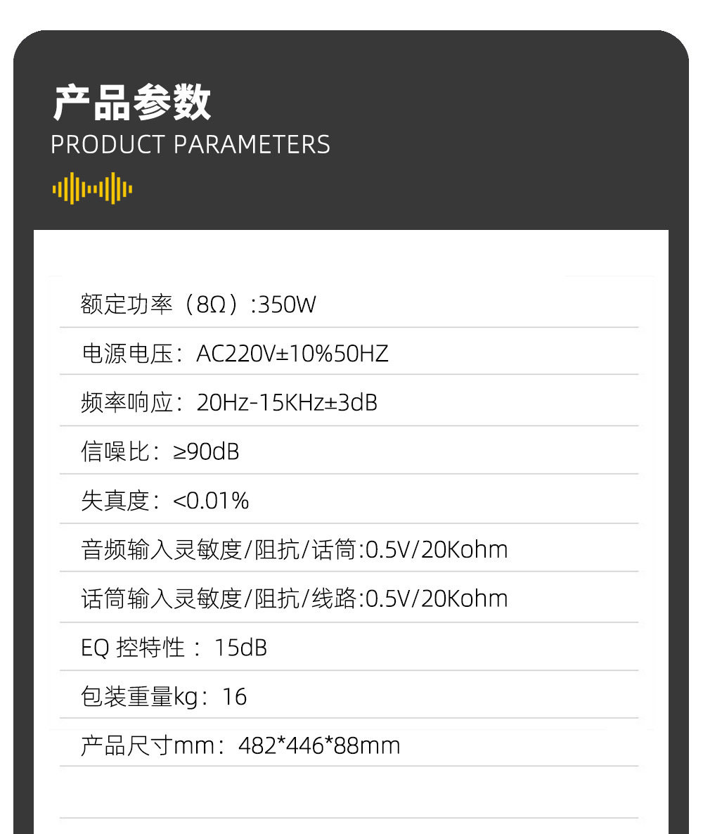 | Product specifications | 2*300W,2*400w,2*500w |