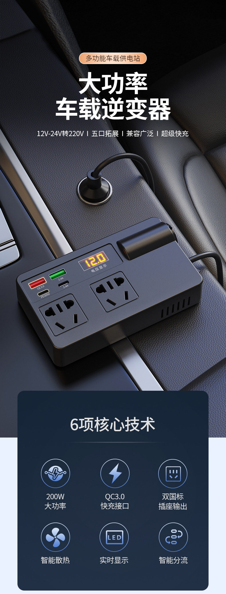 Car Truck 12V/24V to 110V/220V Multifunctional Car Inverter Converter Socket Type Electrical Appliance