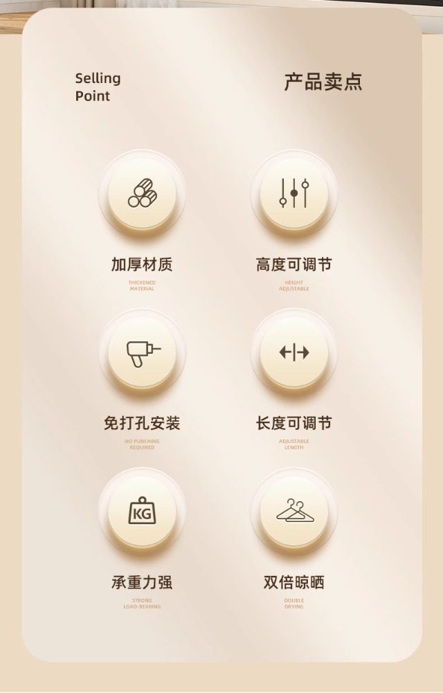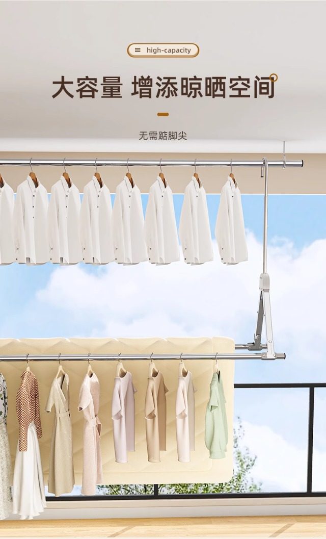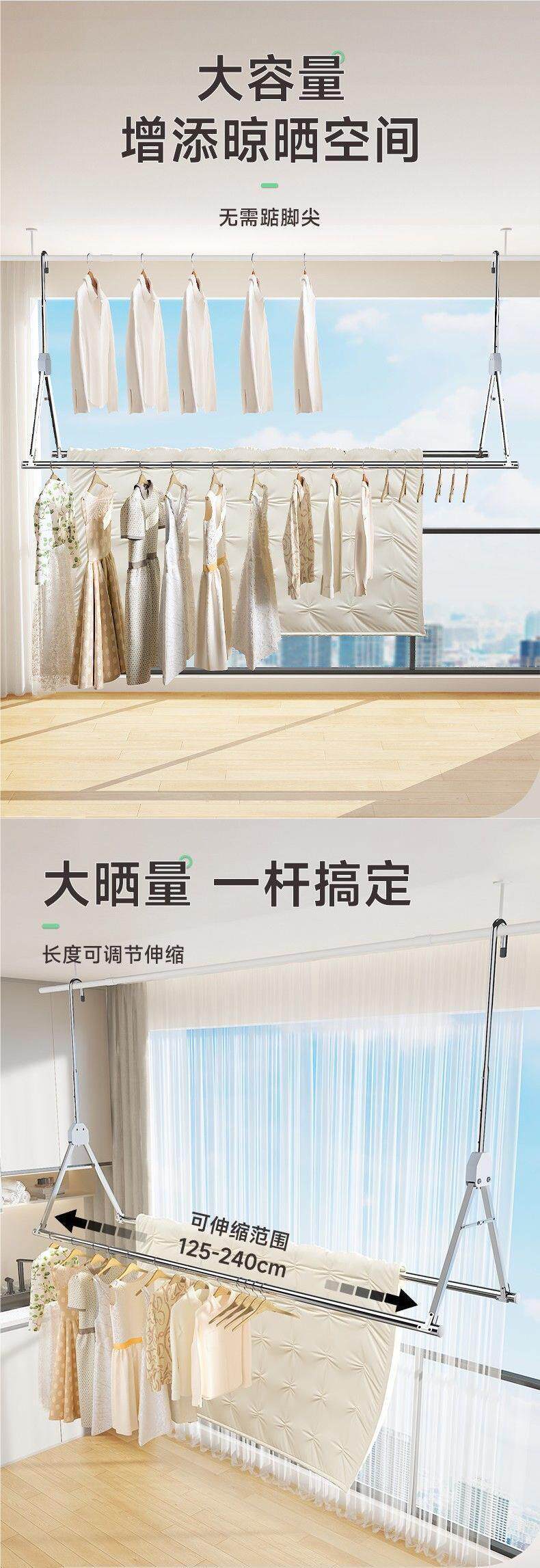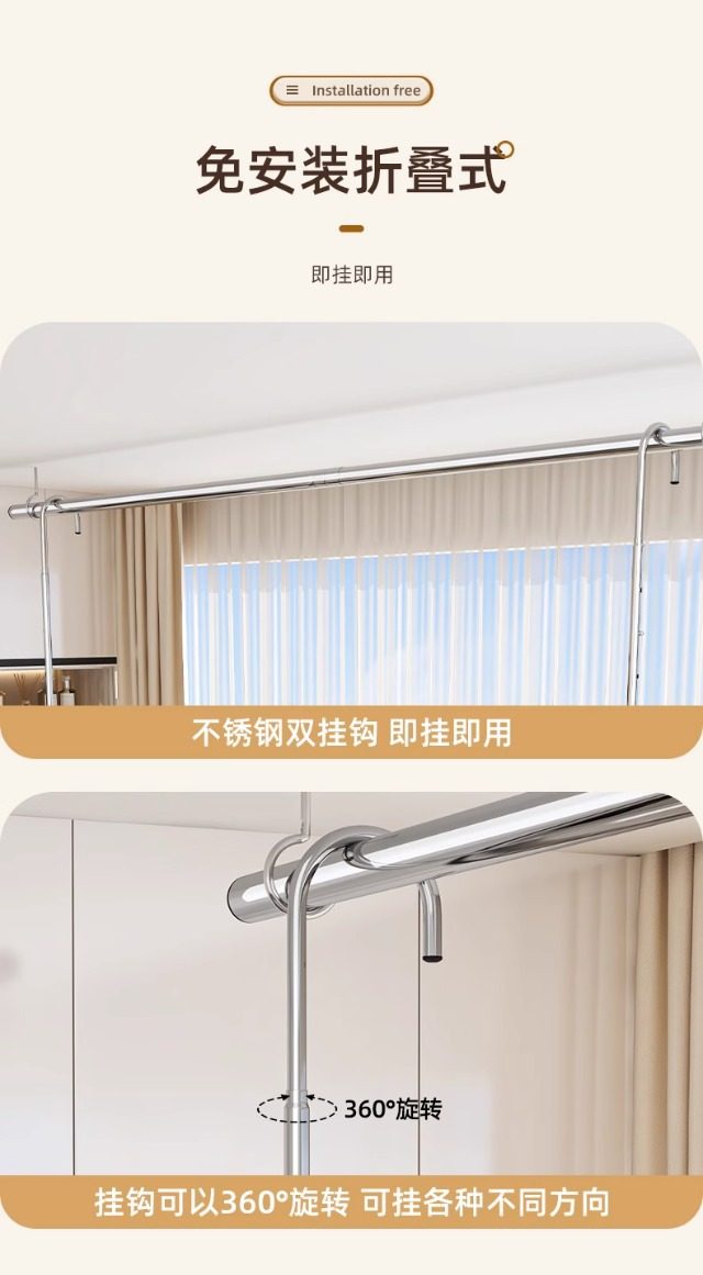 | Color | Ready to hang - fixed style 80⚑✦,Ready to hang & use: [extendable 80-160cm + 3-level height adjustment]⚑✦,Ready to hang & use: [extendable 105-200cm + 4-level adjustable height]⚑✦,Ready to hang and use [telescopic 125-240cm + five-speed lifting] ⚑ ✦,Ready to hang: [fixed style 100+ windproof hooks] double rod⚑✦,Ready to hang: extendable double clothes rack (85-160cm) with 3-level height adjustment & windproof hooks⚑✦,Ready to hang: extendable double clothes rack (105-200cm) with 4-level height adjustment & windproof hooks⚑✦,Hot-selling, ready-to-hang double clothes rack [extendable 125-240cm + 5-level height adjustment + windproof hooks]⚑✦ |