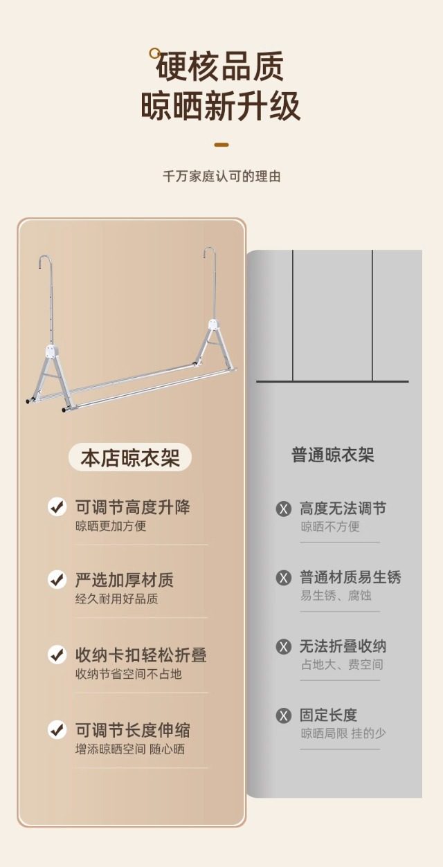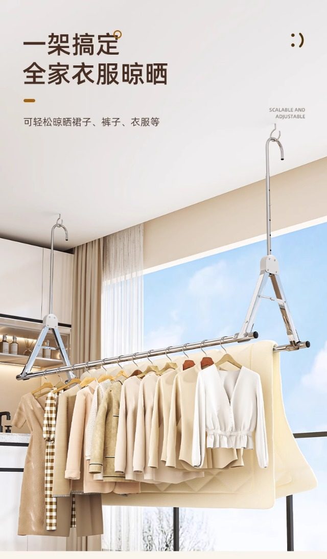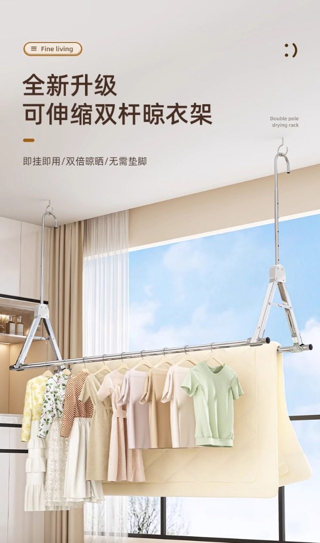 Stainless Steel Telescopic Clothes Drying Rod, Adjustable Height Clothes Drying Rack, Balcony Clothes Drying Artifact, Foldableing Hanging Double Rod