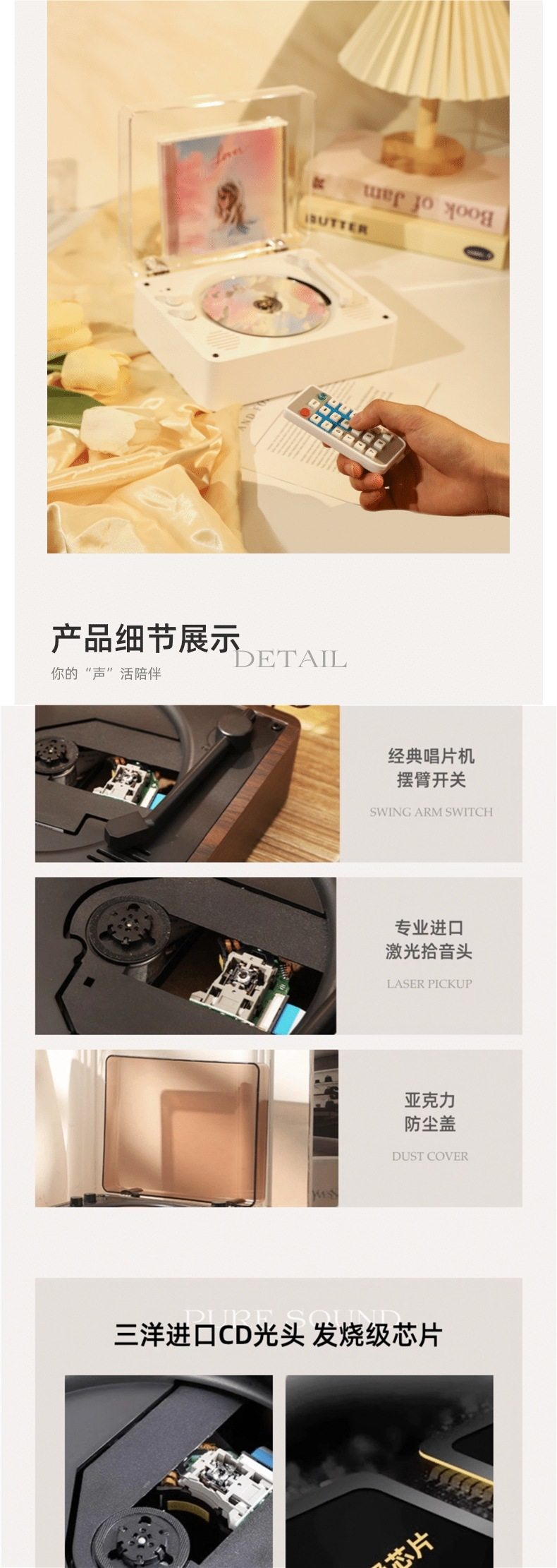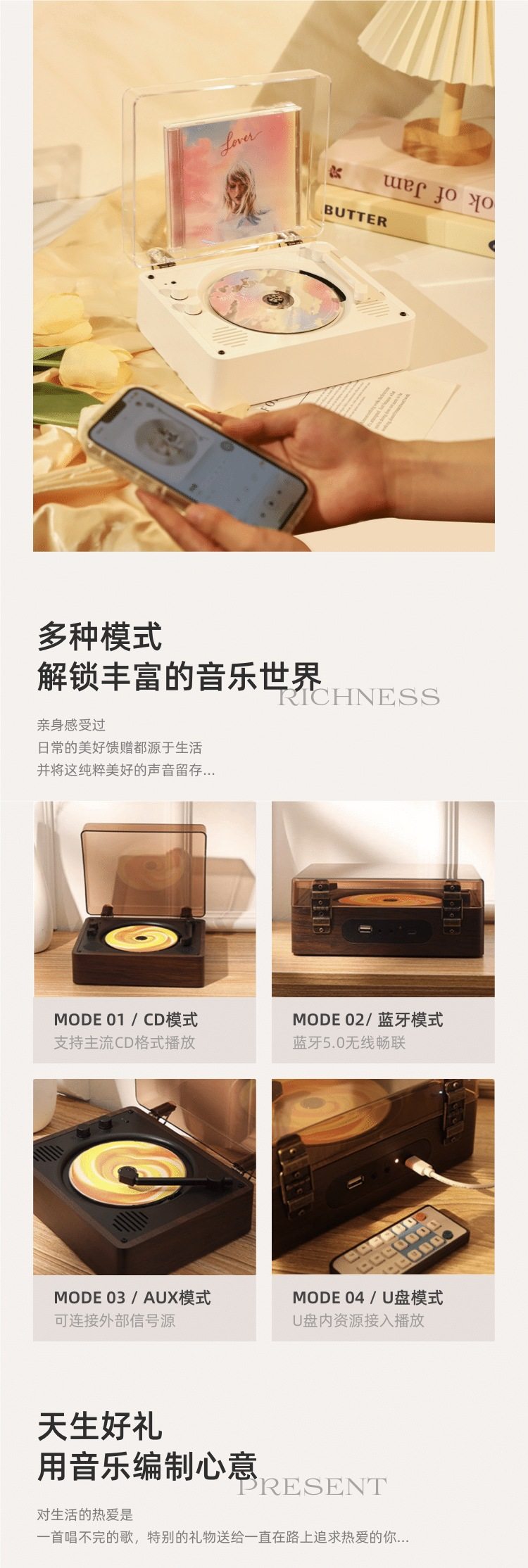 | Color | [white wood grain] flagship model - free remote control charging model √ bluetooth √ dual speaker sound chamber diaphragm √ lossless disc reading √,Collect and purchase a free customized cd/free sweet and cool stickers,[ultimate edition] upgrade special - white wood grain lossless disc reading [wireless bluetooth️professional phono head️dual speaker bass diaphragm] free remote control,[ultimate edition] upgrade special offer - walnut lossless disc reading [wireless bluetooth️professional phono head️dual speaker bass diaphragm] free remote control,[walnut] flagship model - free remote control charging model √ bluetooth √ dual speaker sound chamber diaphragm √ lossless disc reading √,[cherry wood] flagship model - free remote control charging model √ bluetooth √ dual speaker sound chamber diaphragm √ lossless disc reading √,[nordic white] flagship exclusive + hifi lossless sound quality + imported movement + gift box + lossless sound quality,[neon purple] flagship exclusive + hifi lossless sound quality + imported movement + gift box + lossless sound quality,[off-white] flagship exclusive + hifi lossless sound quality + imported movement + gift box + lossless sound quality,[fantasy purple] exclusive edition-magnetic/lighting effect diaphragm dynamic coil dual speakers two-way bluetooth gift box,[angel white] exclusive edition-magnetic/diaphragm dynamic dual speakers two-way bluetooth gift box,[white leather] upgraded flagship + remote control + hifi lossless sound quality + imported movement + charging model + lossless sound quality,[emma brown] upgraded flagship + remote control + hifi lossless sound quality + imported movement + charging model + lossless sound quality,[piano white] exclusive smart digital display lossless disc reading for recording studios, two-way bluetooth independent cavity, free remote control and free headphones,[white wood grain] exclusive smart digital display lossless disc reading for recording studio, two-way bluetooth independent cavity and free remote control,[flagship recording studio] free shipping with sf express*wood brown*independent cavity with diaphragm*test audio disc + imported bald head lossless disc reading,[flagship recording studio] free shipping with sf express *white*independent cavity with diaphragm*test audio disc + imported bald head lossless disc reading,[brown wood grain-sf] new product special offer upgraded version flagship + hifi lossless sound quality + imported movement + lossless sound quality√] |