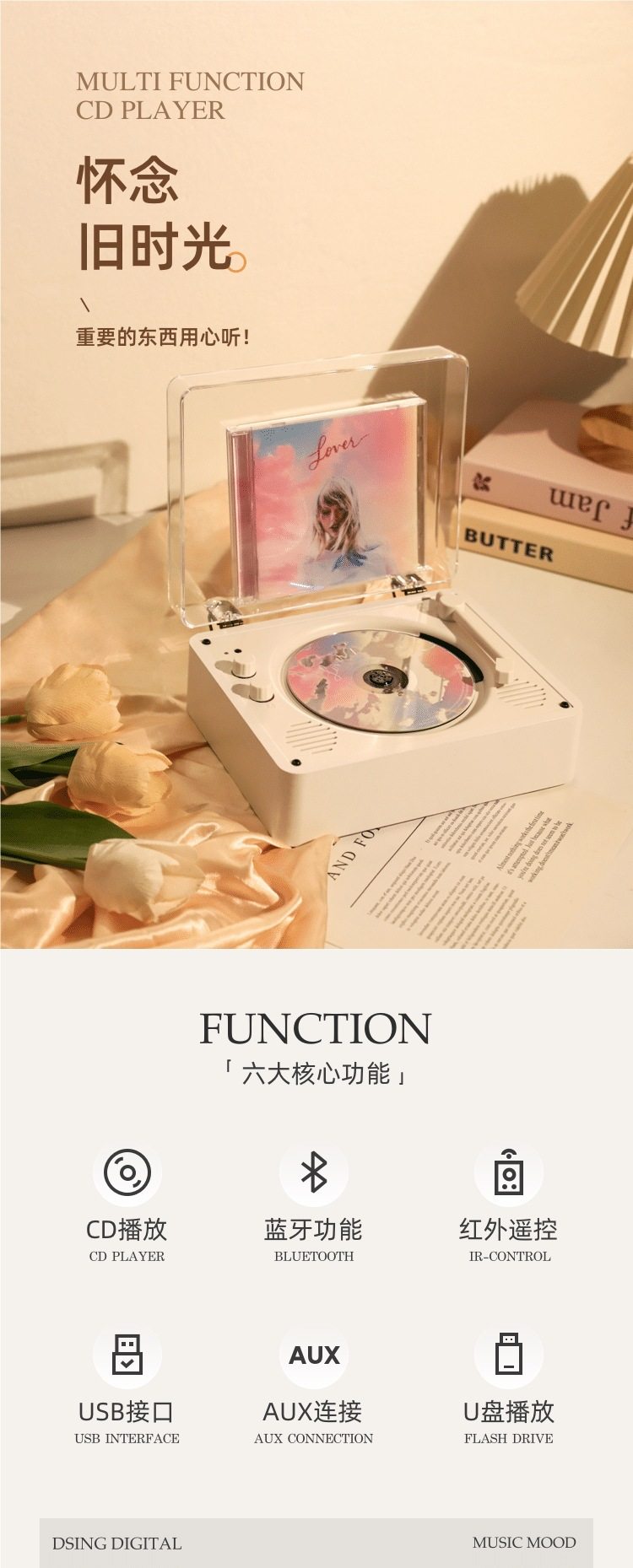 Cd Player Retro Listening Album Disc Player Bluetooth Speaker Disc Record Player Kpop Birthday Commemorative Gift