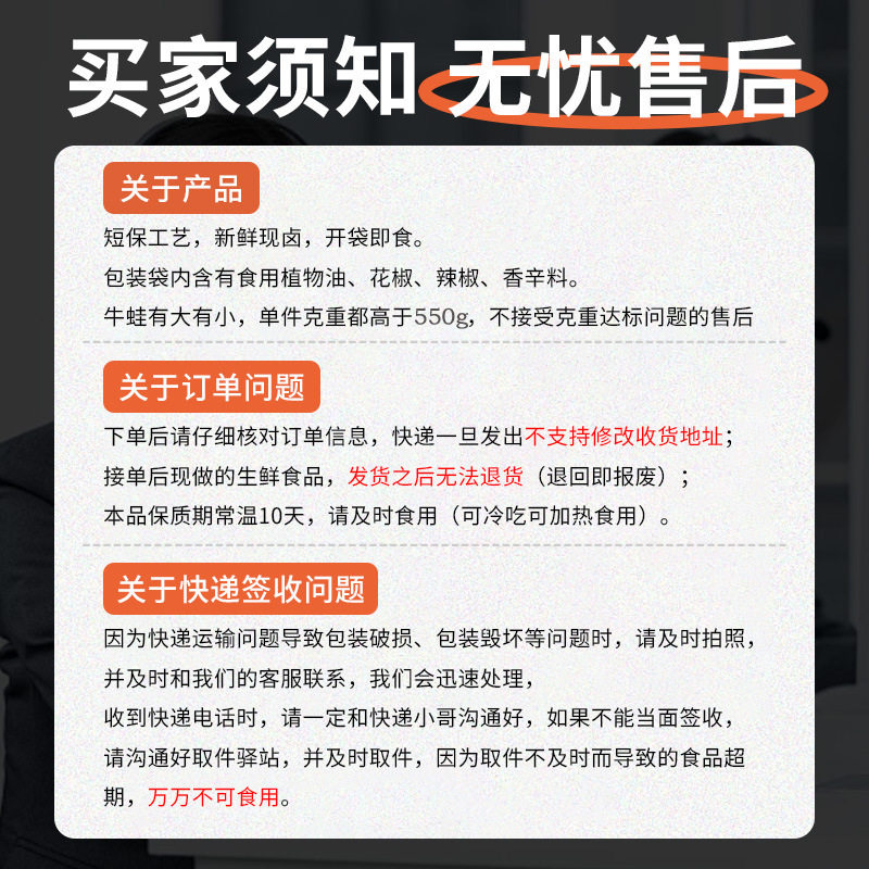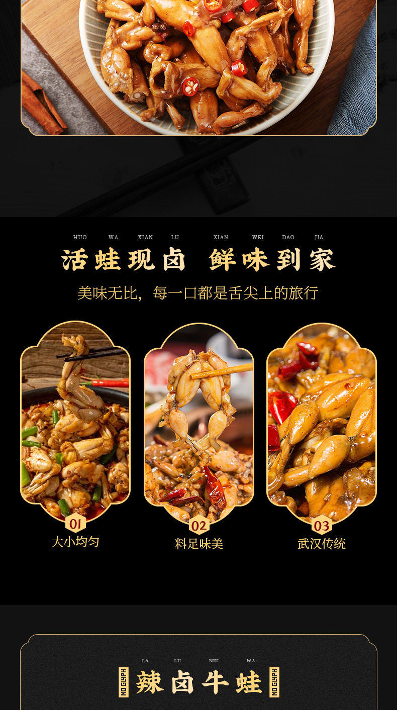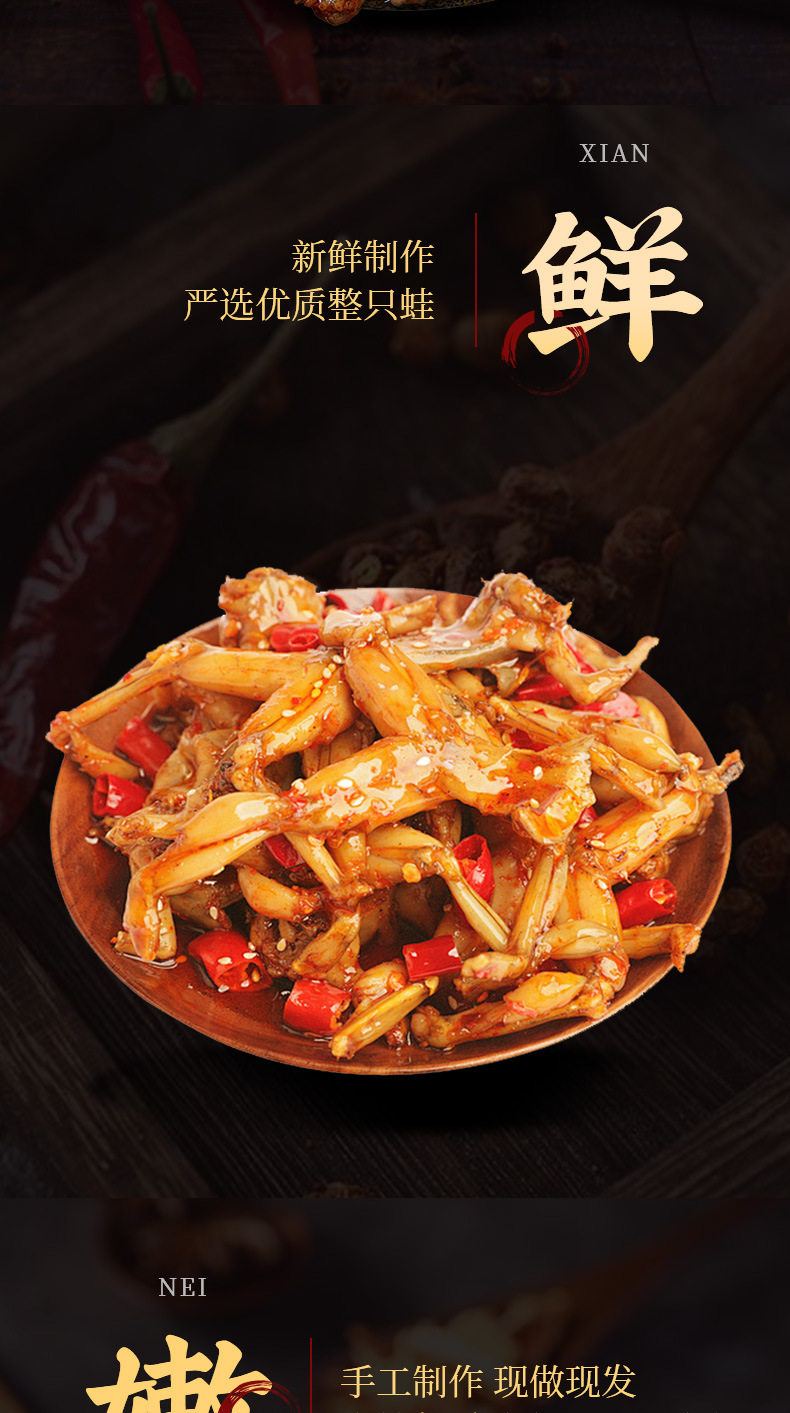 | Packaging specifications | 9 spicy calf frogs (400g-600g),12 spicy bullfrogs (520g-700g) |