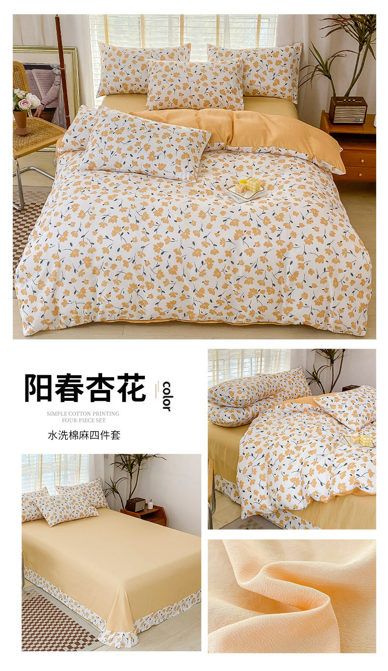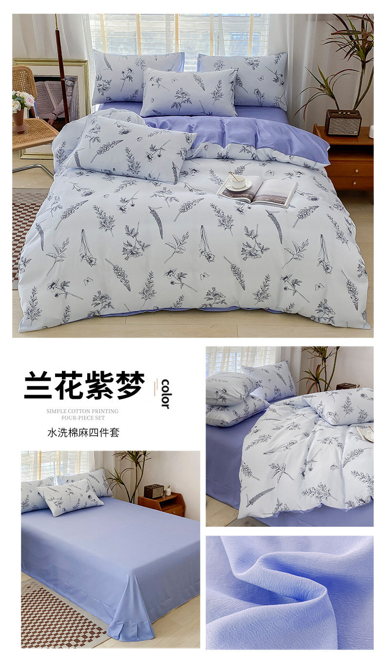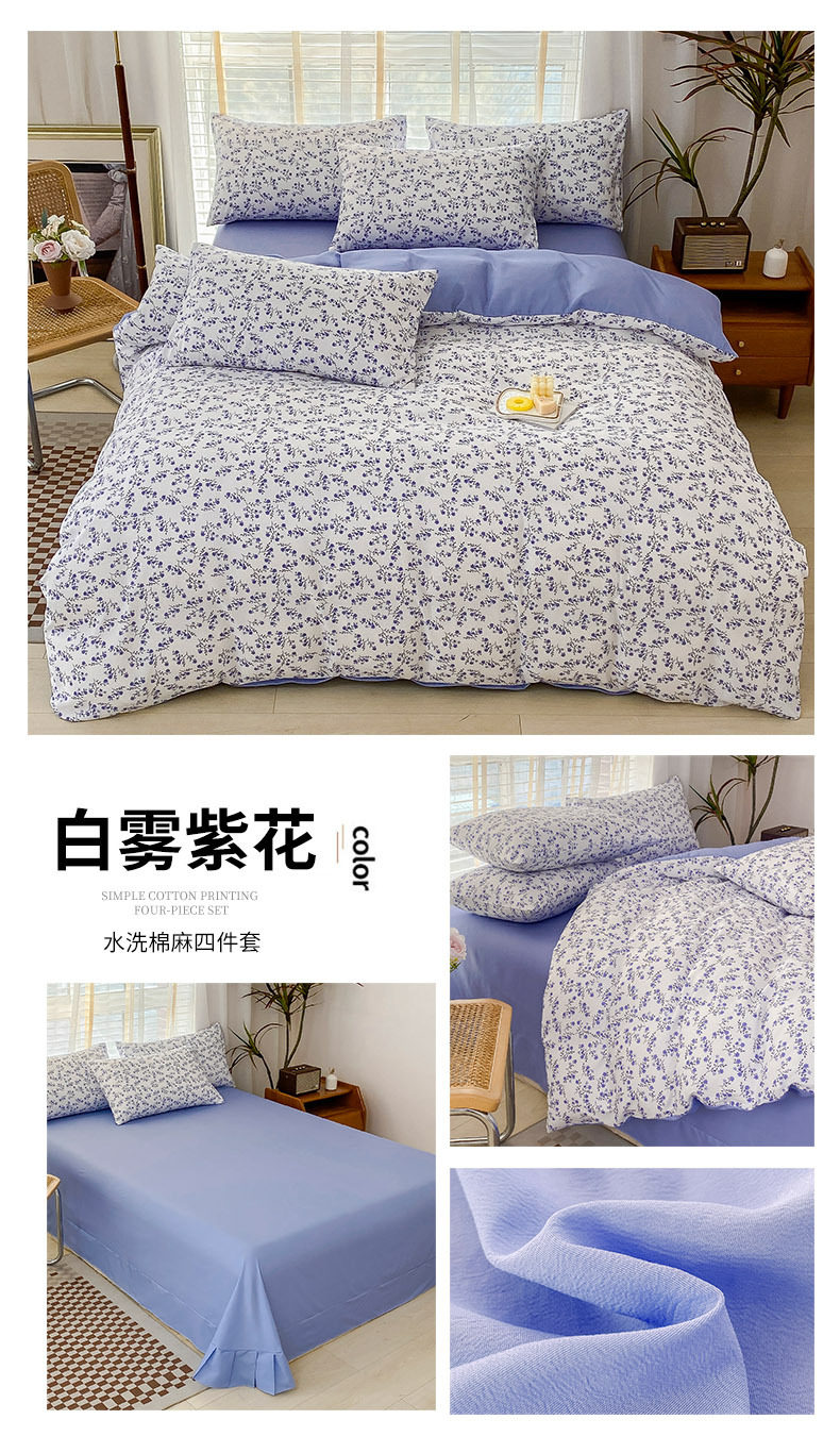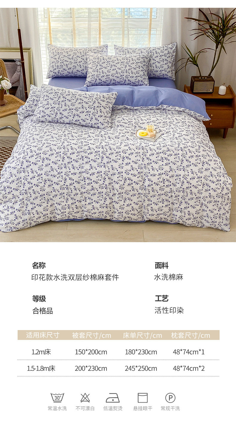 Double-Layer Yarn Washed Cotton and Linen Four-Piece Set Student Dormitory Three-Piece Set Home Four-Piece Set Multi-Piece Set Wholesale