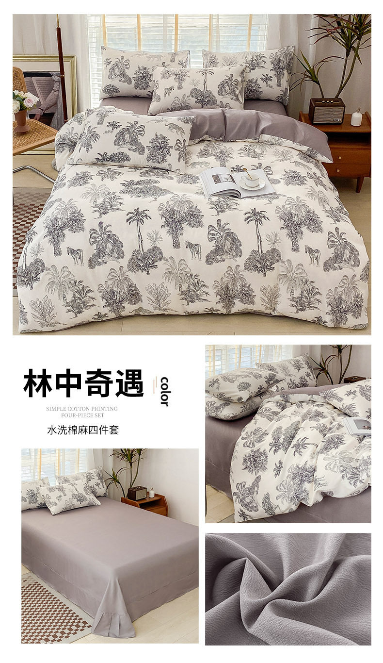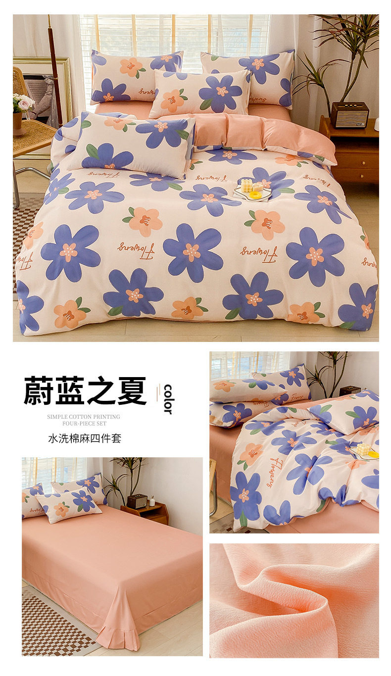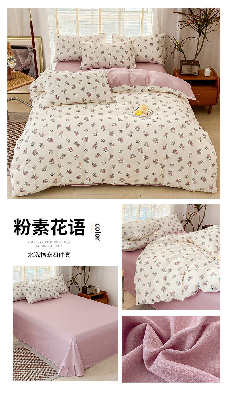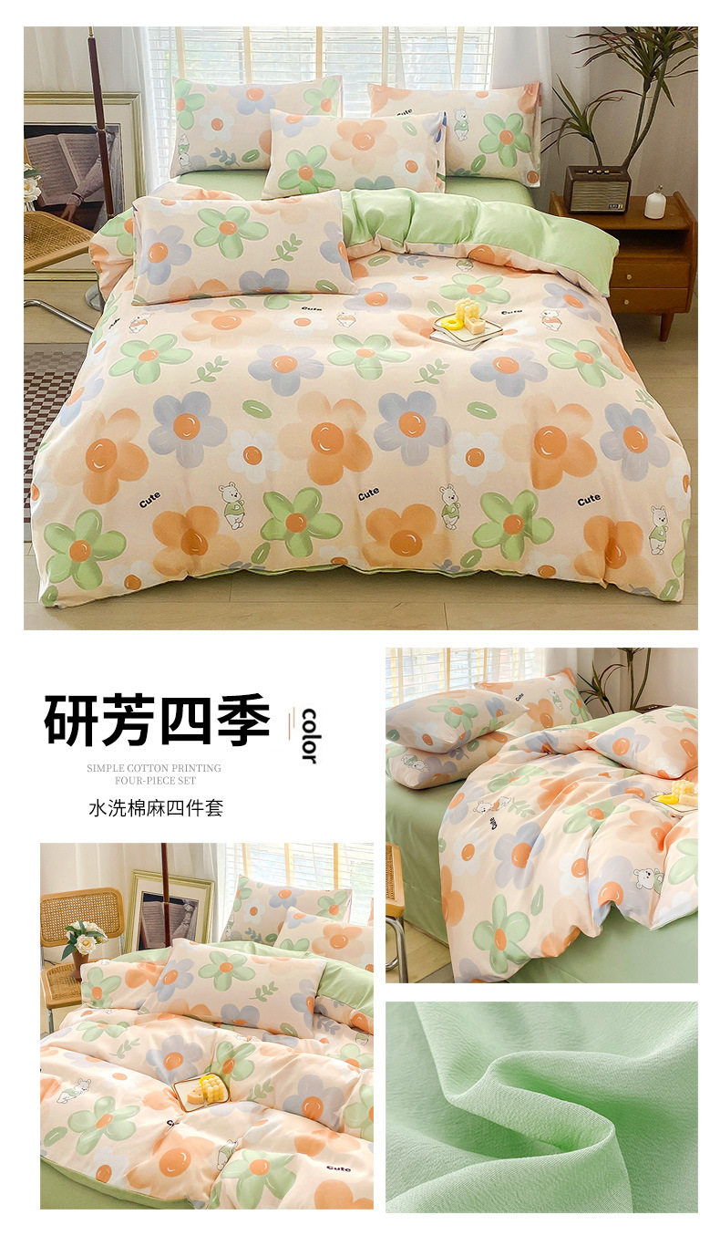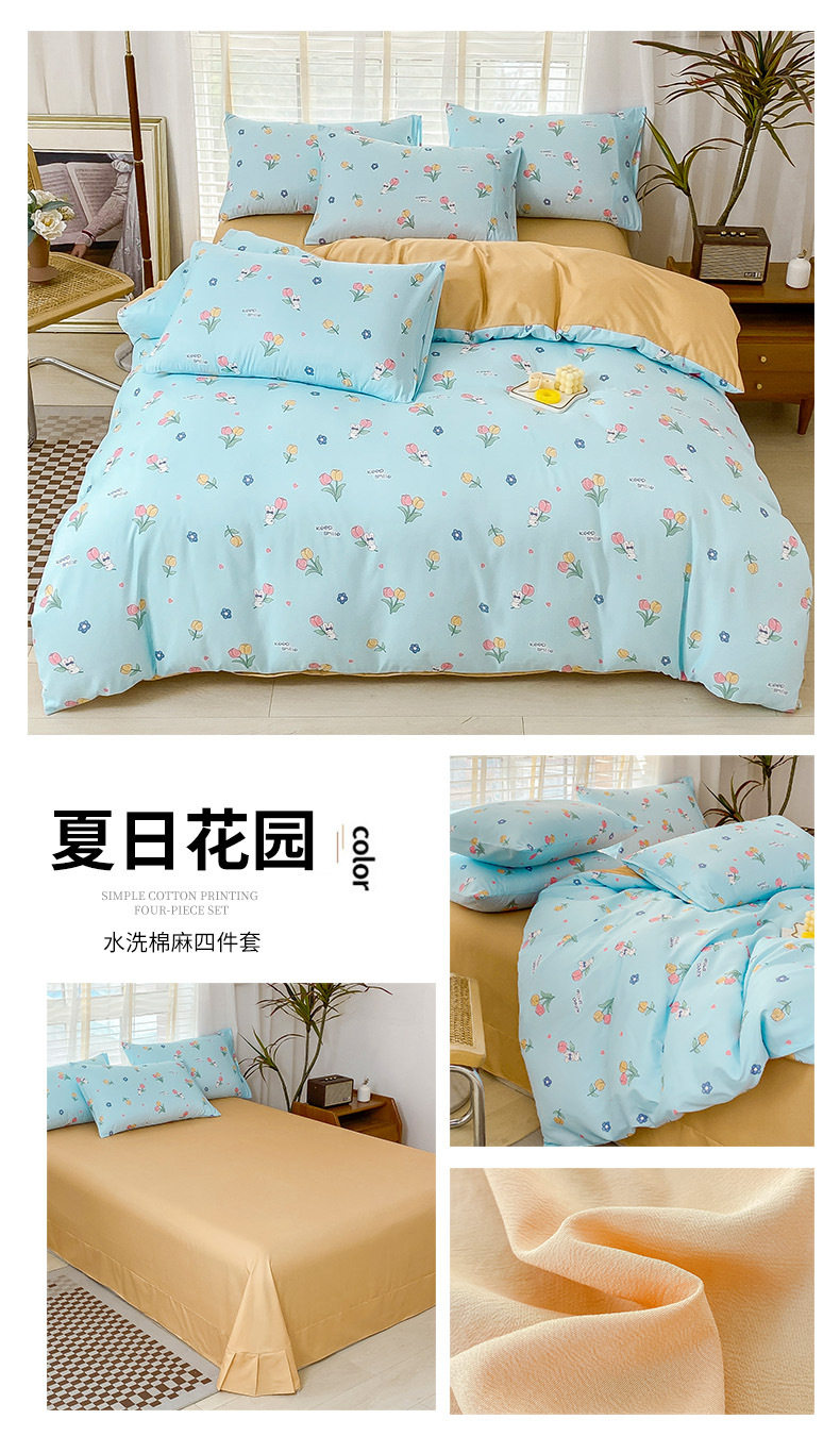 Double-Layer Yarn Washed Cotton and Linen Four-Piece Set Student Dormitory Three-Piece Set Home Four-Piece Set Multi-Piece Set Wholesale