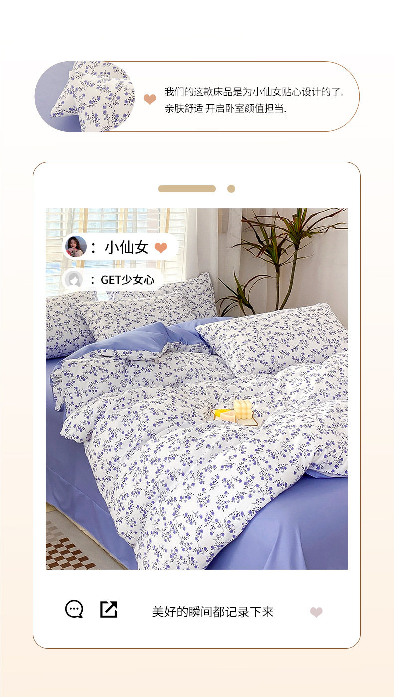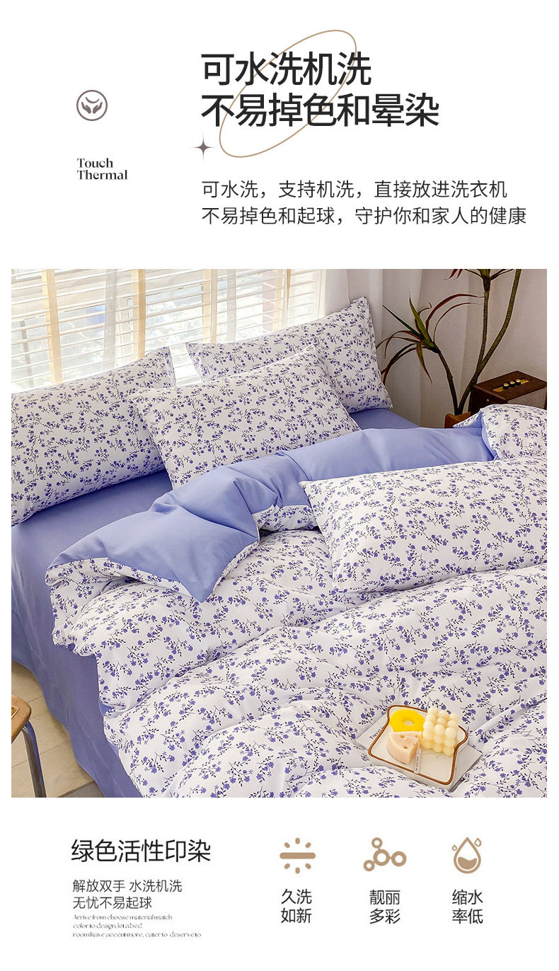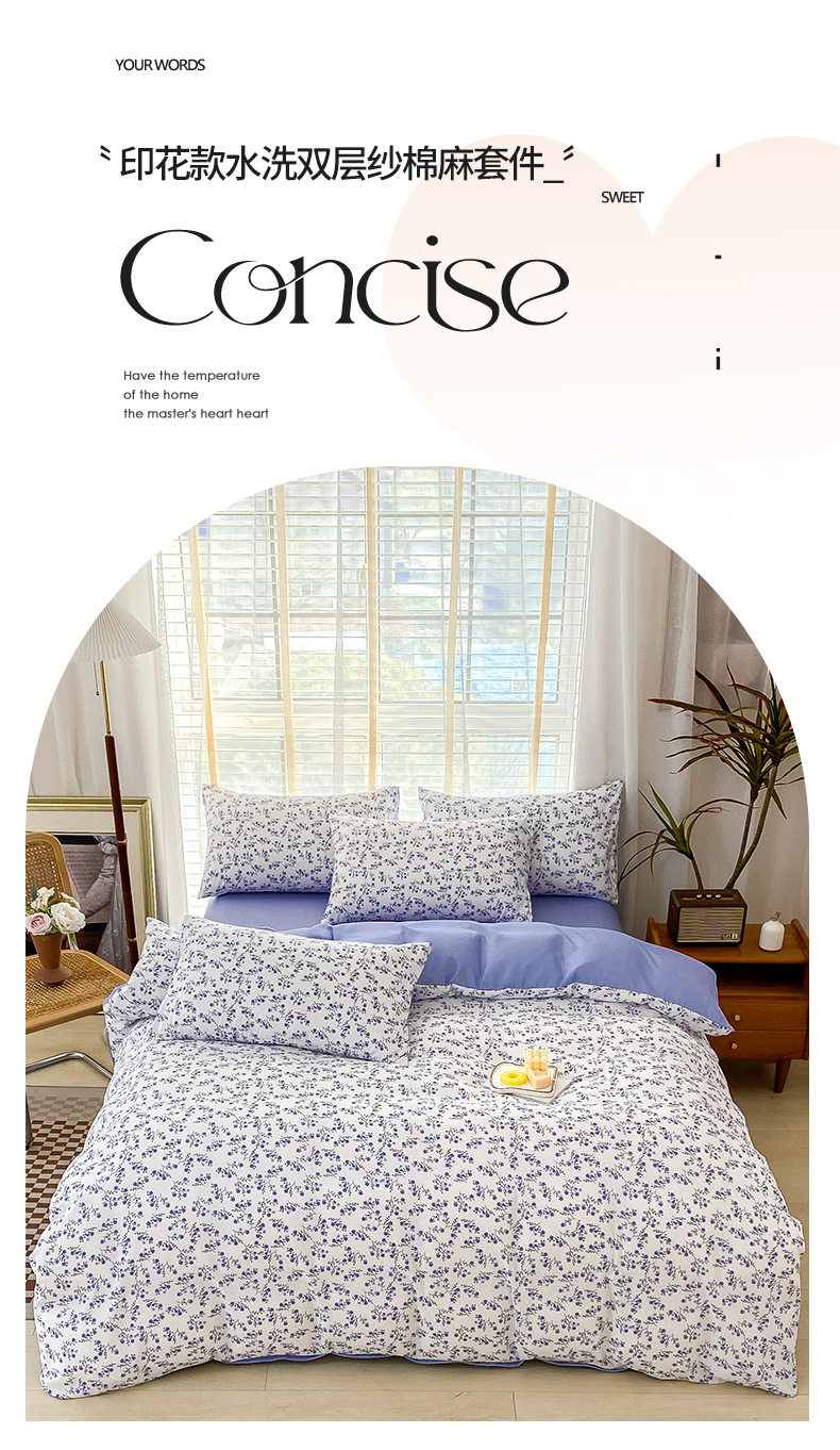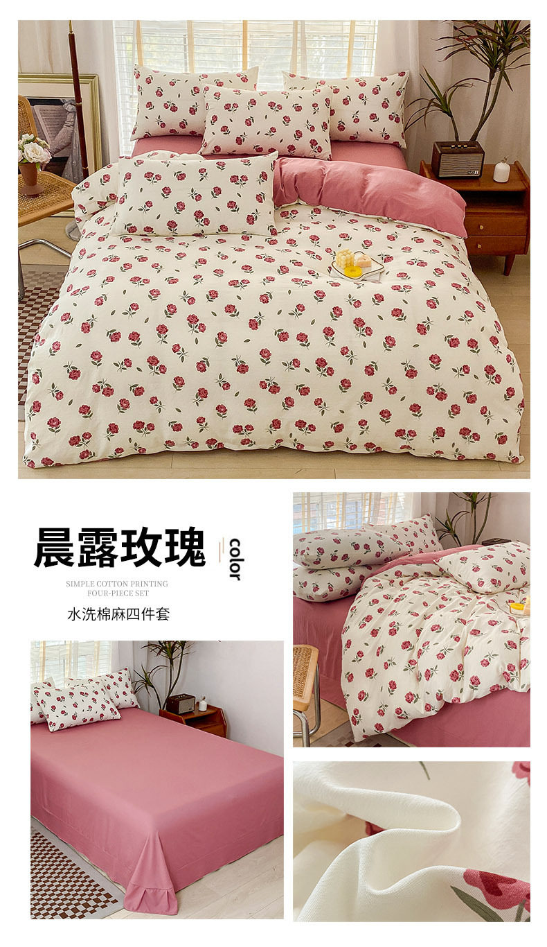 Double-Layer Yarn Washed Cotton and Linen Four-Piece Set Student Dormitory Three-Piece Set Home Four-Piece Set Multi-Piece Set Wholesale
