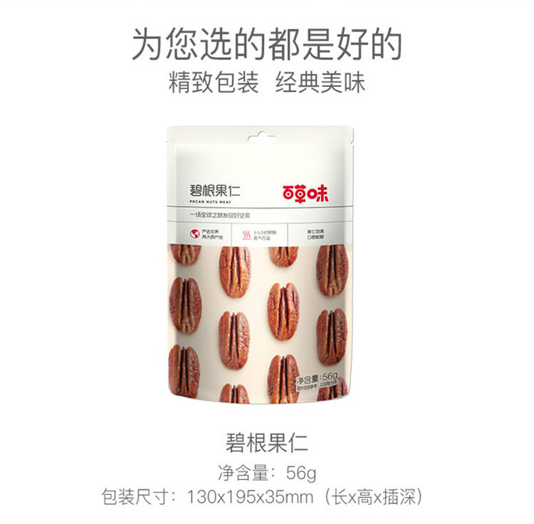 | Packaging specifications | 1 package of baicao flavor pecan nuts 56g |