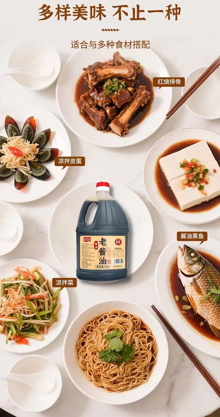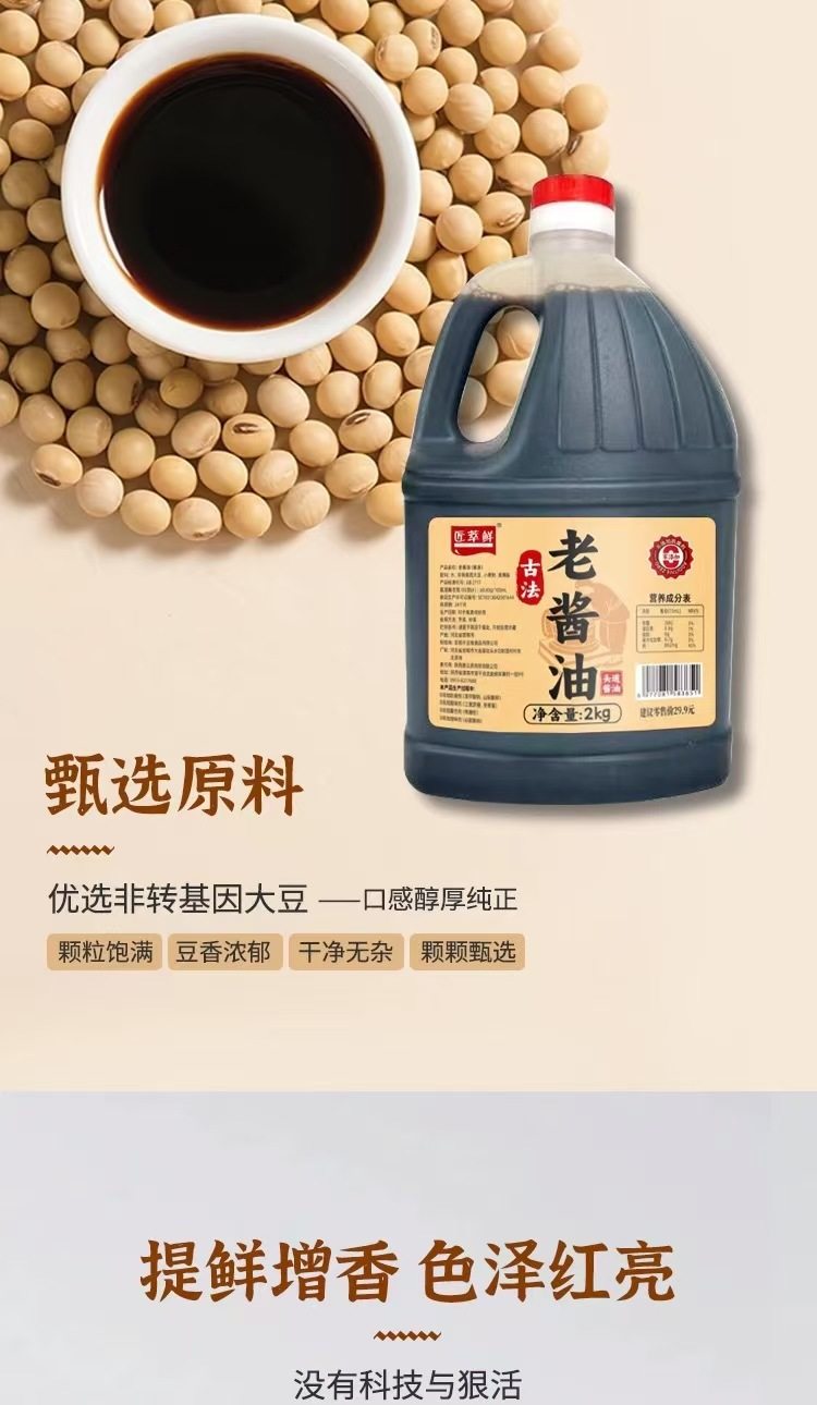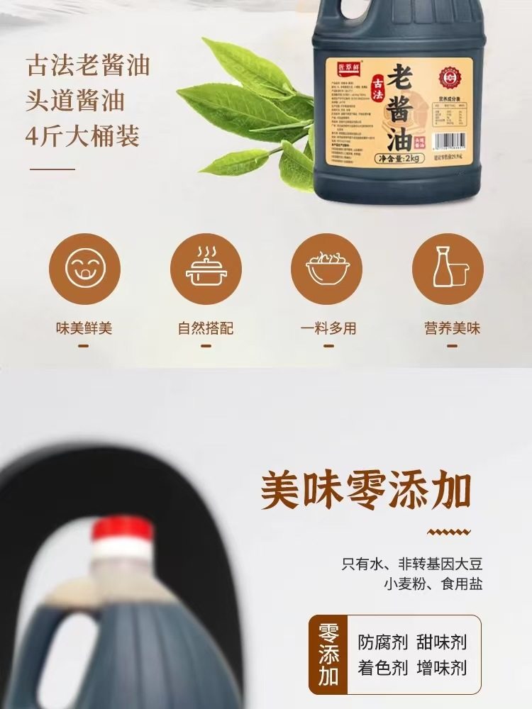 [Dropshipping] 2kg Traditional Soy Sauce Pure Grain Brewed for Cooking, Cold Dishes, and Seasoning, Popular Same-Style Soy Sauce