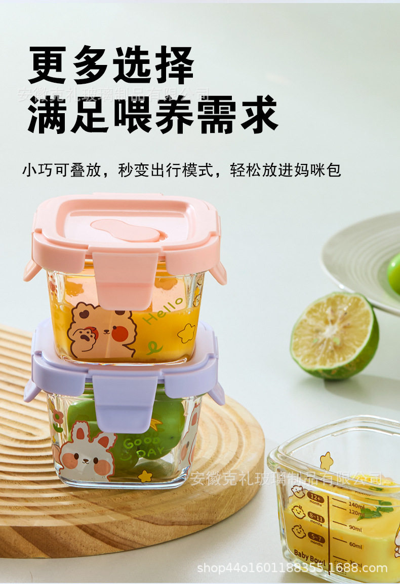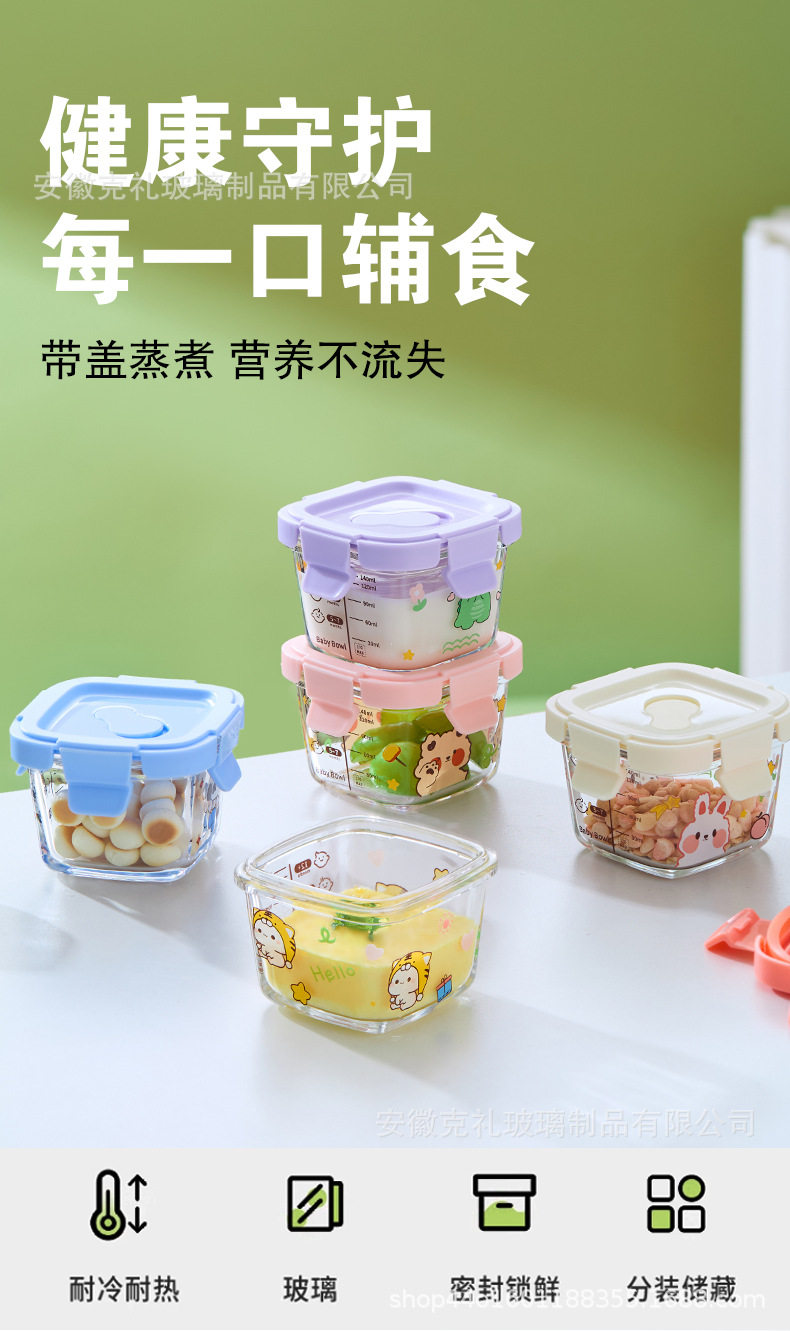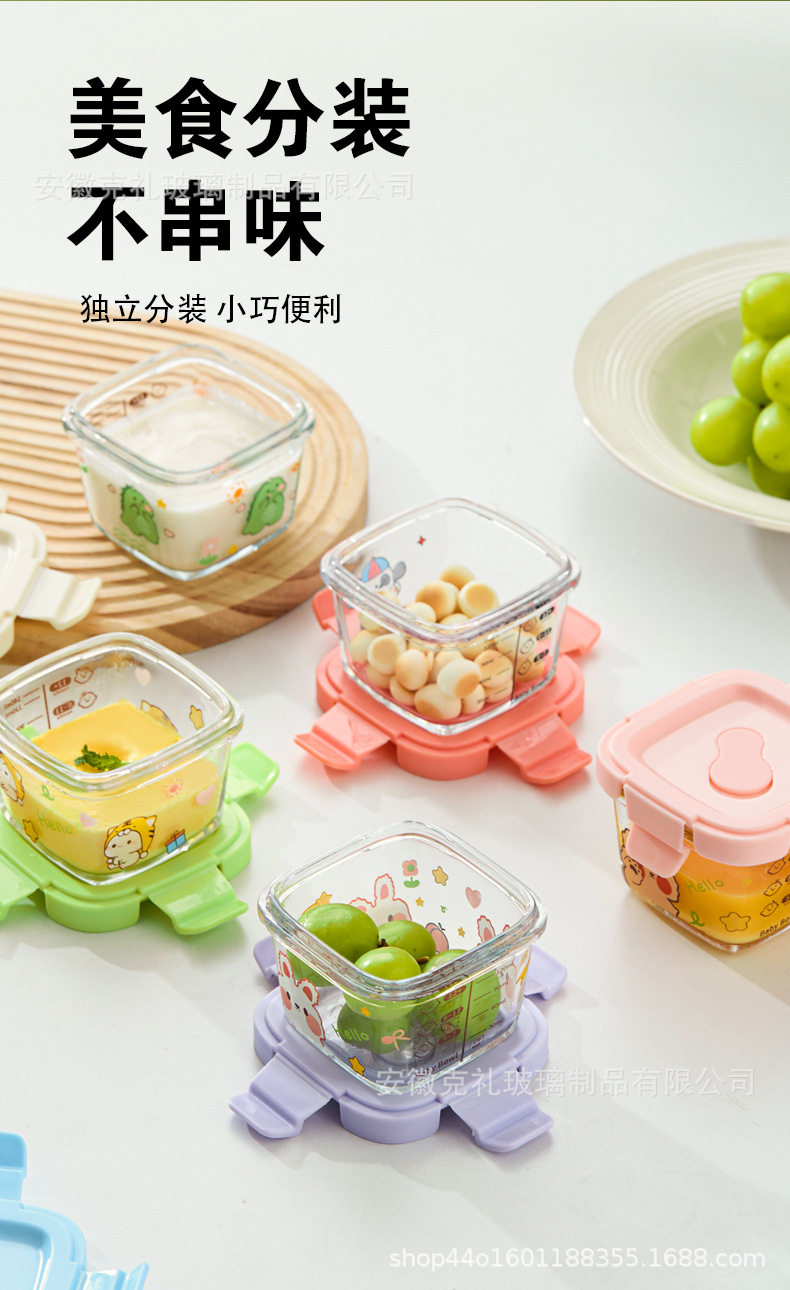 New Cartoon Children's Food Storage Box, Household Storage Box, Jam Dispensing Box, Snack Jar, Baby Food Glass Bowl