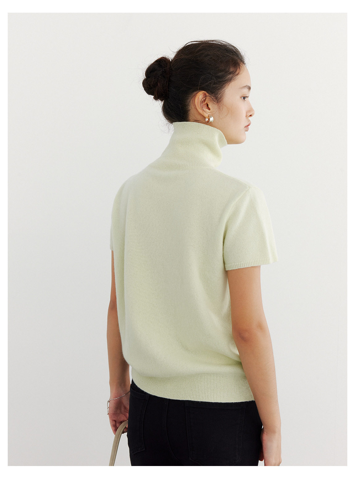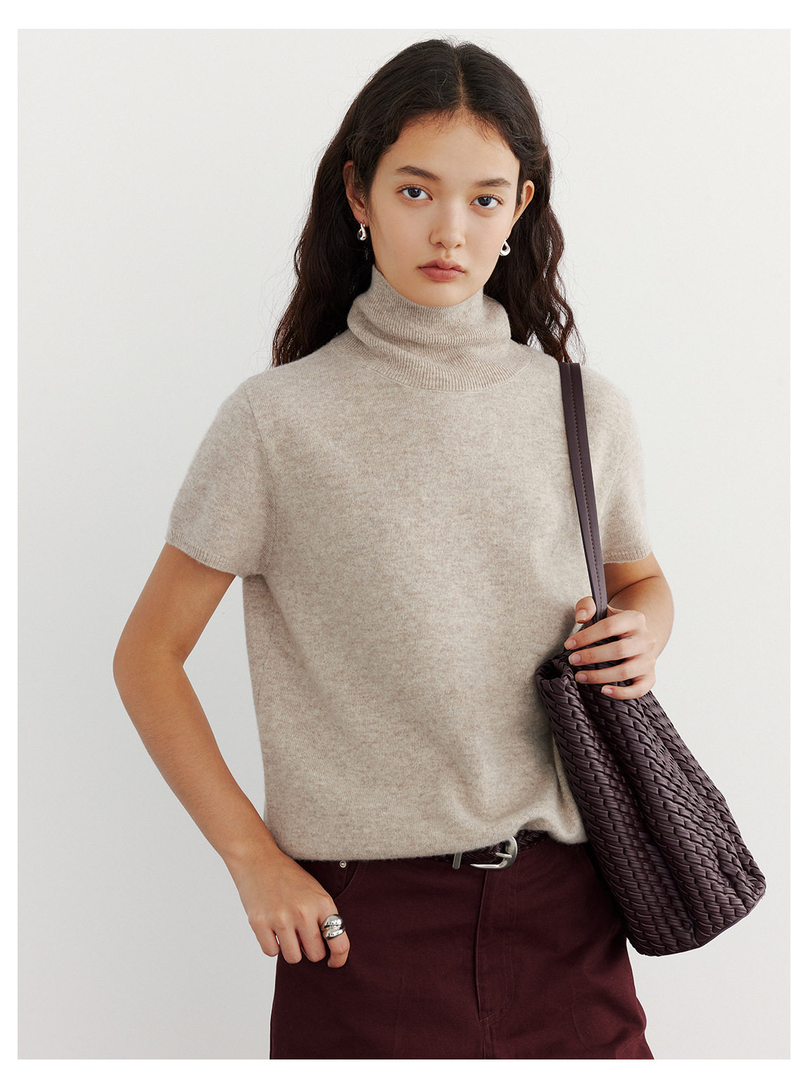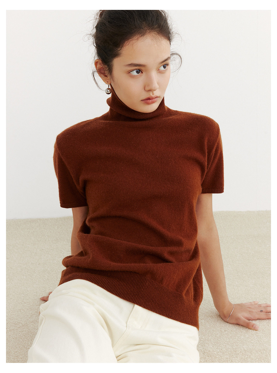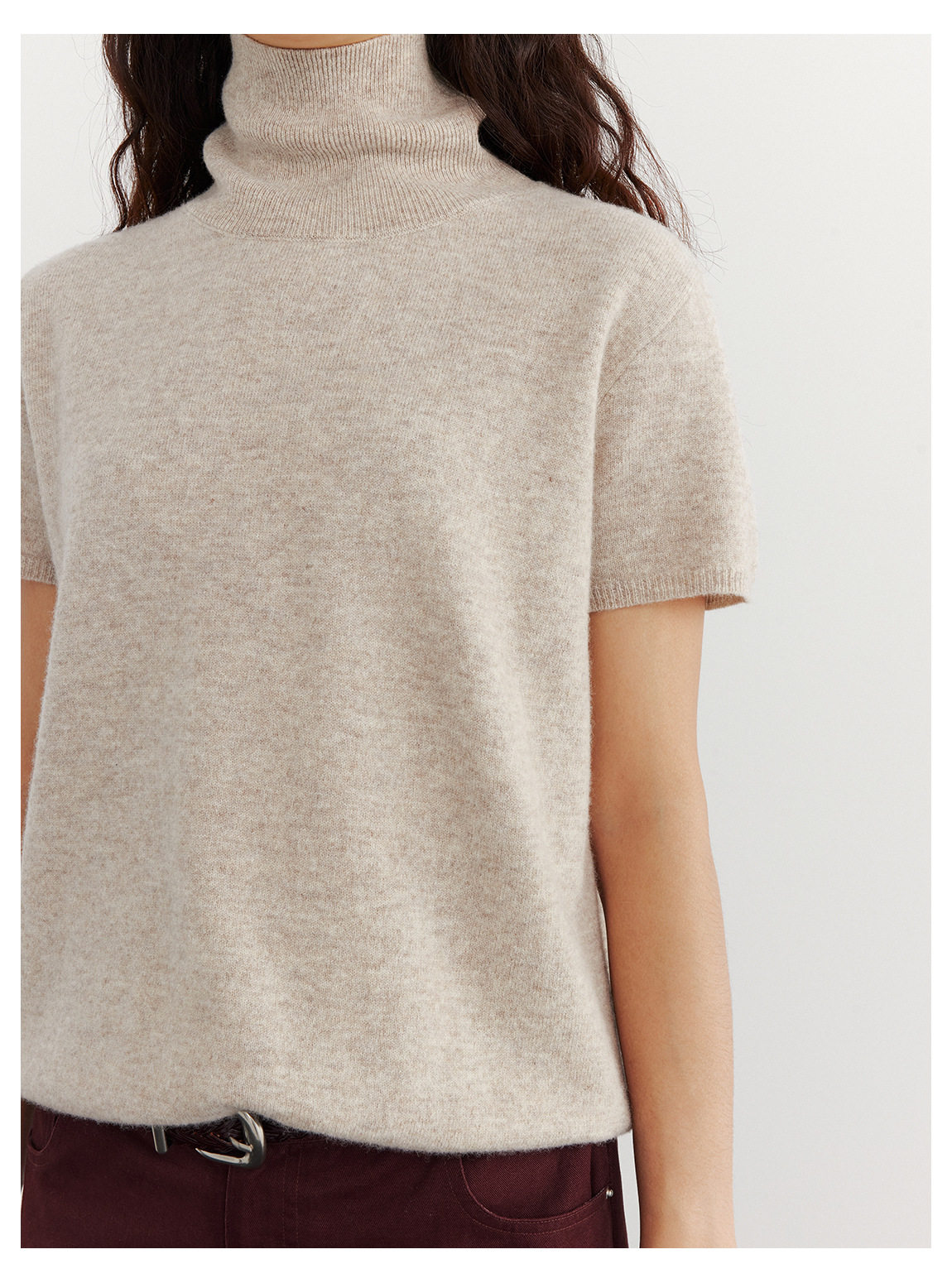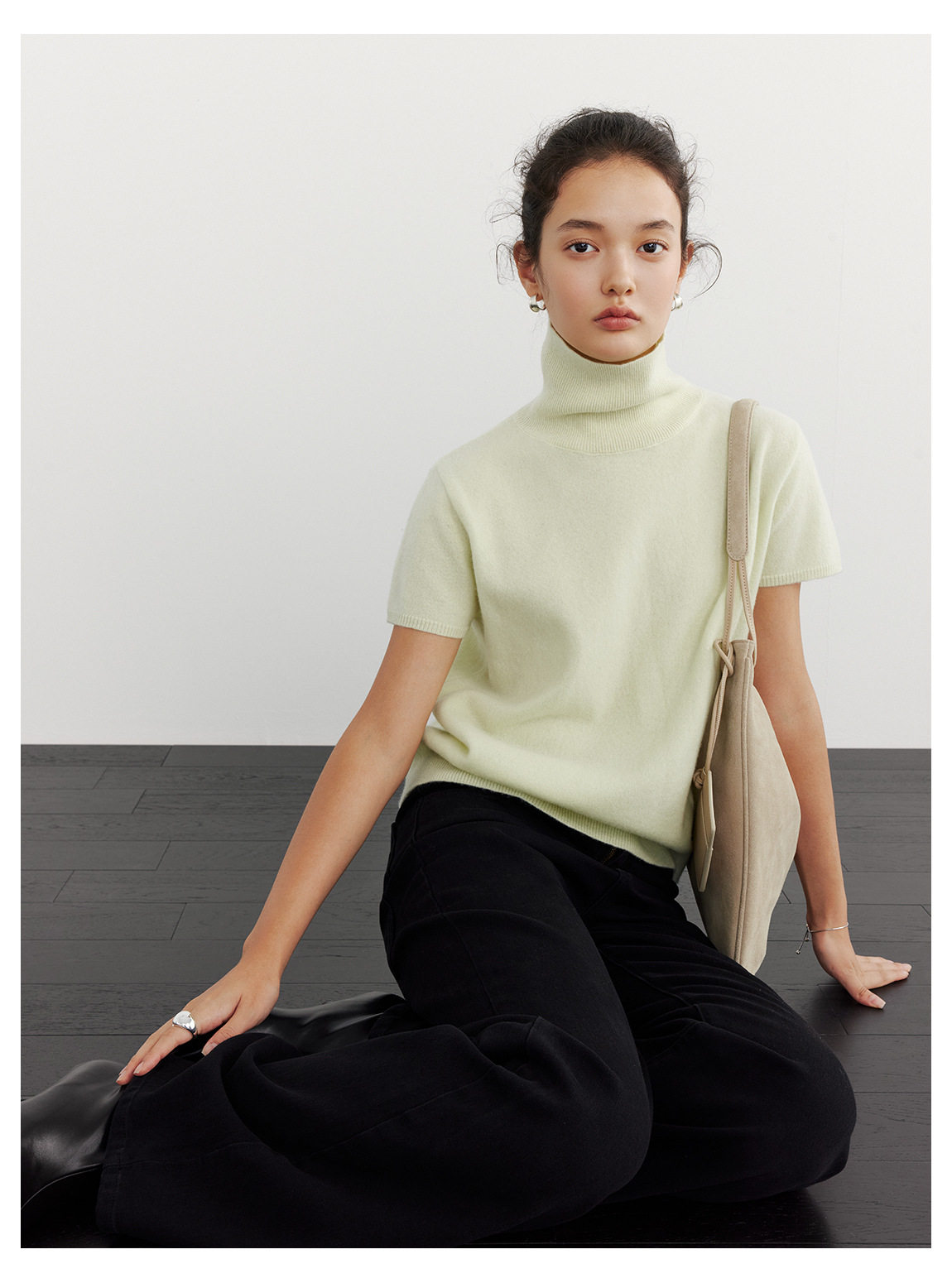 Yienou Inbyin 100% Pure Wool Knitwear Pullover Turtleneck Top for Women Autum Simple Short-Sleeved Knitwear for Women