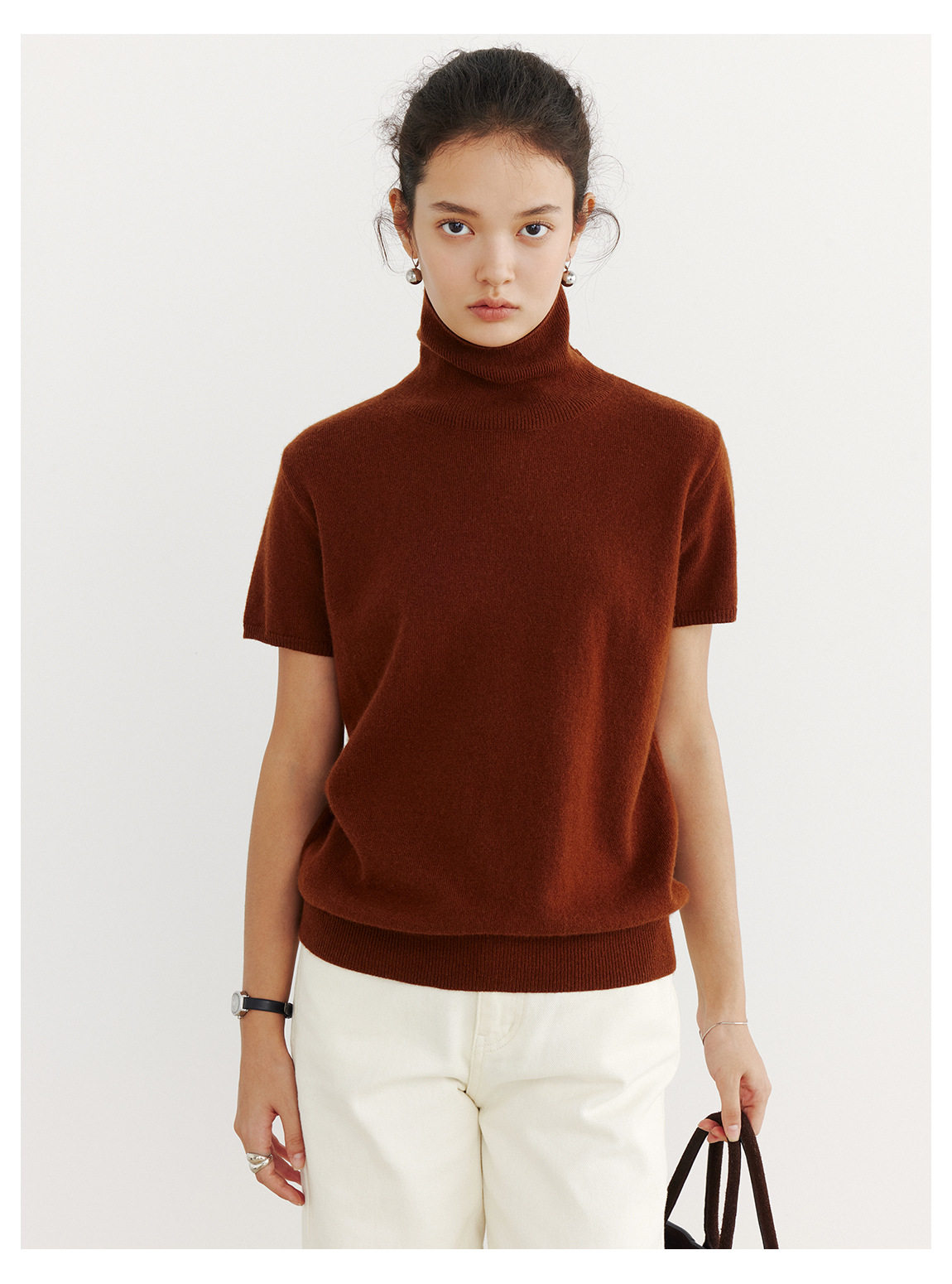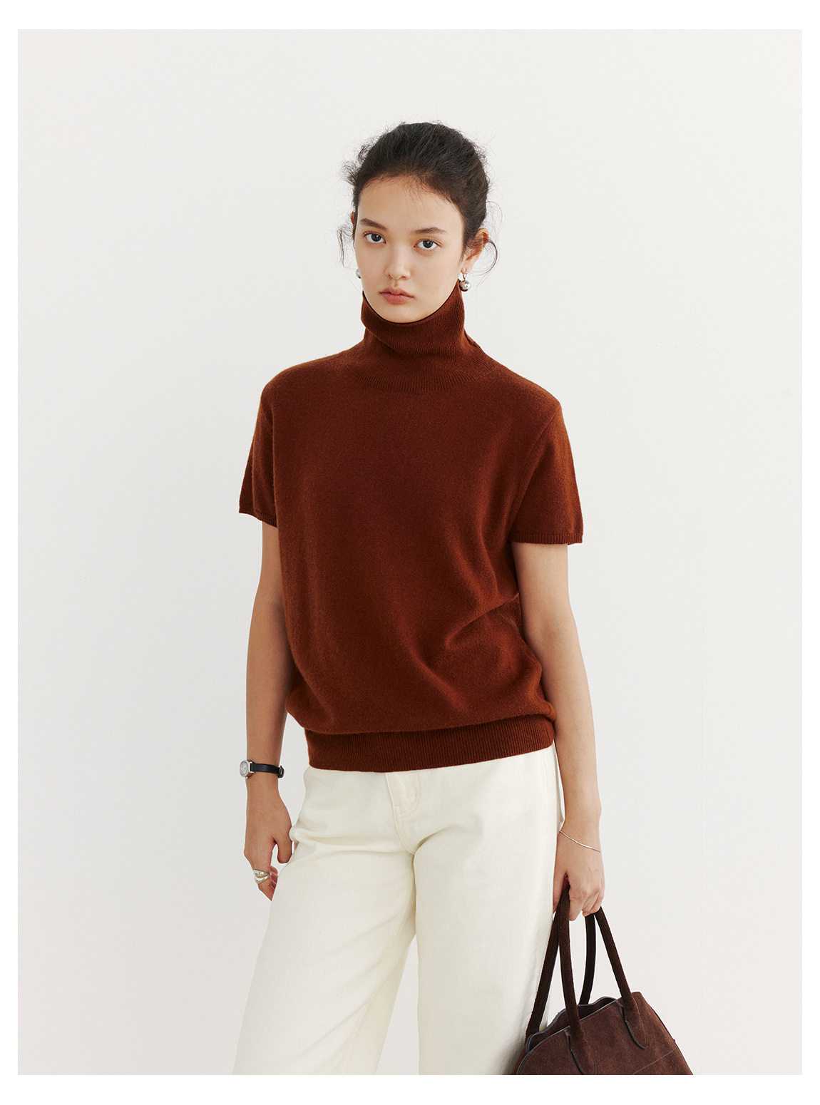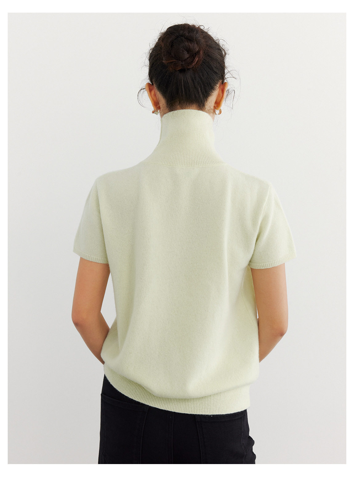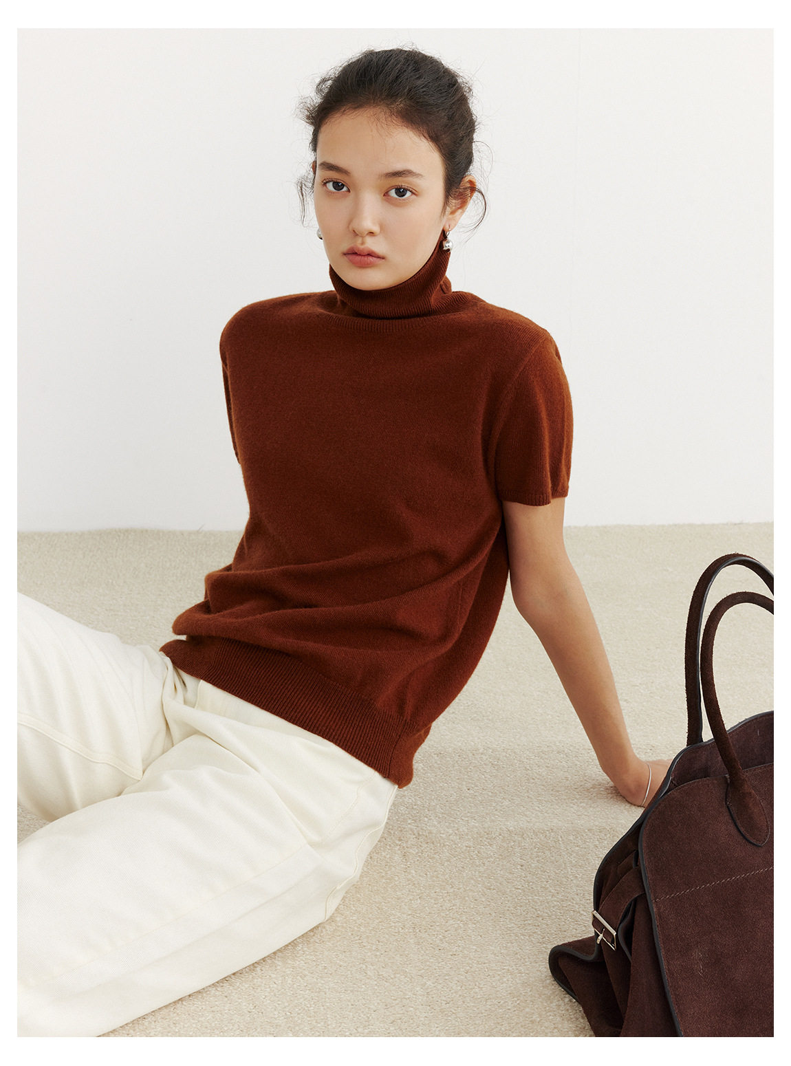 Yienou Inbyin 100% Pure Wool Knitwear Pullover Turtleneck Top for Women Autum Simple Short-Sleeved Knitwear for Women