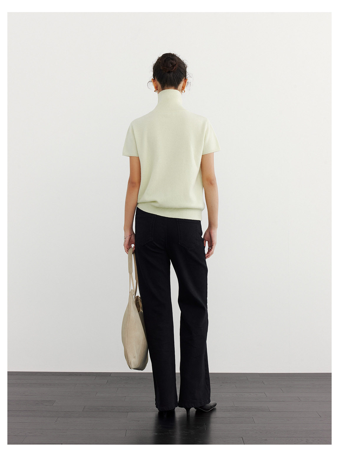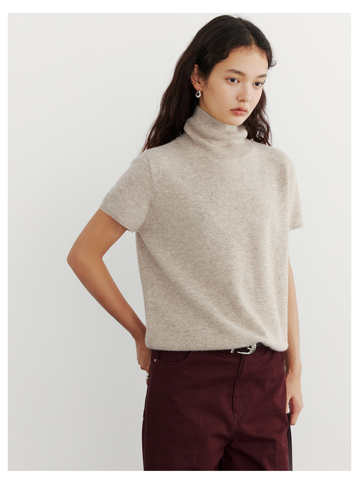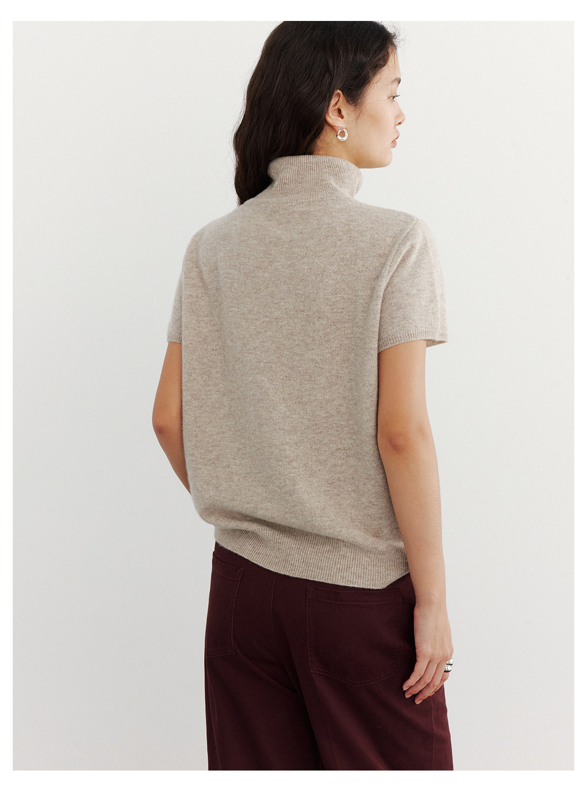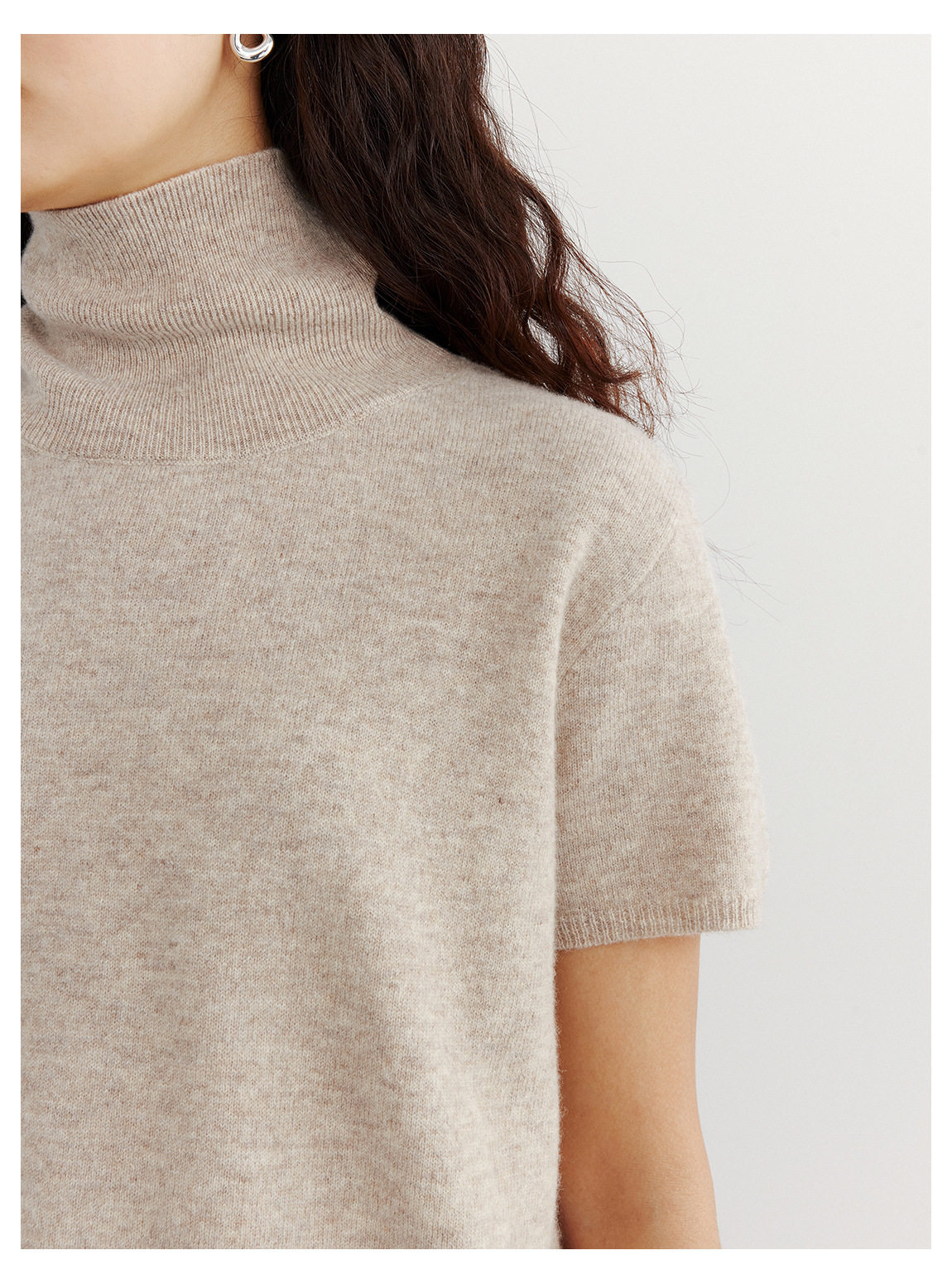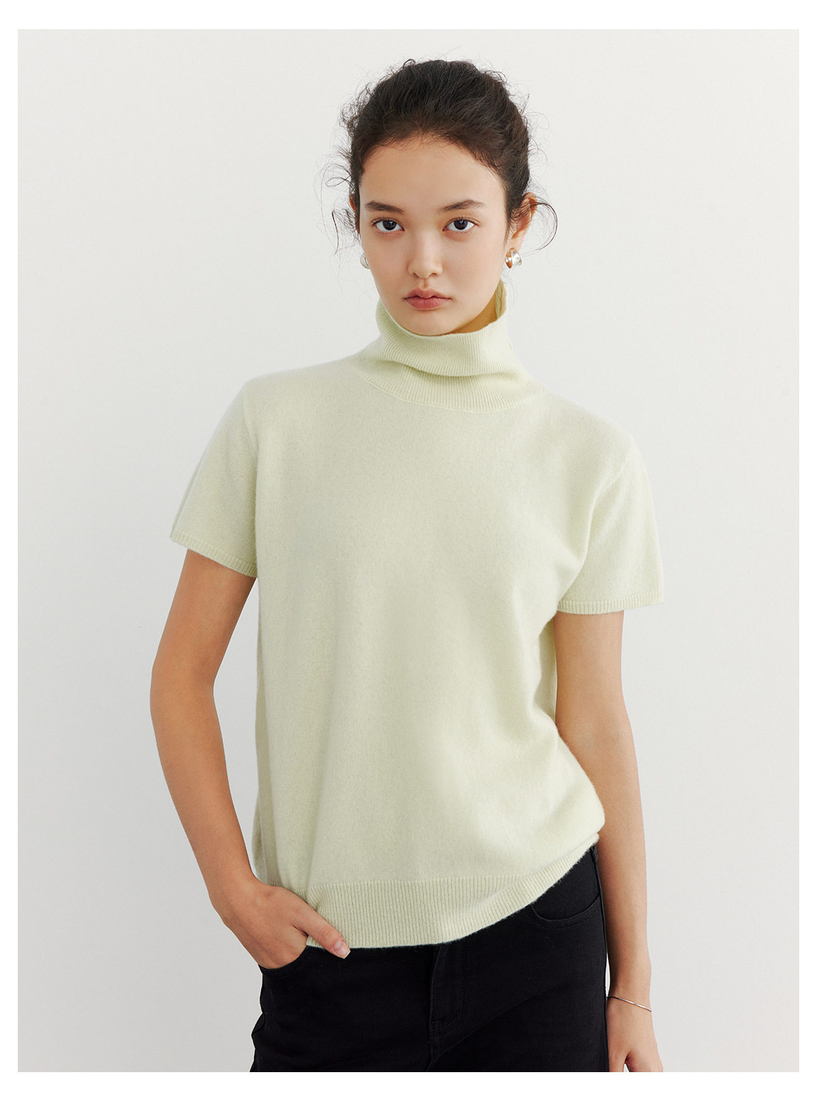Yienou Inbyin 100% Pure Wool Knitwear Pullover Turtleneck Top for Women Autum Simple Short-Sleeved Knitwear for Women