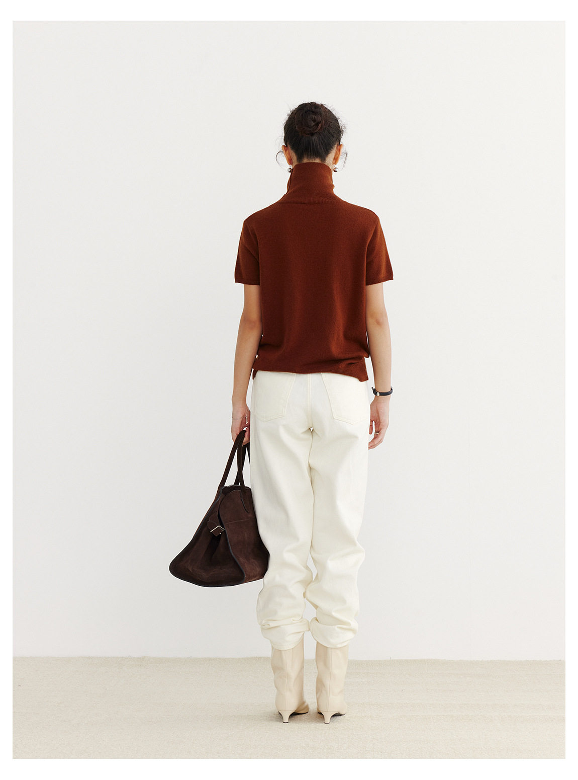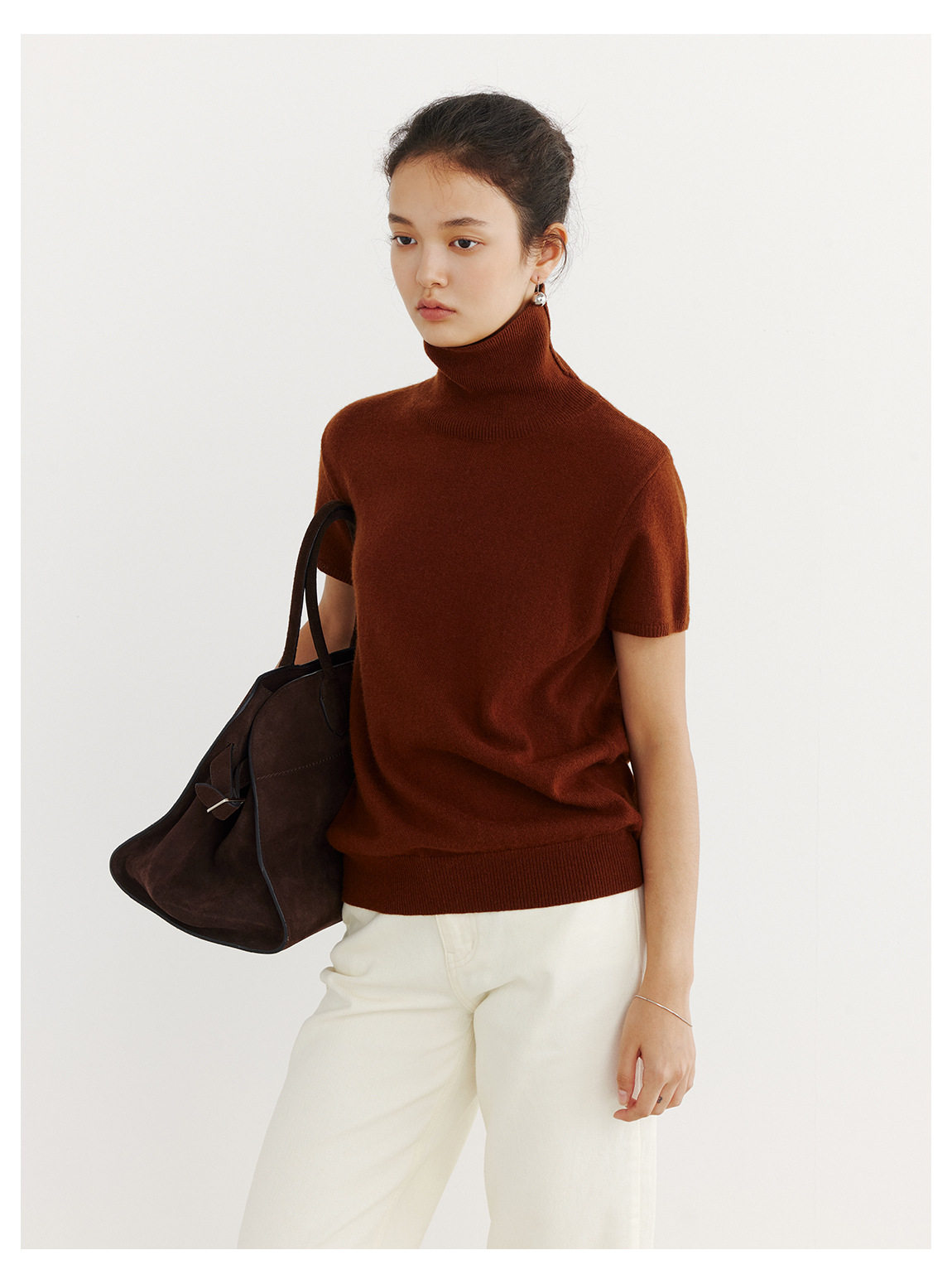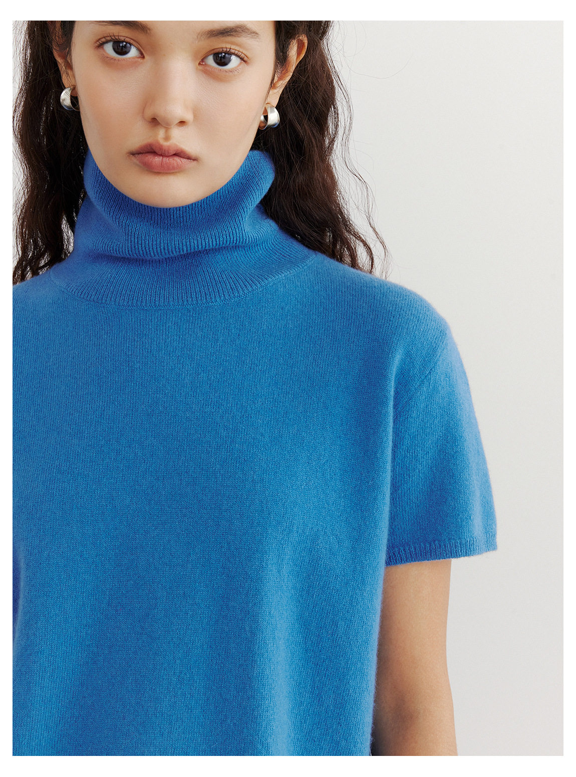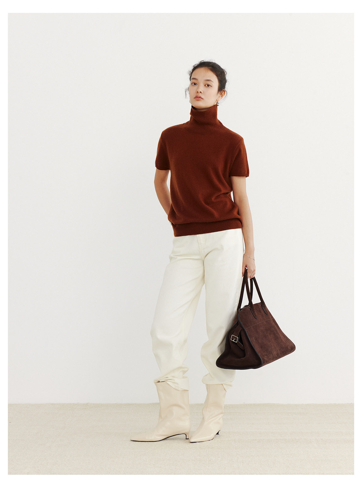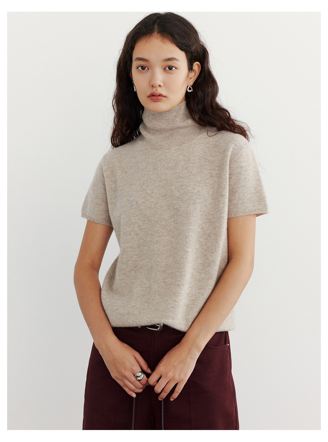 Yienou Inbyin 100% Pure Wool Knitwear Pullover Turtleneck Top for Women Autum Simple Short-Sleeved Knitwear for Women