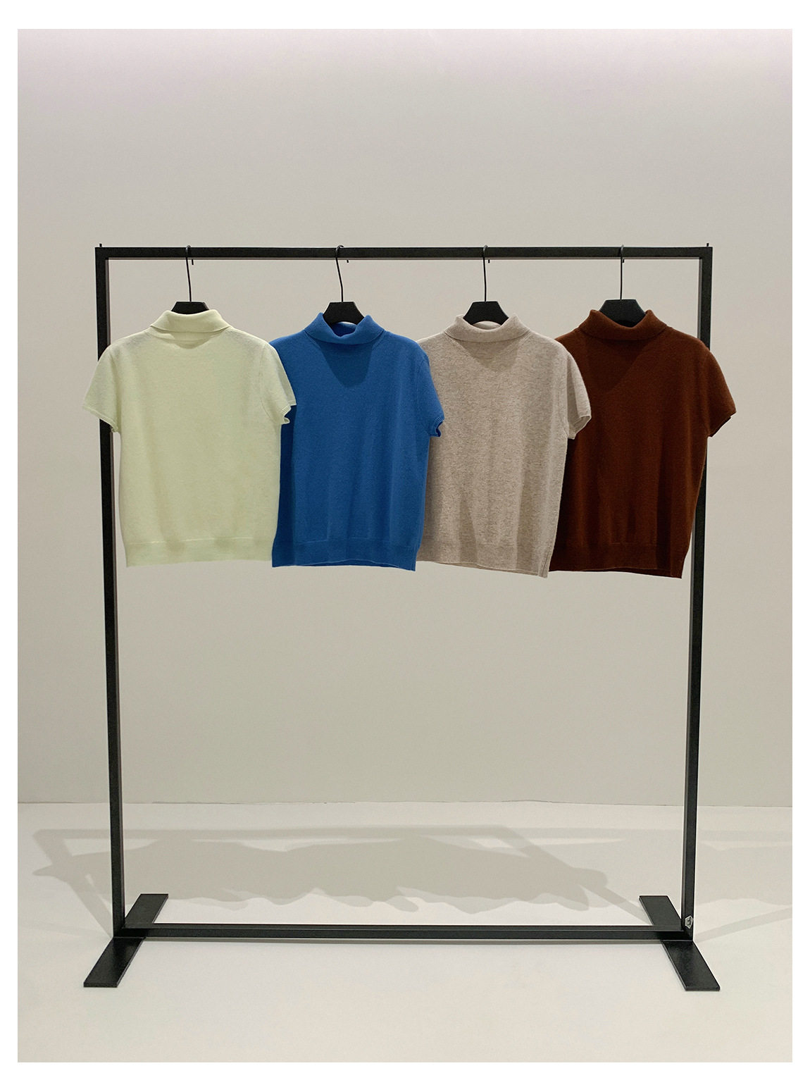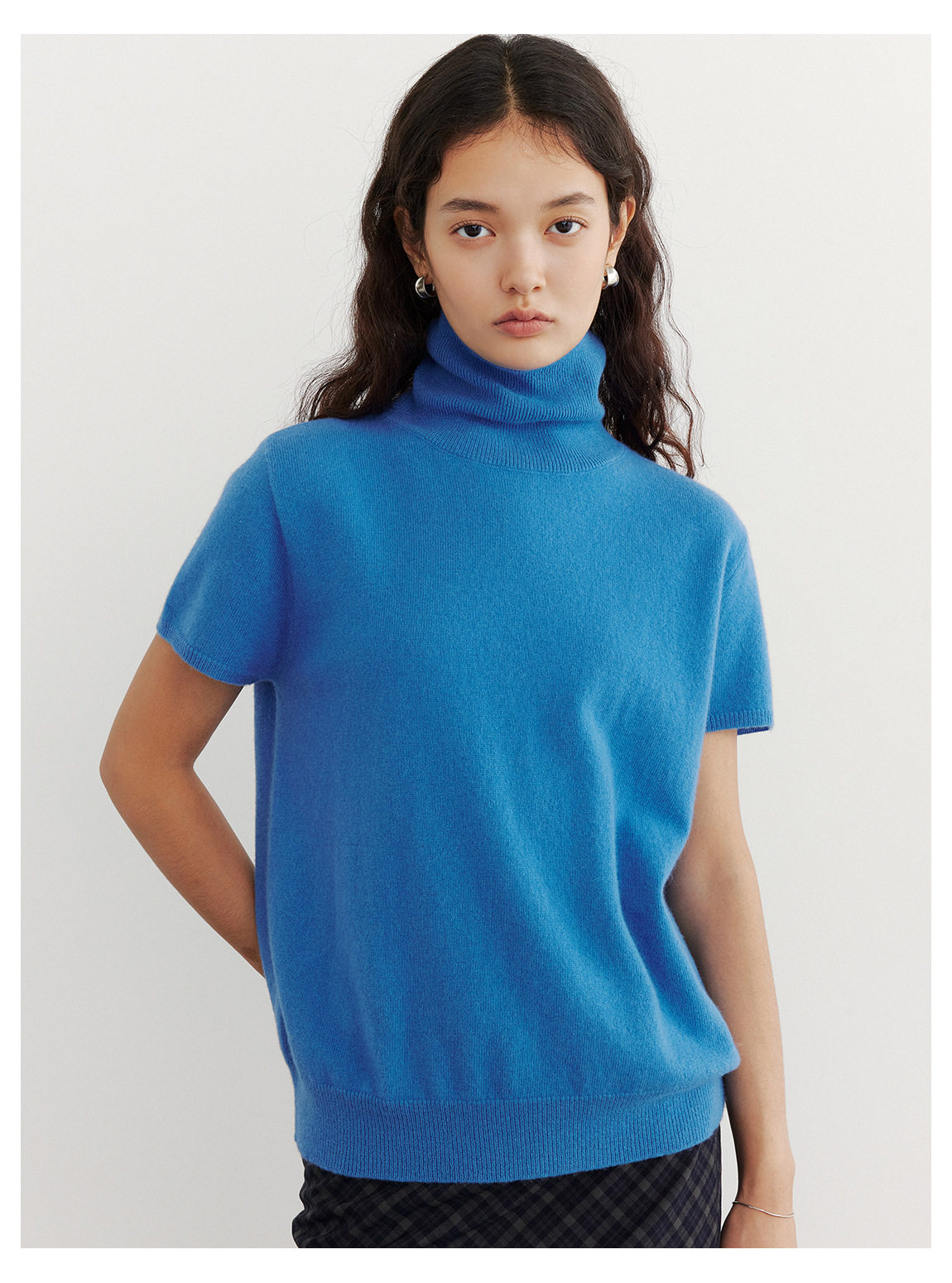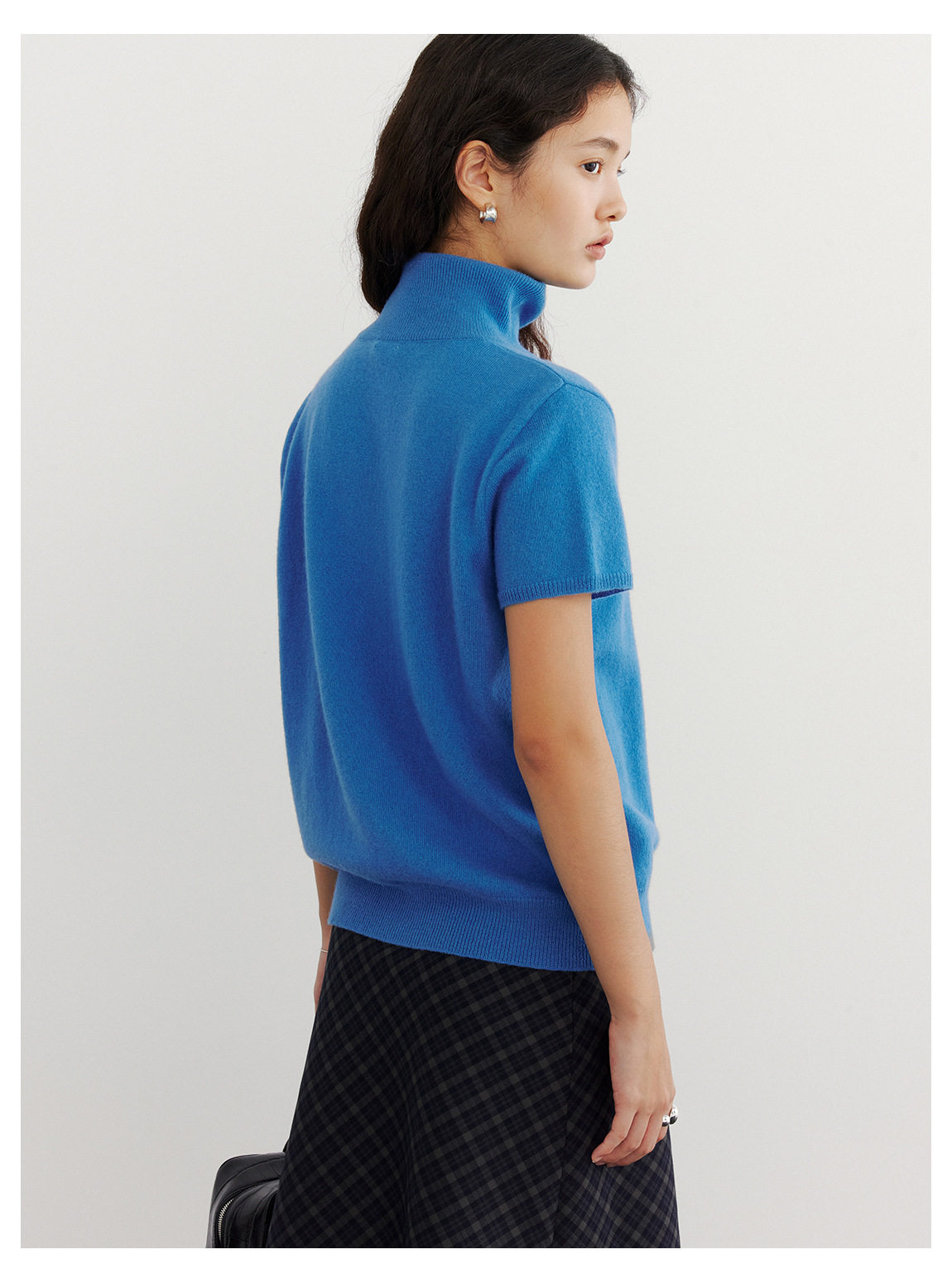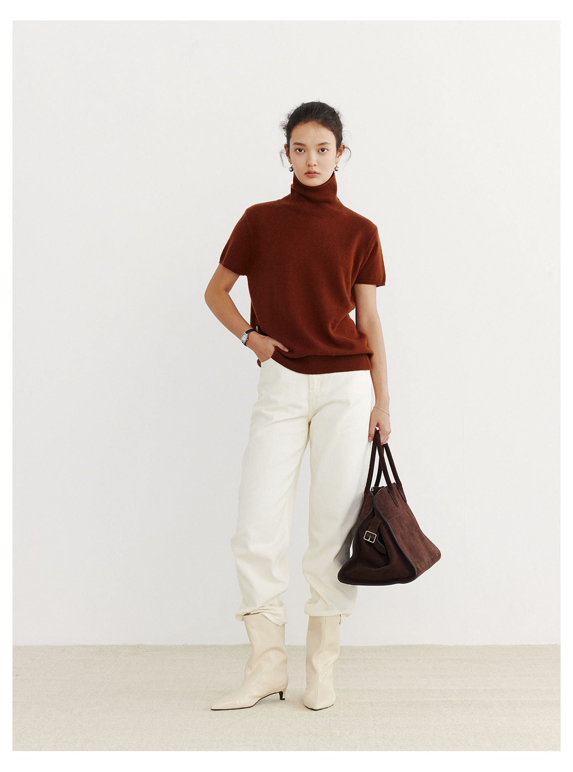 Yienou Inbyin 100% Pure Wool Knitwear Pullover Turtleneck Top for Women Autum Simple Short-Sleeved Knitwear for Women