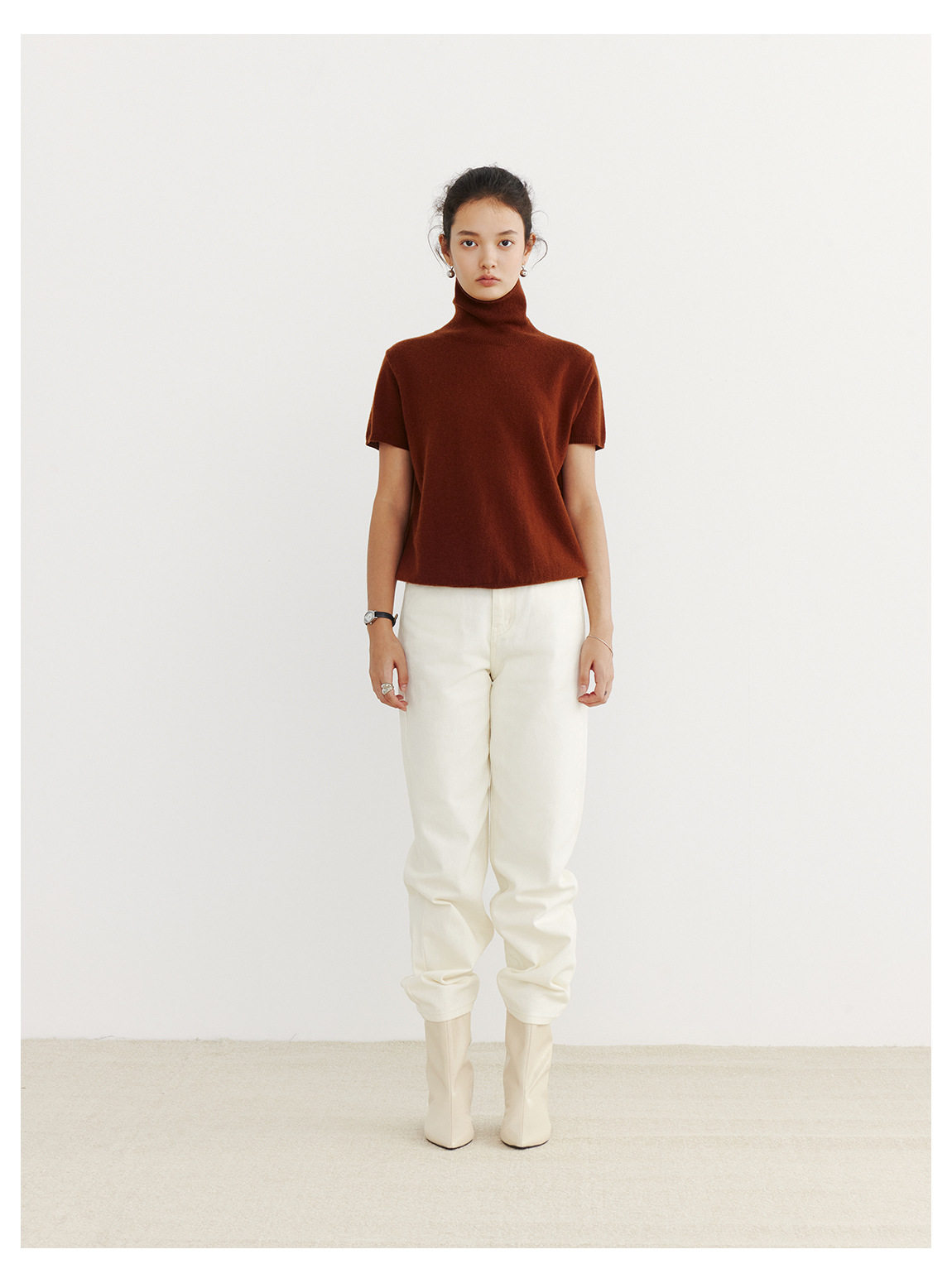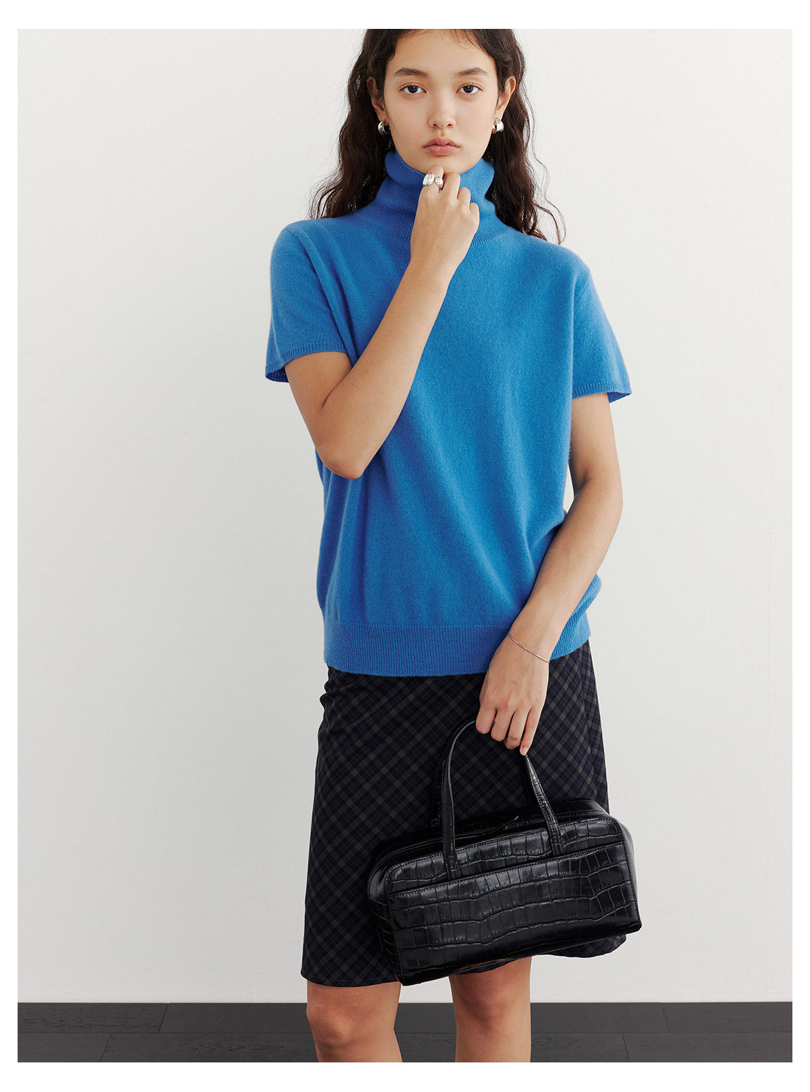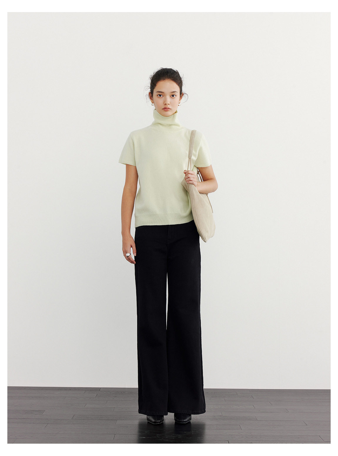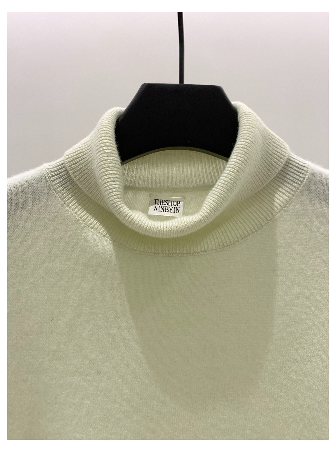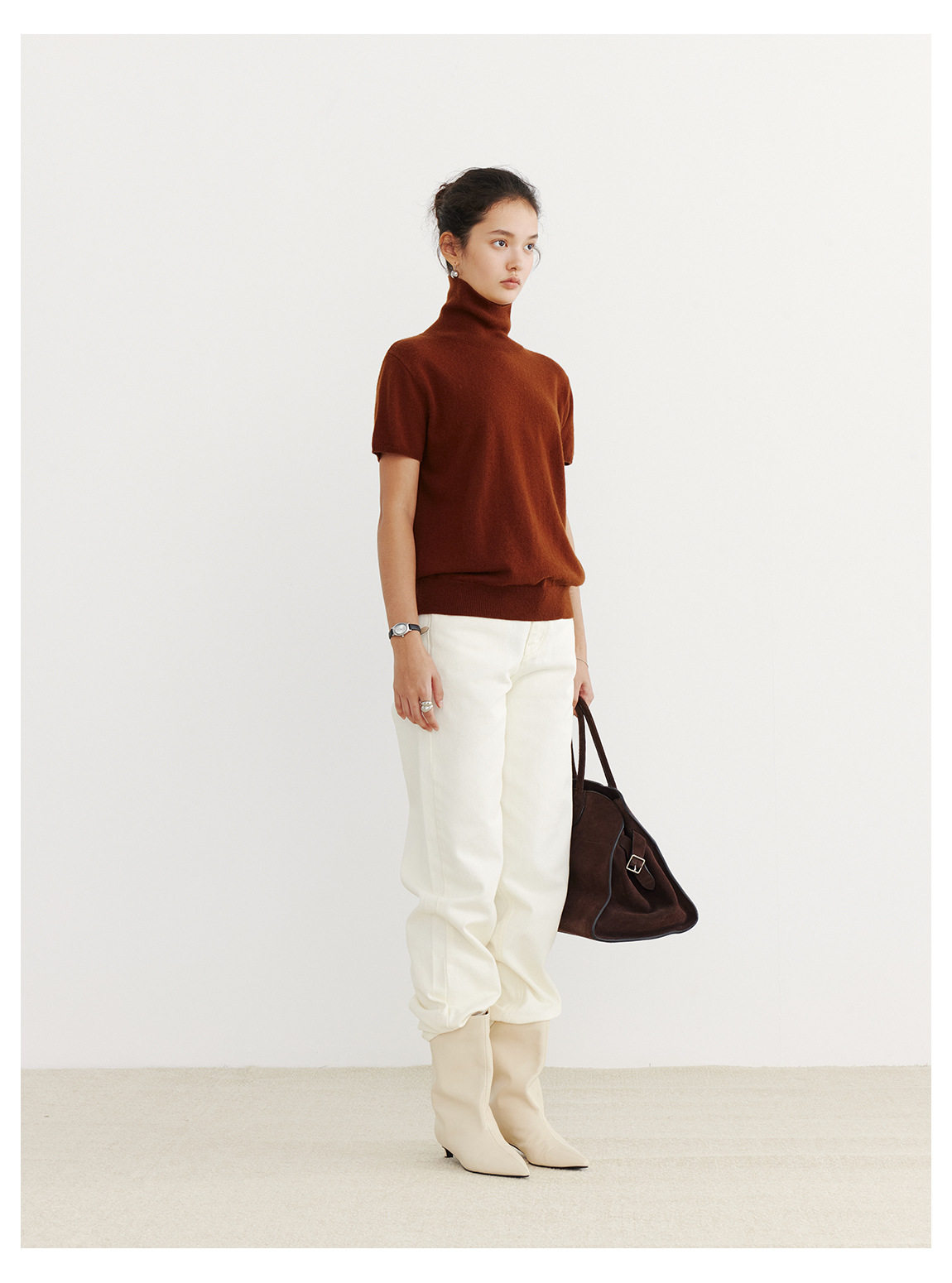 Yienou Inbyin 100% Pure Wool Knitwear Pullover Turtleneck Top for Women Autum Simple Short-Sleeved Knitwear for Women