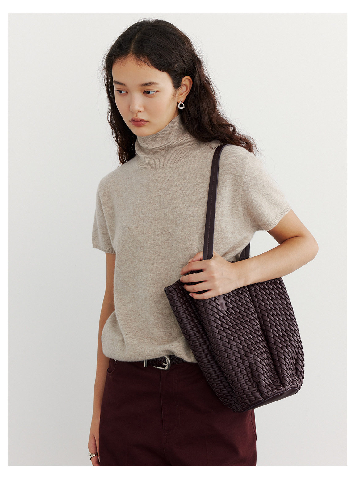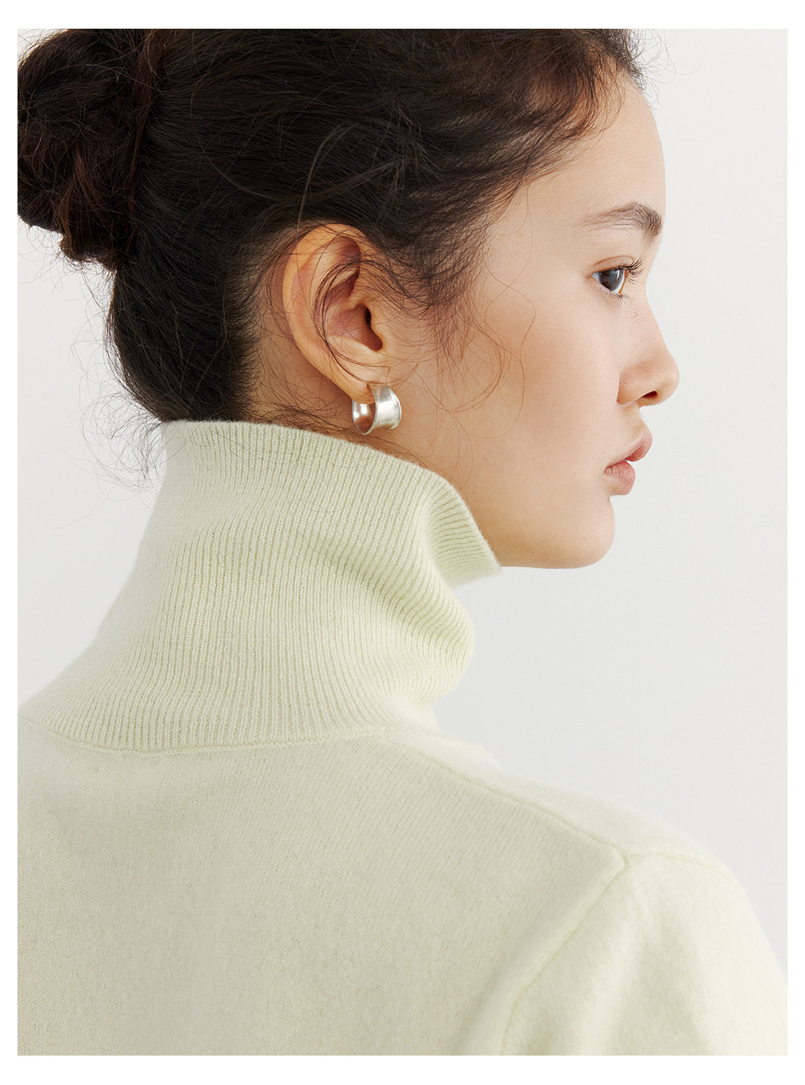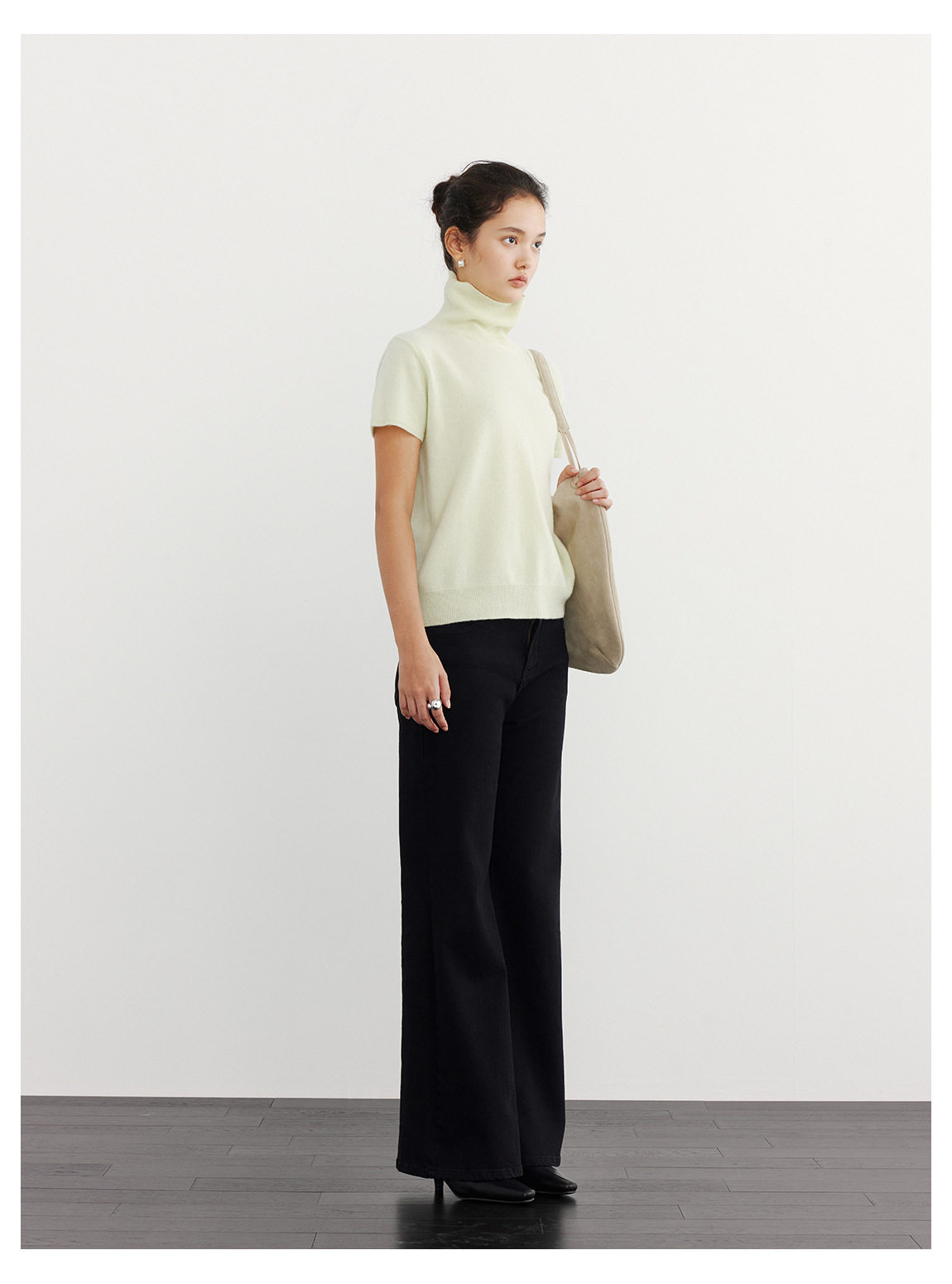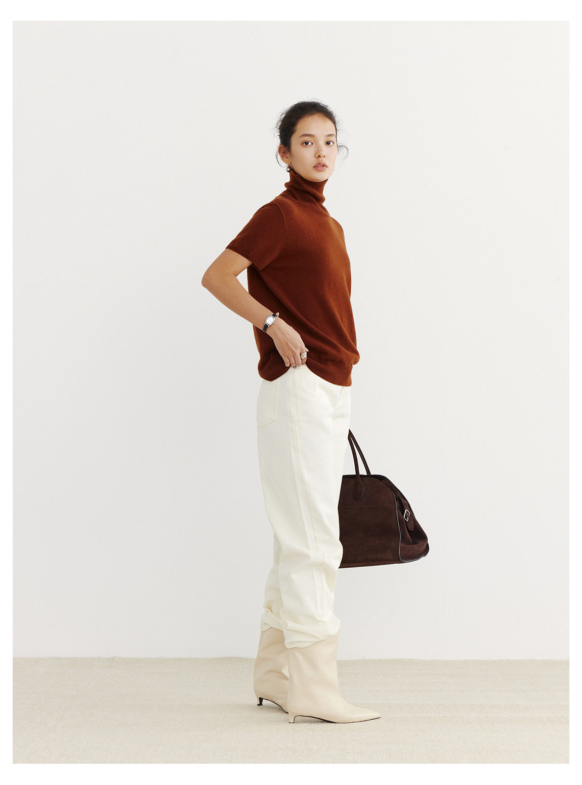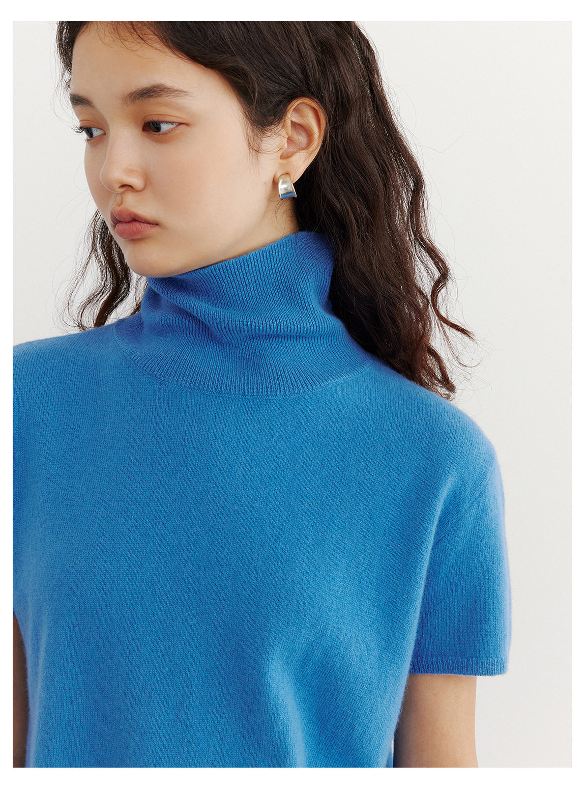 Yienou Inbyin 100% Pure Wool Knitwear Pullover Turtleneck Top for Women Autum Simple Short-Sleeved Knitwear for Women