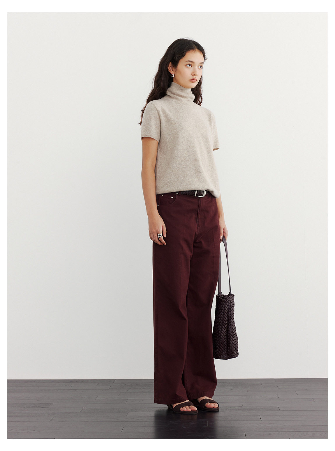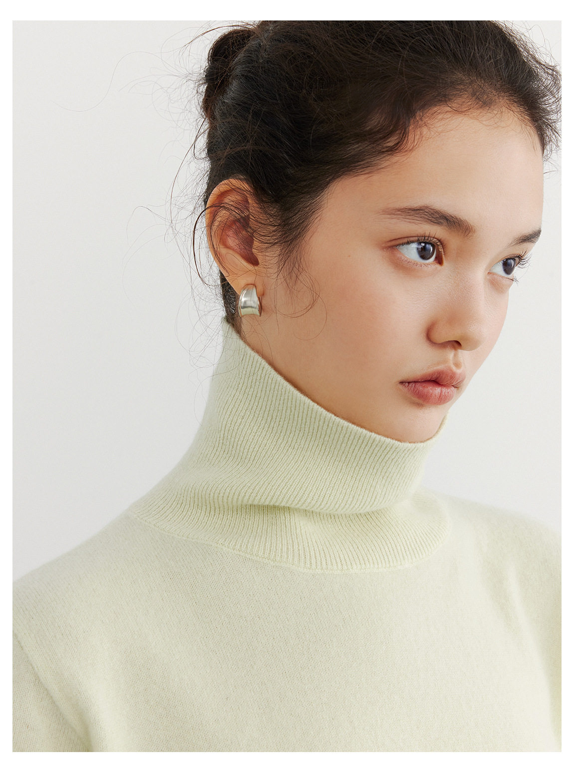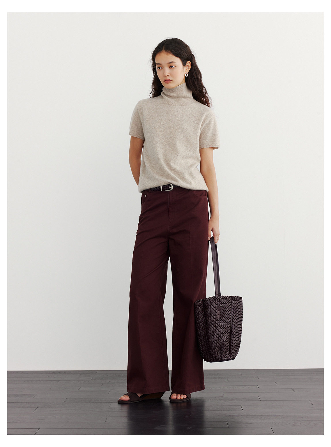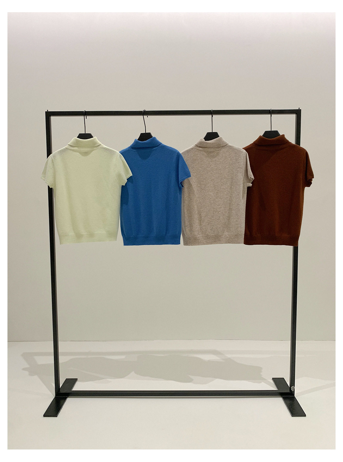 Yienou Inbyin 100% Pure Wool Knitwear Pullover Turtleneck Top for Women Autum Simple Short-Sleeved Knitwear for Women