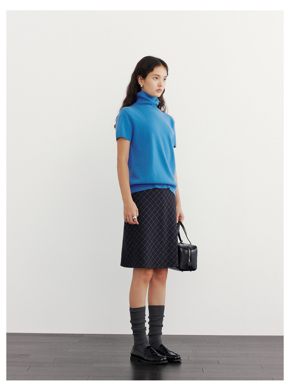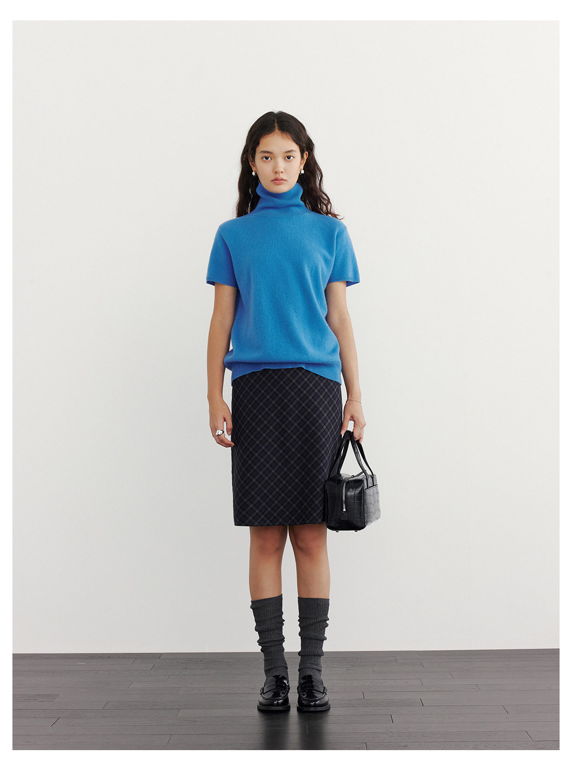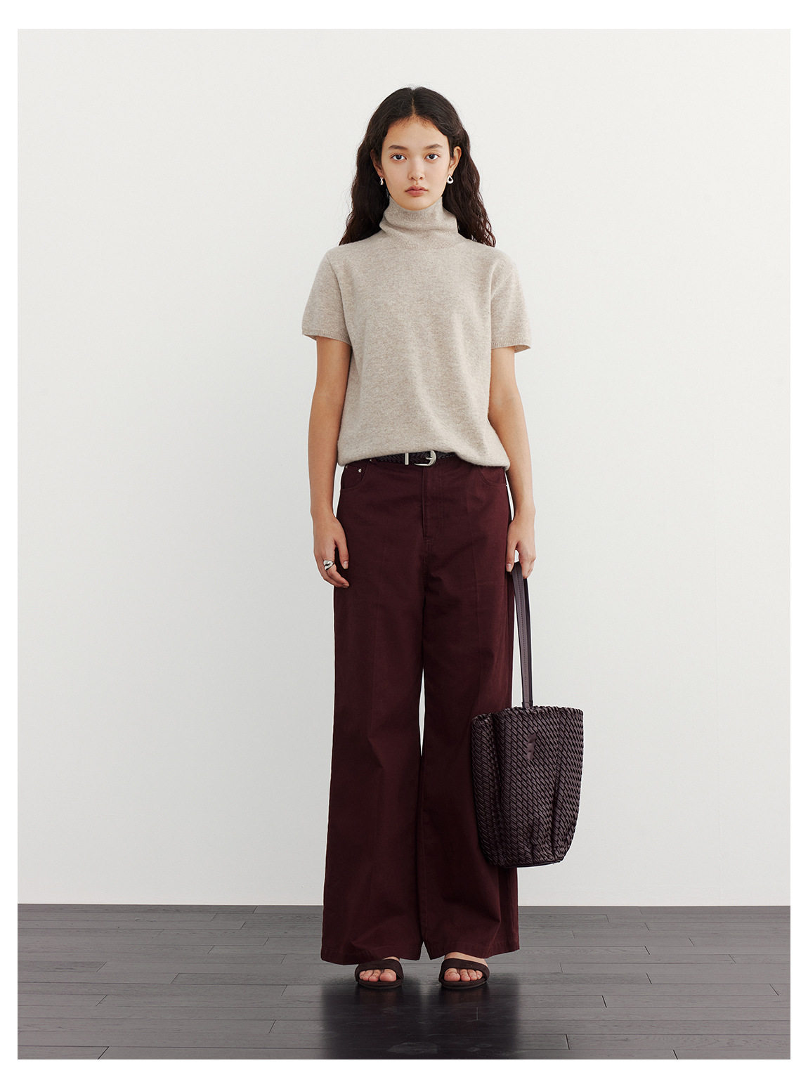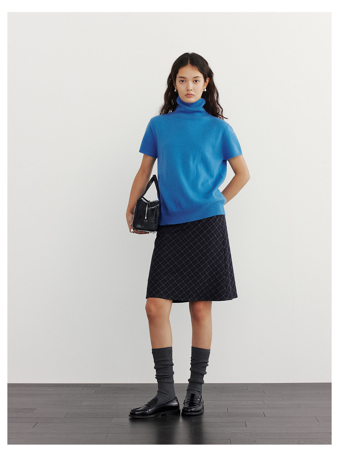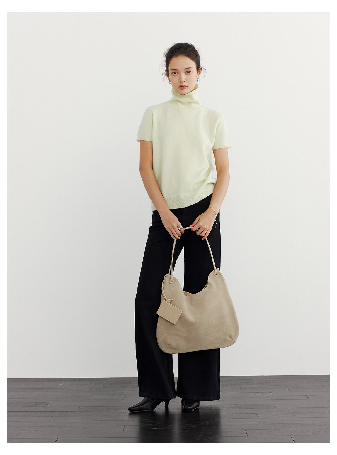 Yienou Inbyin 100% Pure Wool Knitwear Pullover Turtleneck Top for Women Autum Simple Short-Sleeved Knitwear for Women