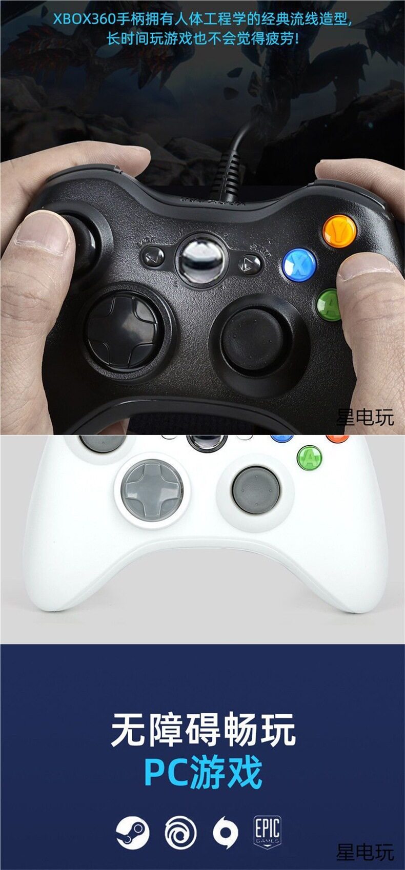 Suitable for Xbox360 Game Controller Computer Tv Steam Universal Linear Trigger Wired Controller