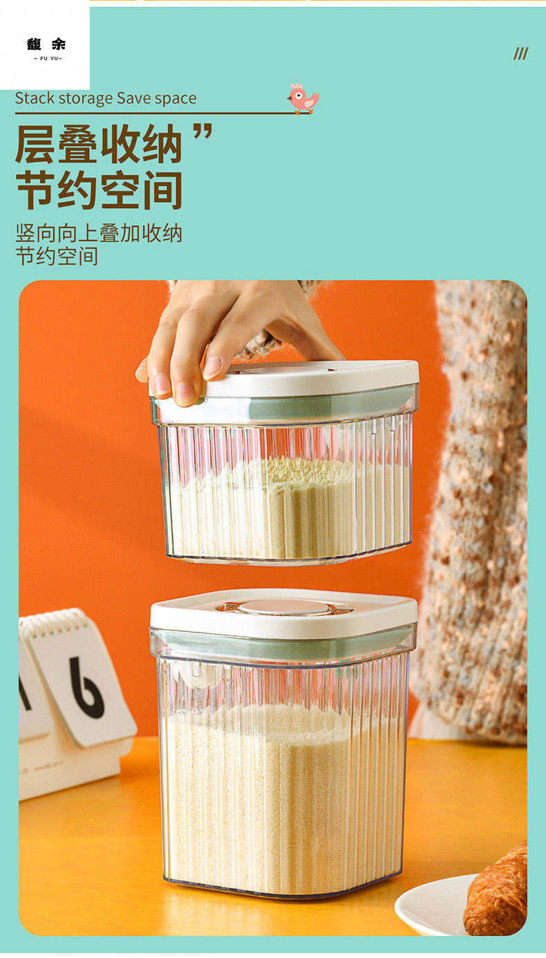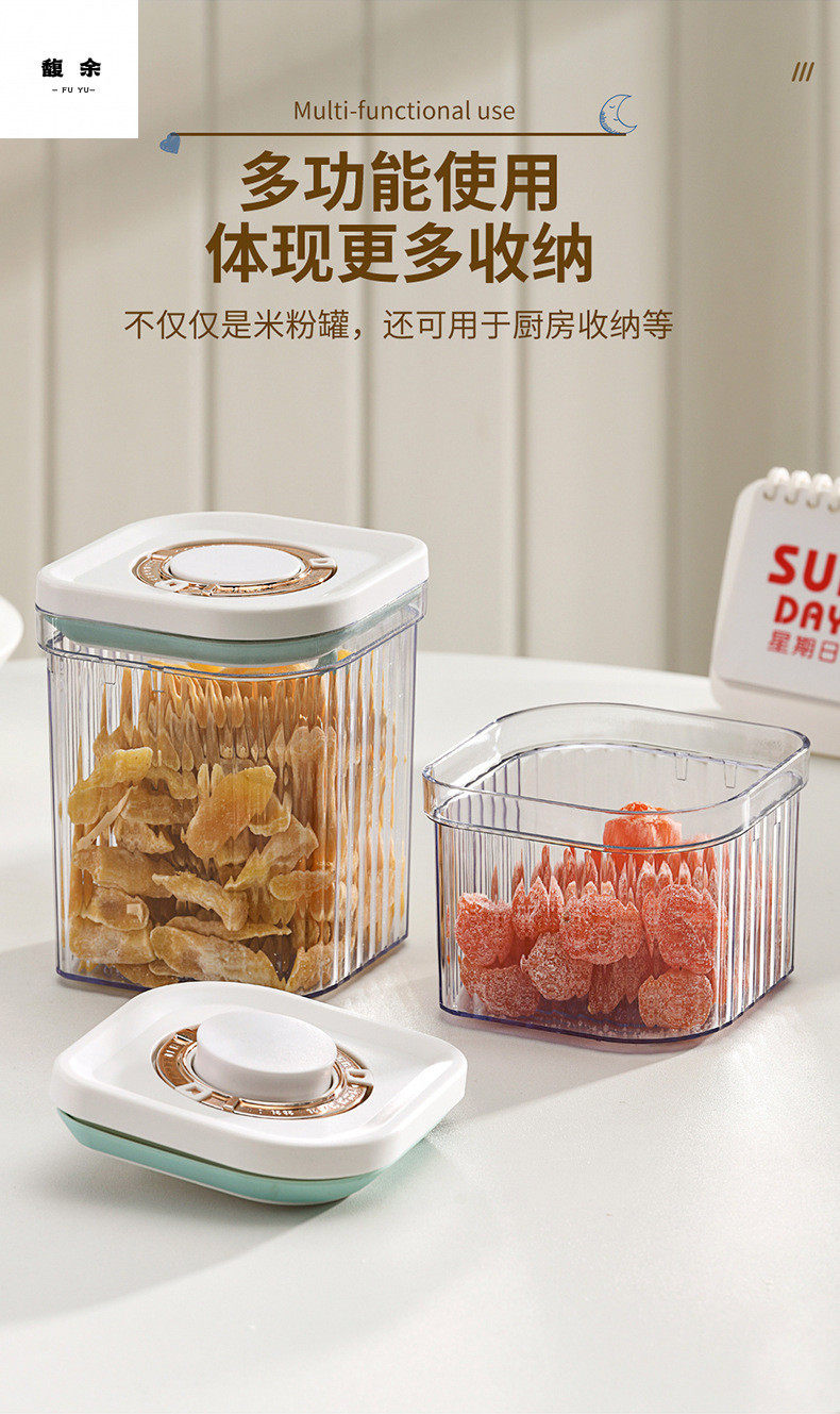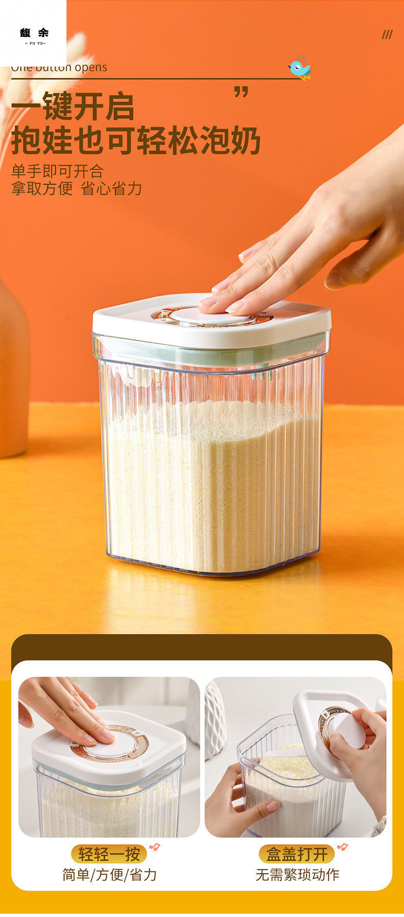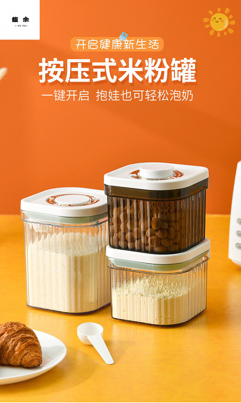 Snap-On One-Click Opening Lid, Light-Proof and Moisture-Proof Large-Capacity Rice Noodle Box, Plastic Sealed Storage Tank, Milk Powder Box, Milk Powder Tank