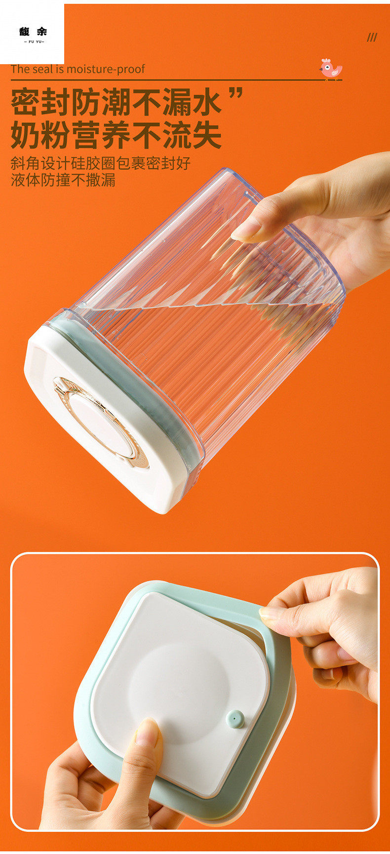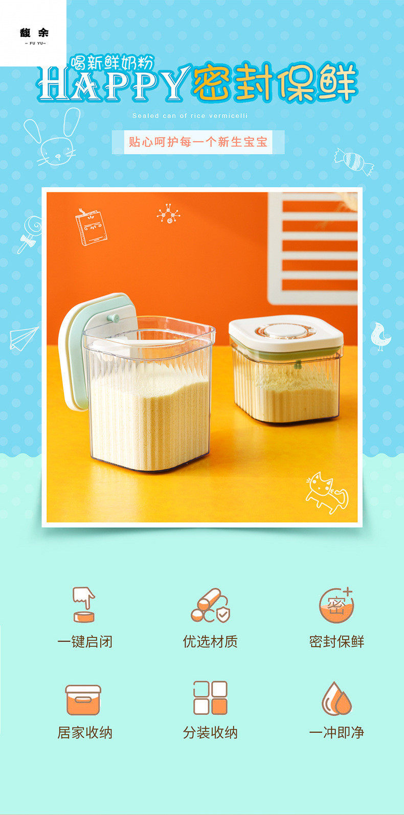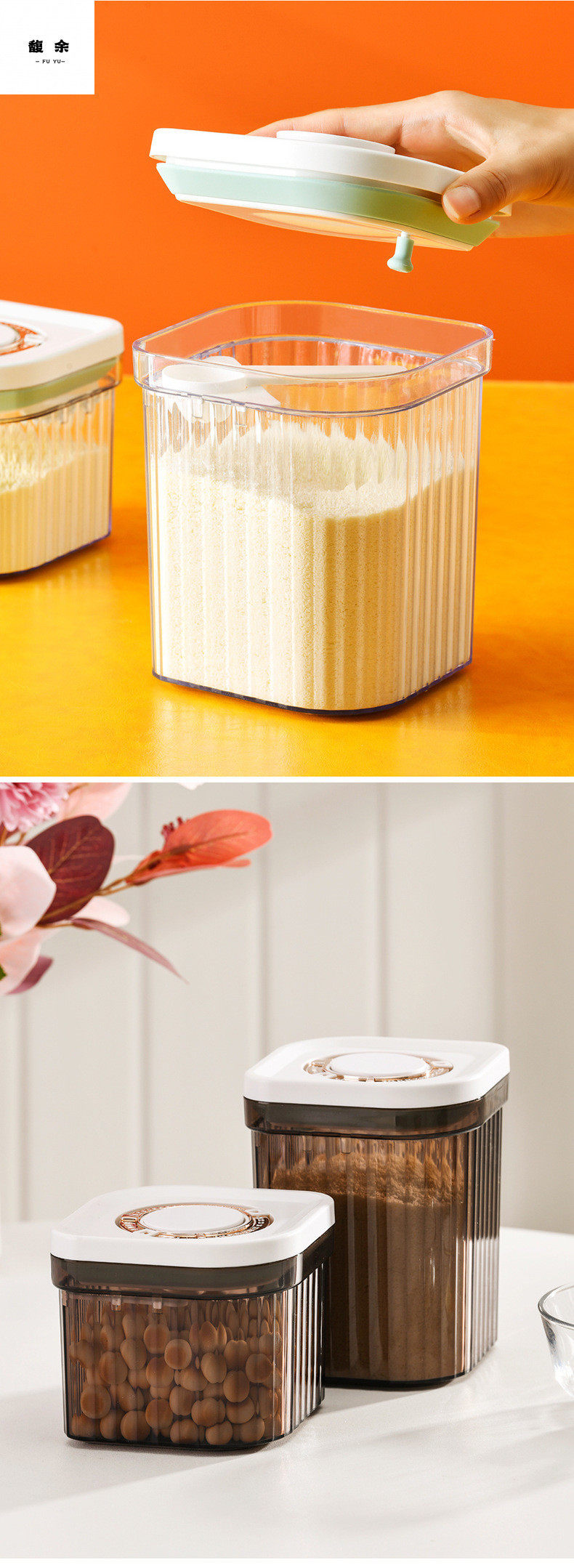 Snap-On One-Click Opening Lid, Light-Proof and Moisture-Proof Large-Capacity Rice Noodle Box, Plastic Sealed Storage Tank, Milk Powder Box, Milk Powder Tank