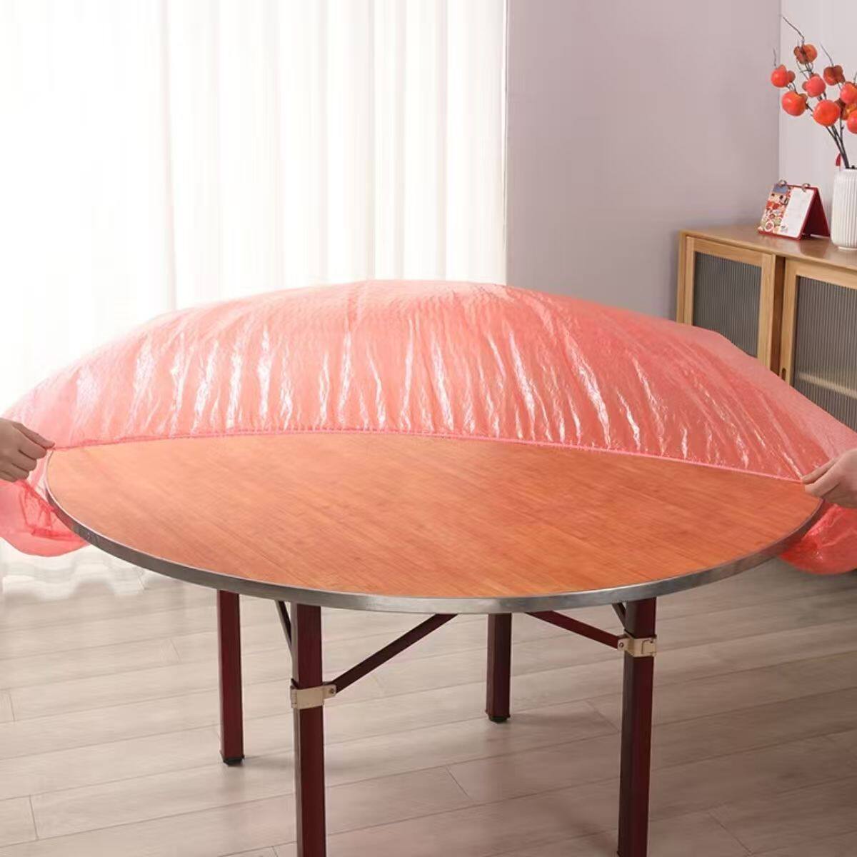 Disposable Tablecloth with Elastic Band for Wedding Catering Red Round Table Banquet Thickened Oil-Proof Dining Table Home Wholesale