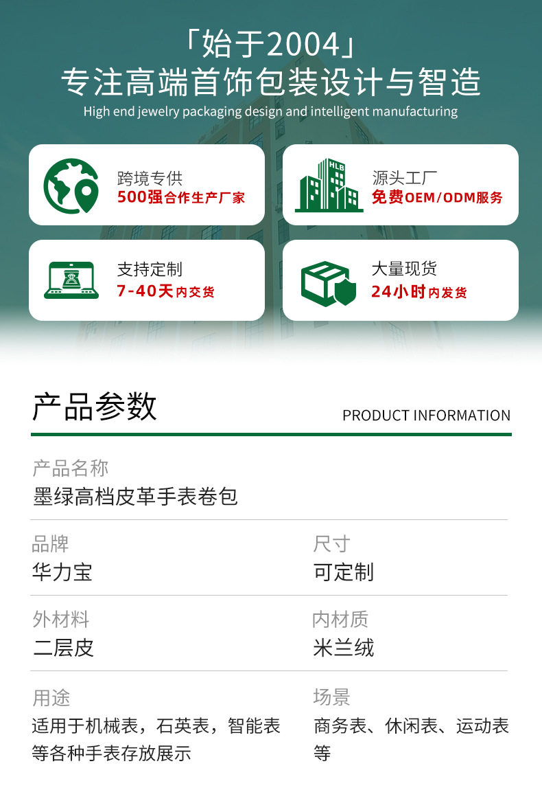 | Appearance design | Dark green leather + exquisite stitching + arc design |