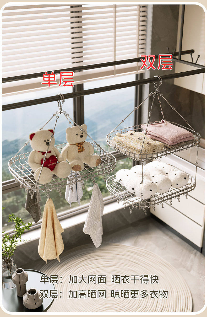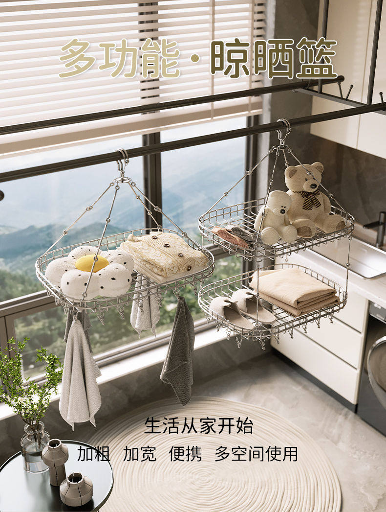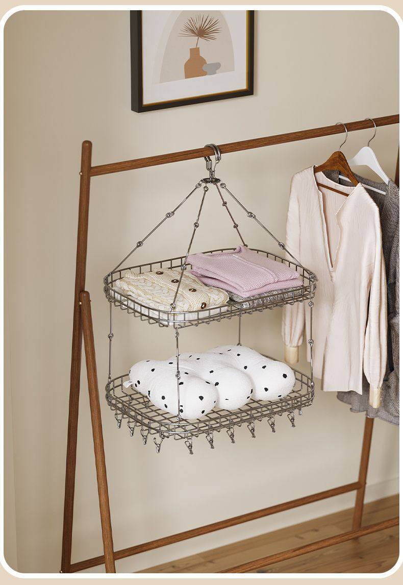 Stainless Steel Sweater Basket Drying Rack with Clips for Home Balcony Cashmere Sweater and Socks Drying