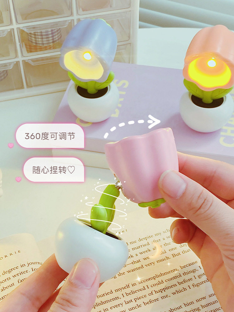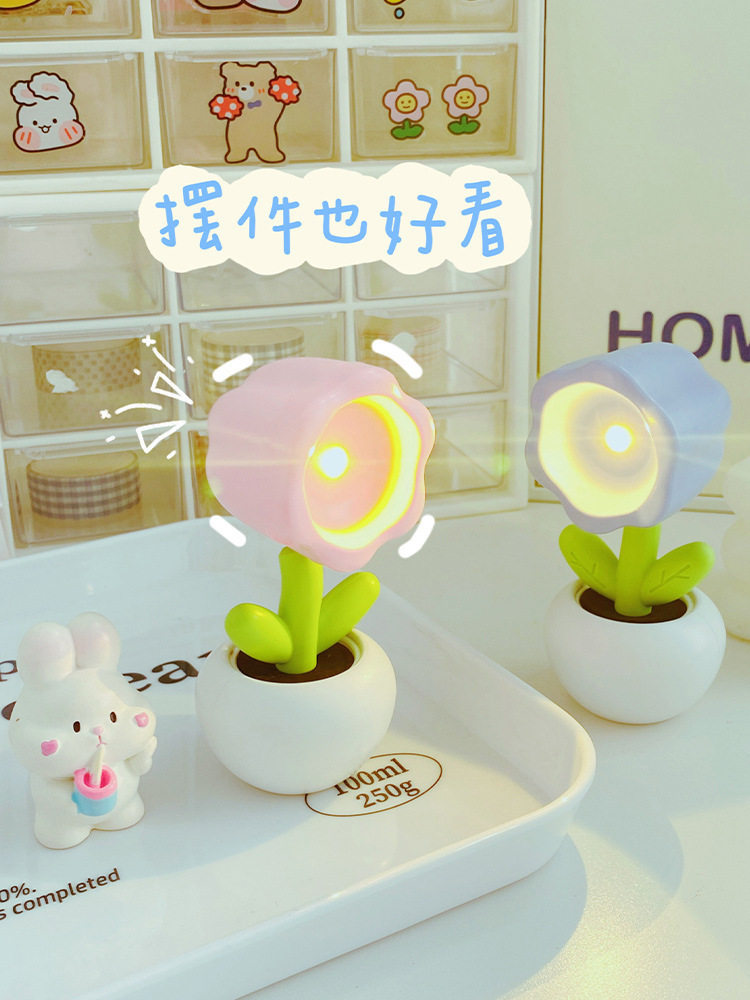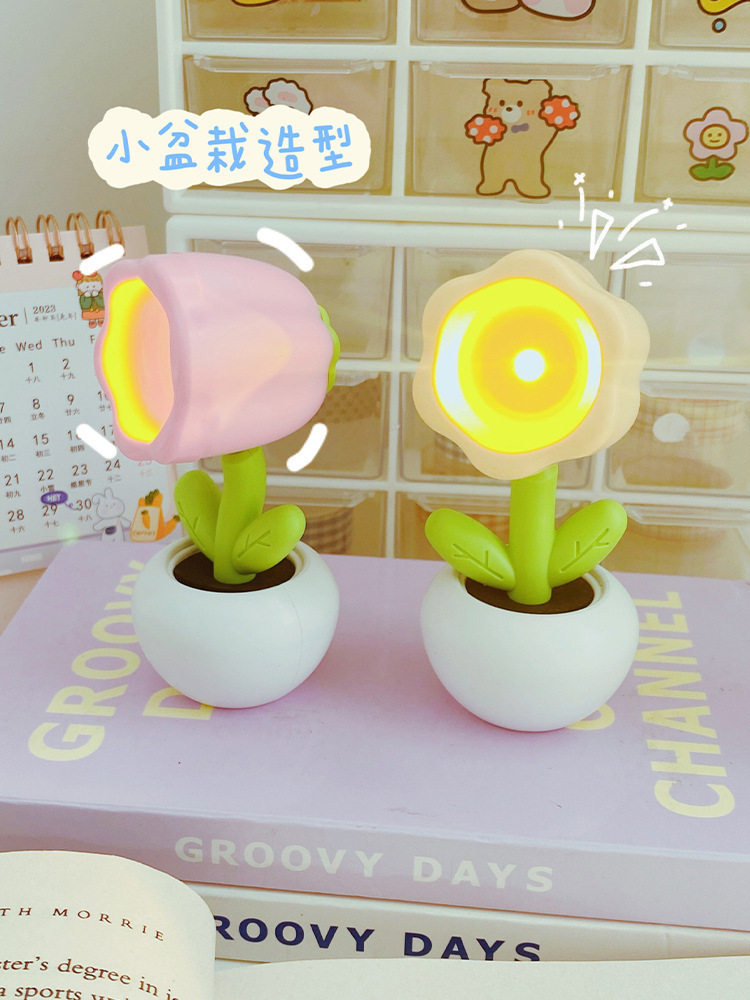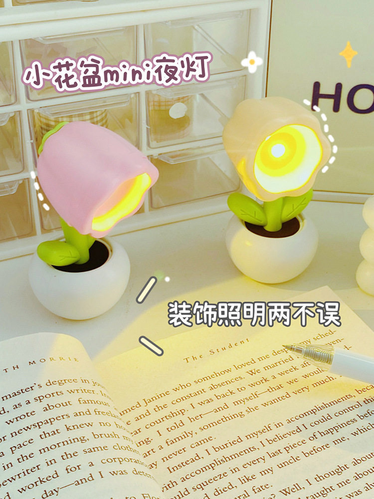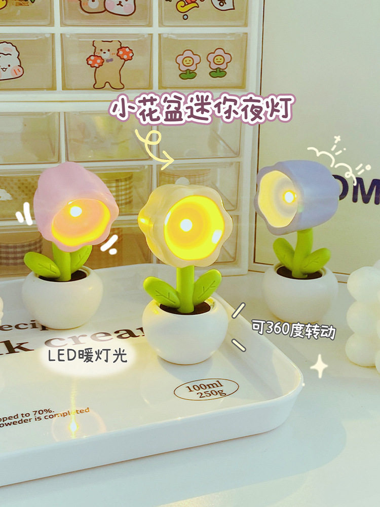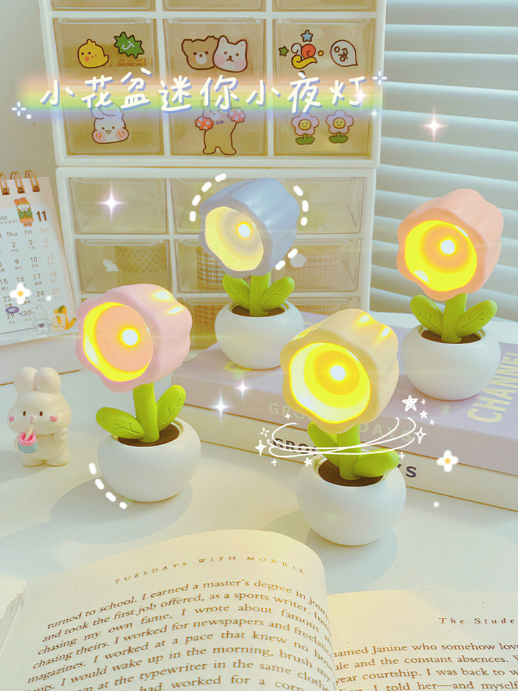 New Small Flower Pot Mini Night Light Cute Ornaments Desktop Cute Ins Table Lamp Girl Heart Kidsren's Gift