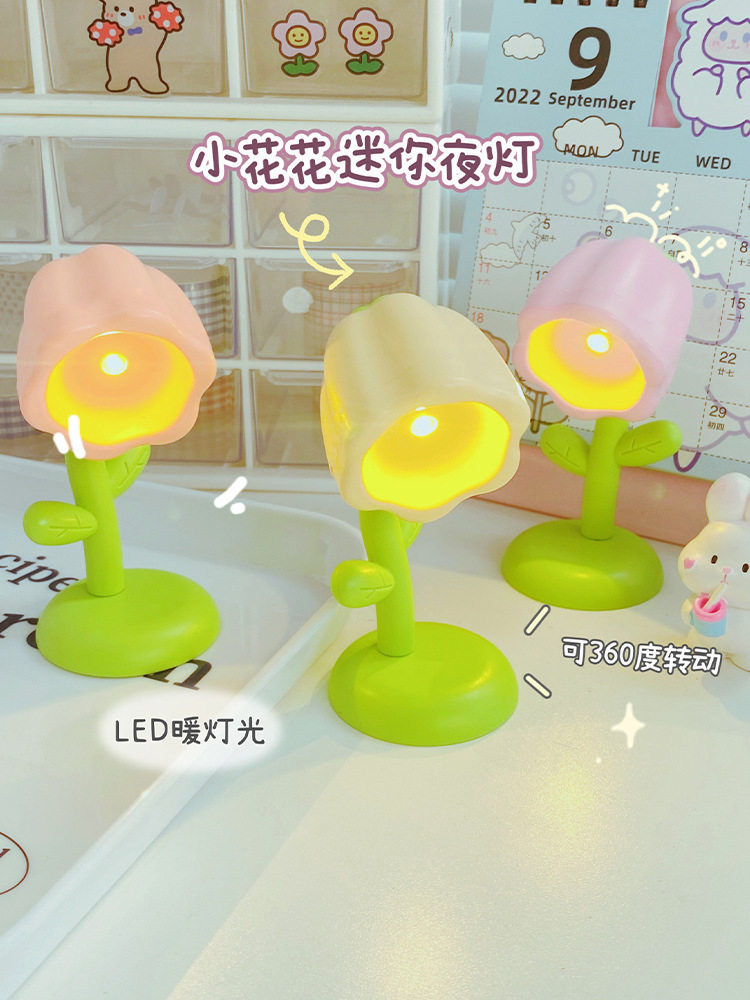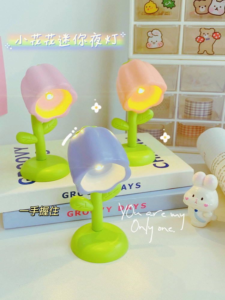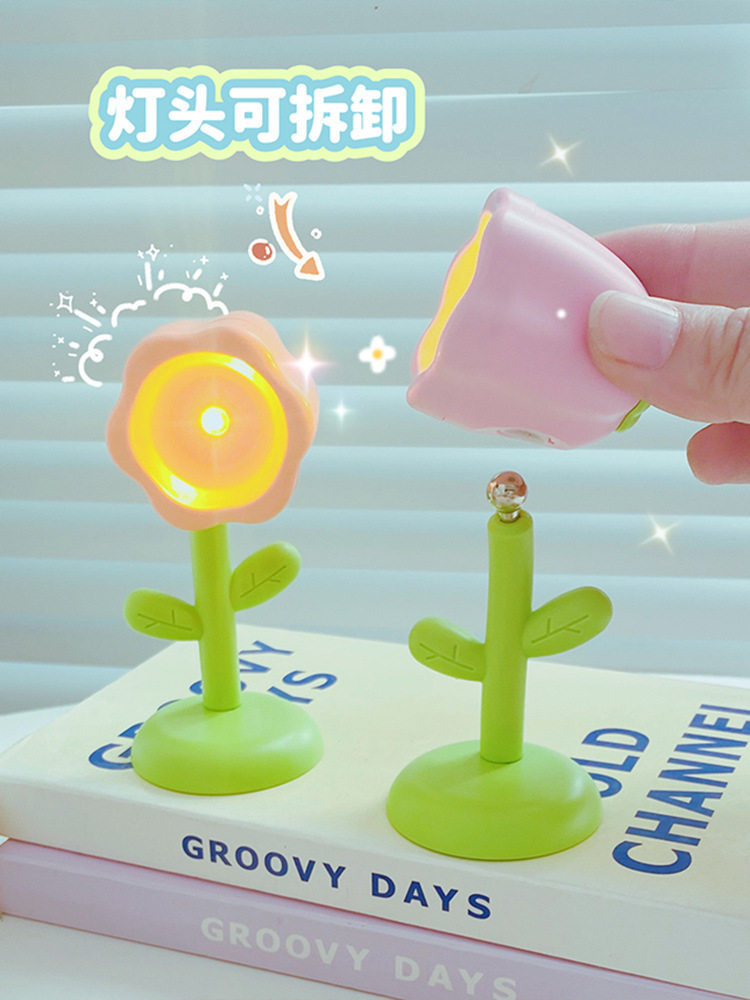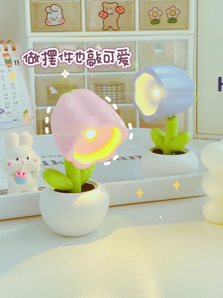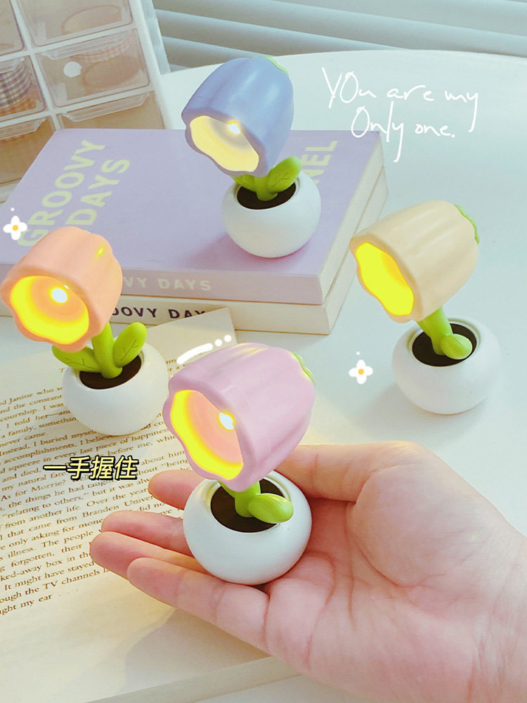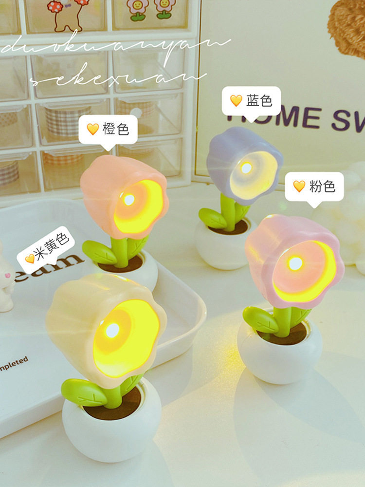 New Small Flower Pot Mini Night Light Cute Ornaments Desktop Cute Ins Table Lamp Girl Heart Kidsren's Gift