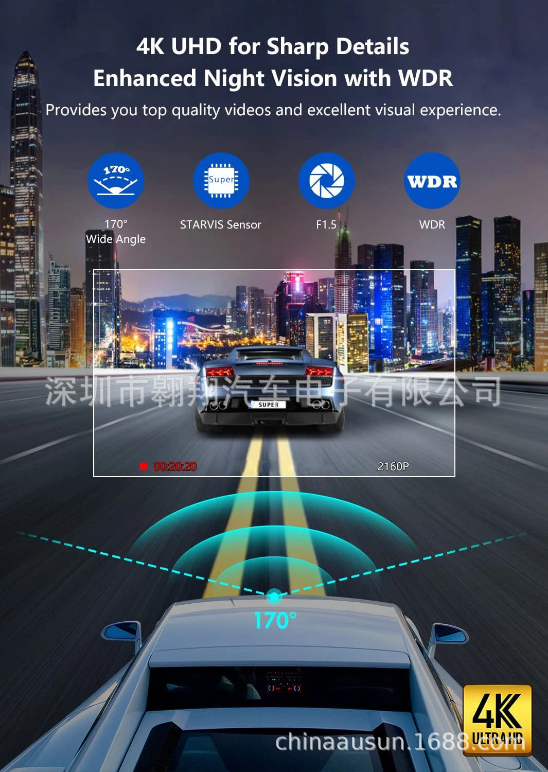 Cross-Border New Model Wifi Recorder with Mobile Phone Connectivity, Gps Parking Monitoring, High-Definition Driving Recorder 4Kadas