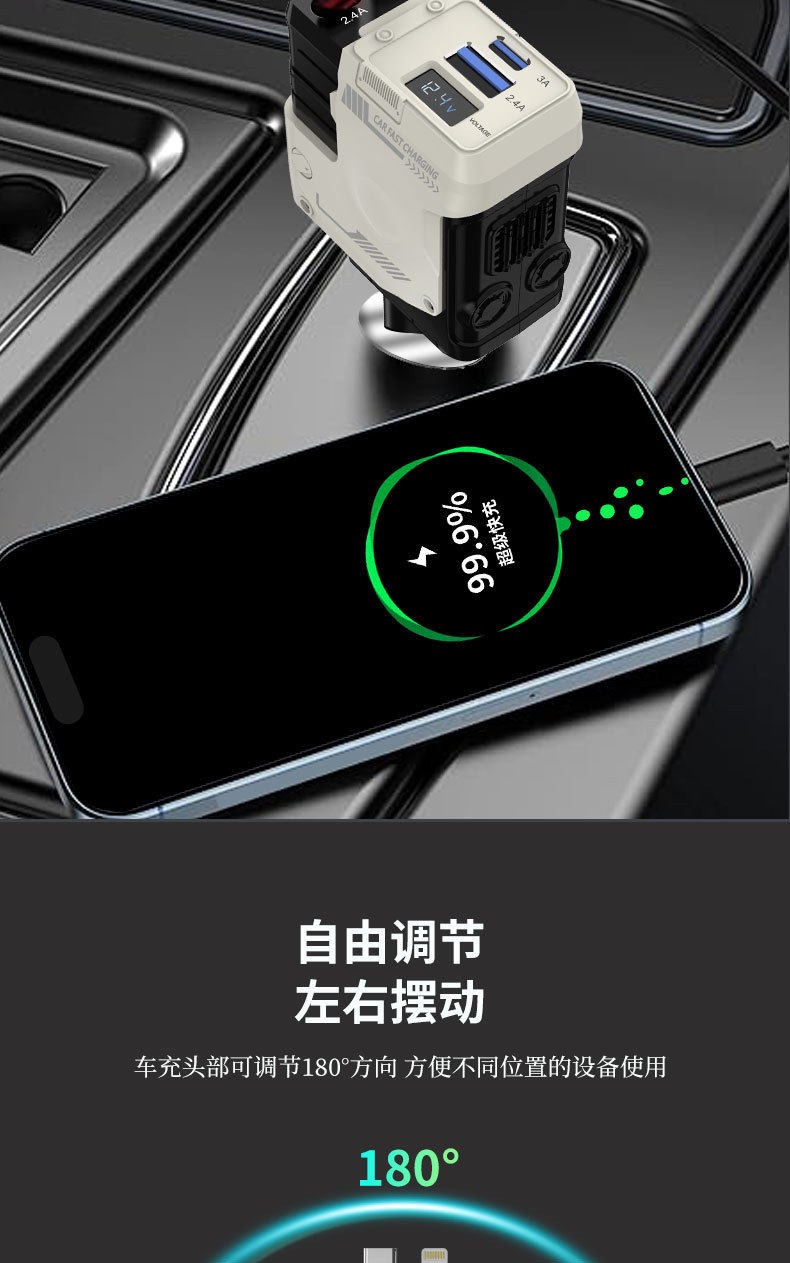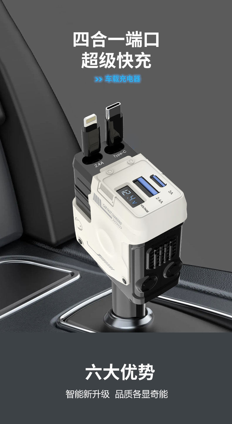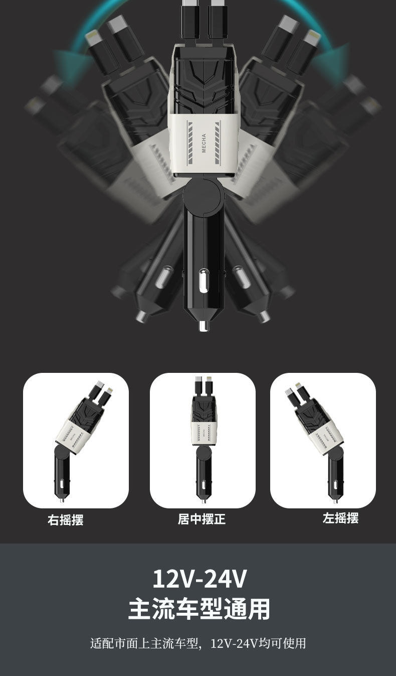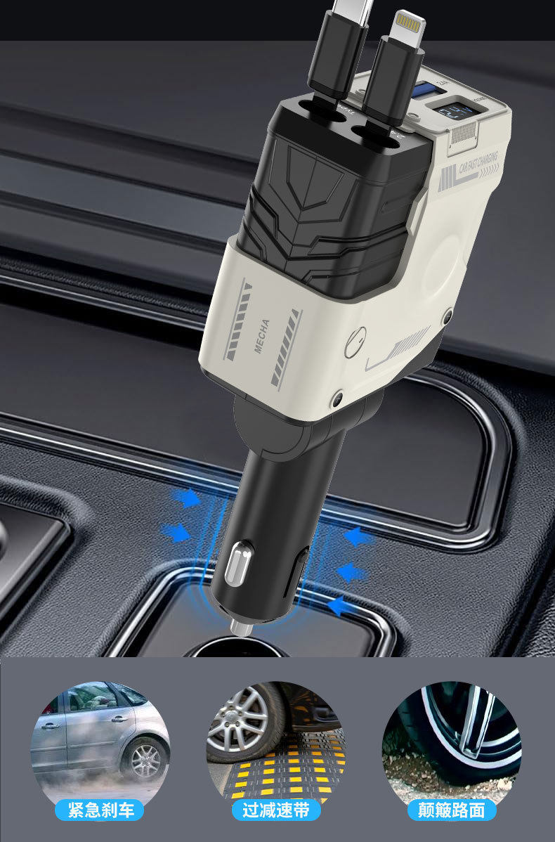 Cross-Border New Model A1 Mecha Car Charger 120W Super Fast Charging Car Charger Four-In-One with Built-In Retractable Cable