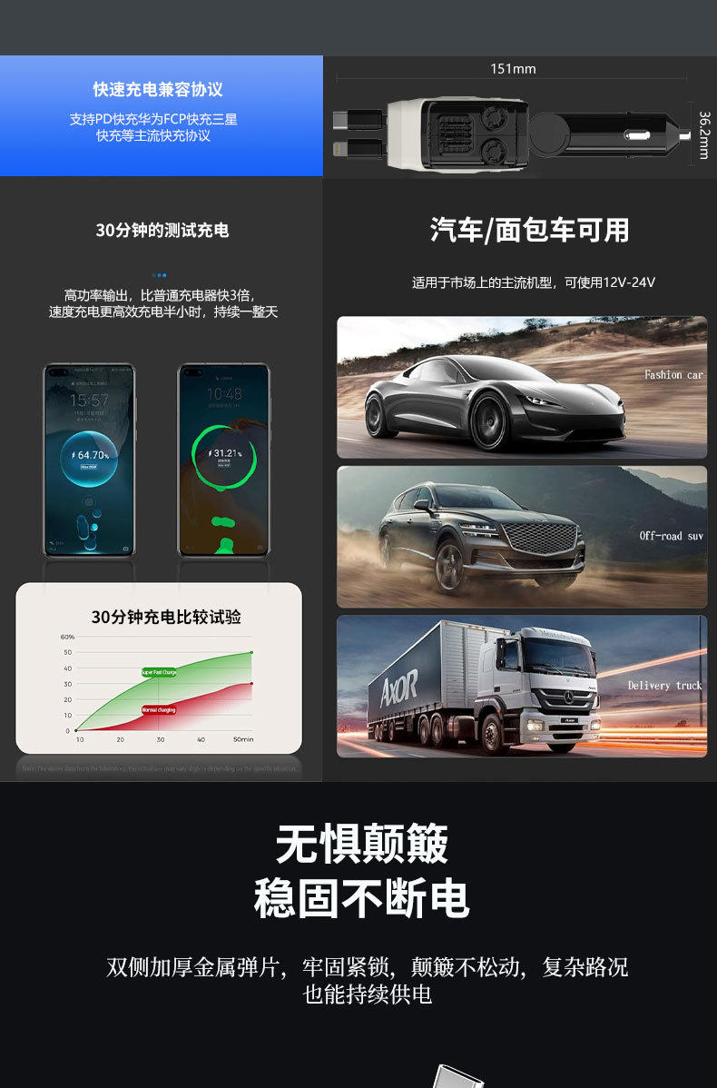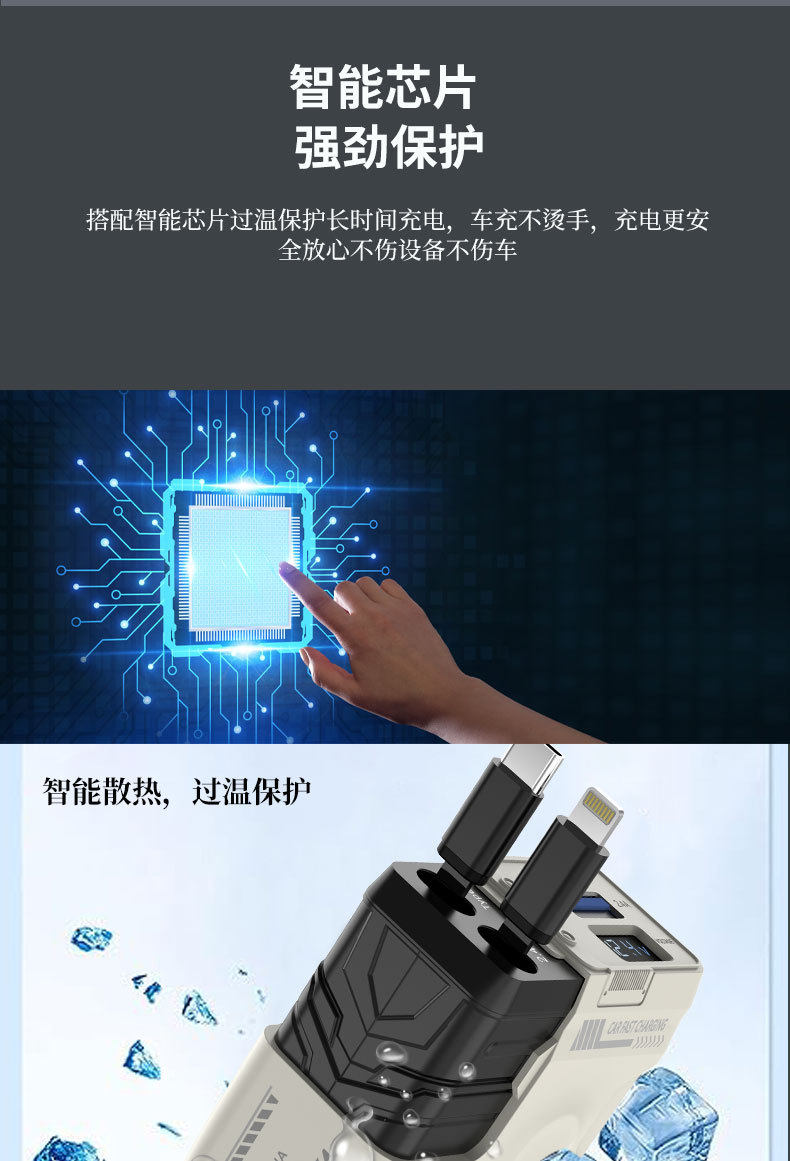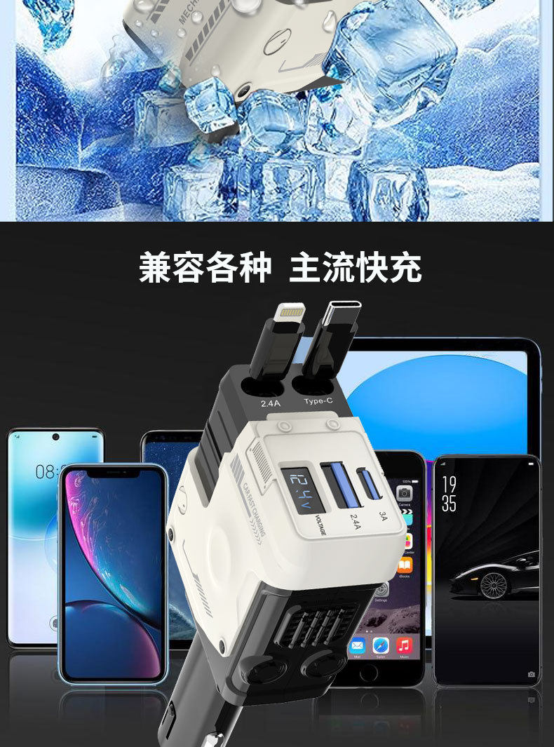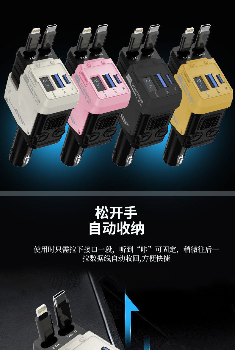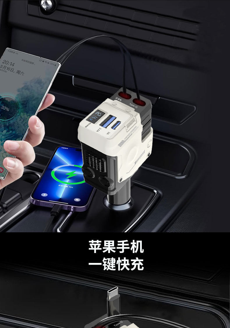 Cross-Border New Model A1 Mecha Car Charger 120W Super Fast Charging Car Charger Four-In-One with Built-In Retractable Cable