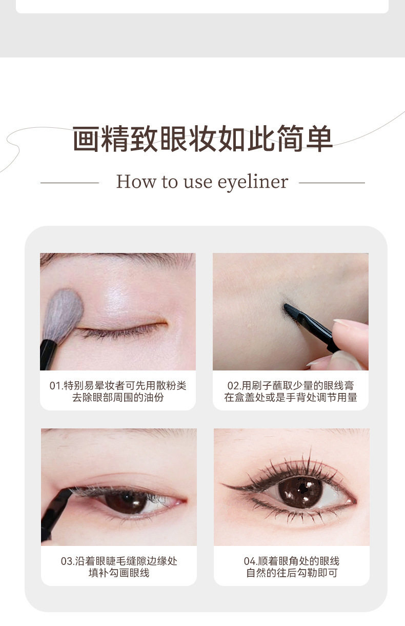 Makeup Novo Smooth Eyeliner Cream for Beginners Waterproof Long-Lasting Non-Smudged Black Brown Eyeliner Gel