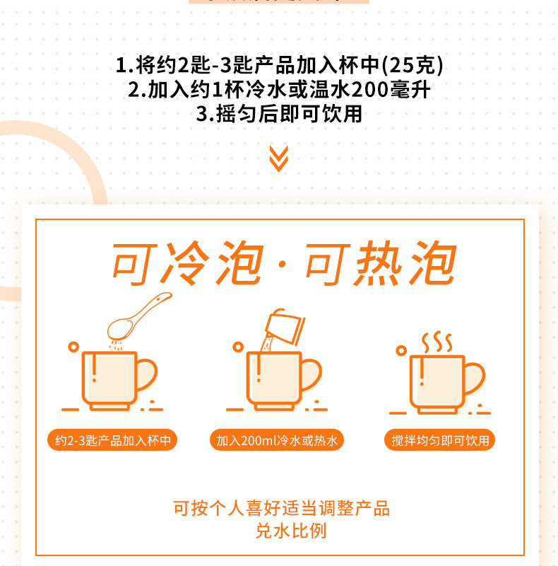 | Packaging specifications | Citrus powder 500g*4 cans,2 cans of citrus powder + 2 cans of sour plum crystals,2 cans of bayberry juice + 2 cans of citrus powder,1 can of citrus powder + 1 can of bayberry juice + 1 can of sour plum crystals,1 can of citrus powder + 1 can of hawthorn and poria + 1 can of sour plum crystal,1 can of citrus powder + 1 can of bayberry juice,1 can of sour plum crystals + 1 can of hawthorn and poria,1 can of citrus powder + 1 can of sour plum crystals,1 can of citrus powder + 1 can of hawthorn and poria,Citrus powder 500g*1 can,Citrus powder 500g*2 cans,Citrus powder 500g*3 cans |