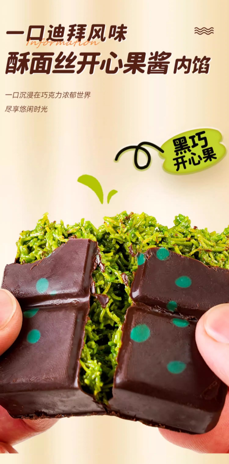 | Packaging specifications | [pistachio flavor*1 box] dubai flavor dark chocolate,[pistachio flavor*2 boxes] buy 1 box and get 1 box free,[pistachio flavor*4 boxes] buy 2 boxes and get 2 boxes free,[pistachio flavor*6 boxes] buy 3 boxes and get 3 boxes free,[mixed flavors] pistachio flavor*1 box comes with hazelnut sauce flavor*1 box,[mixed flavors] pistachio flavor*2 boxes and hazelnut sauce flavor*2 boxes |