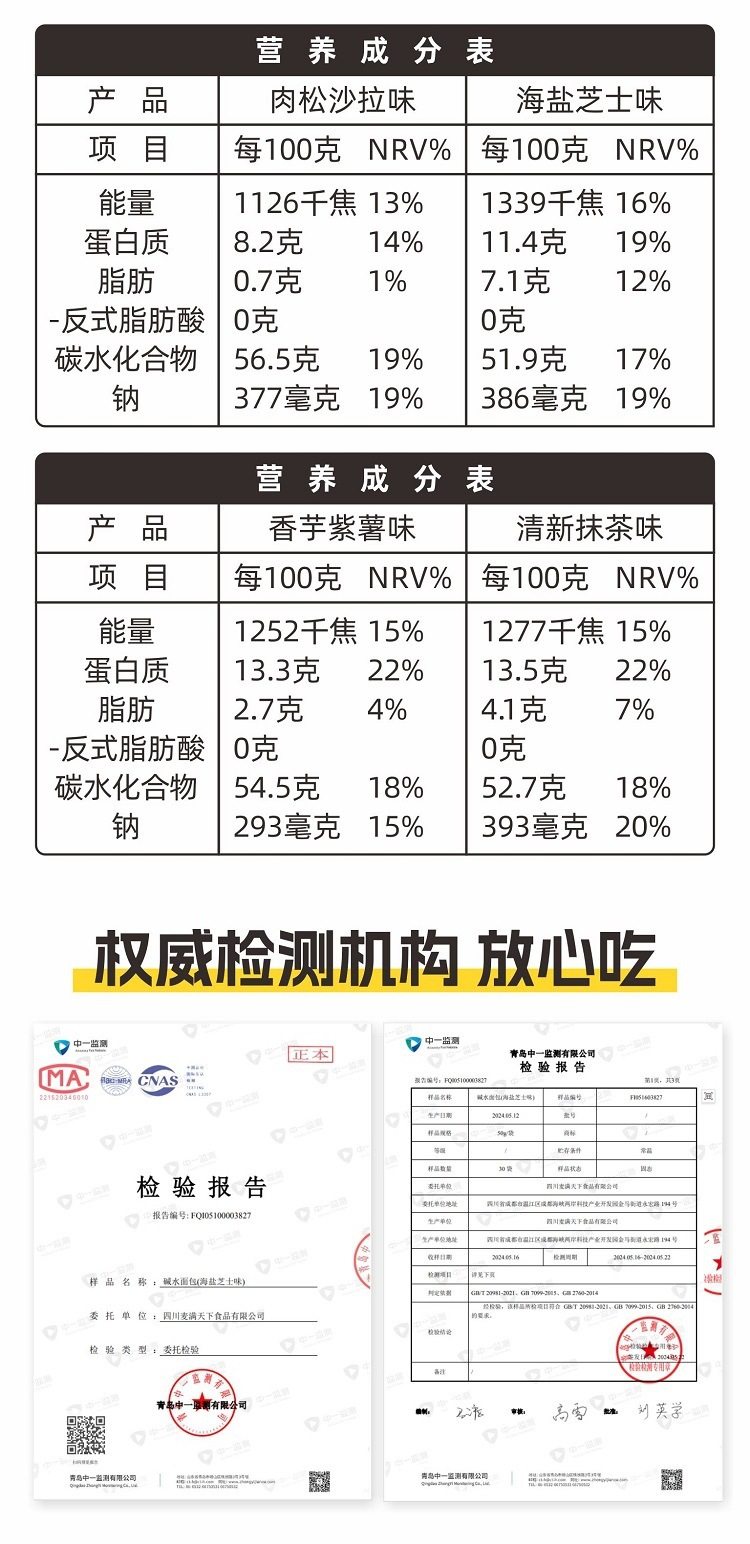 | Packaging specifications | Sea salt cheese flavor 50g*1 bag (choose 15 pieces for delivery, no delivery!),Meat floss salad flavor 50g*1 bag (choose 15 pieces for delivery, no delivery!),Fresh matcha flavor 50g*1 bag (choose 15 pieces for delivery, no delivery!),Taro and purple potato flavor 50g*1 bag (choose 15 pieces for delivery, no delivery!),Original flavor without filling 50g*1 bag (choose 15 pieces for delivery, no delivery!),New durian flavor 50g*1 bag (choose 15 pieces for delivery, no delivery!) |