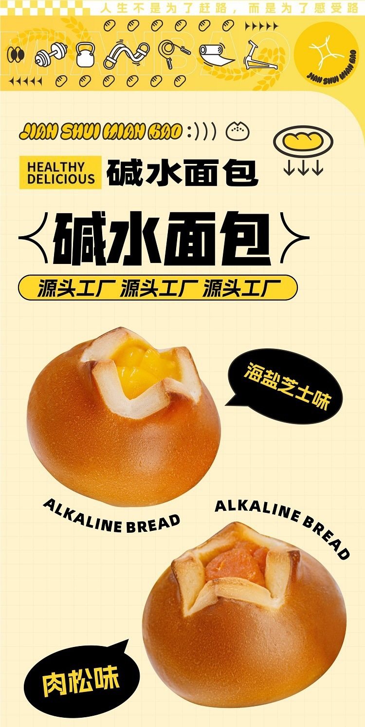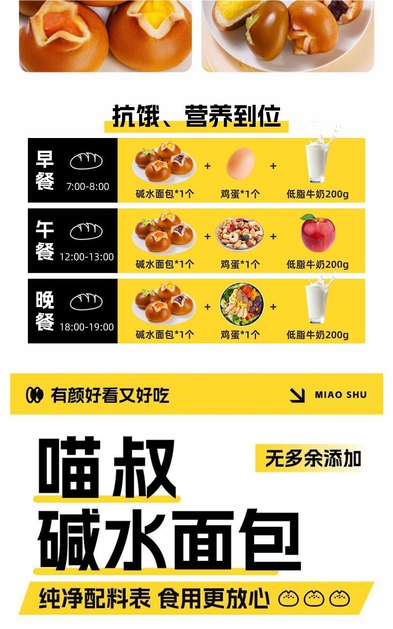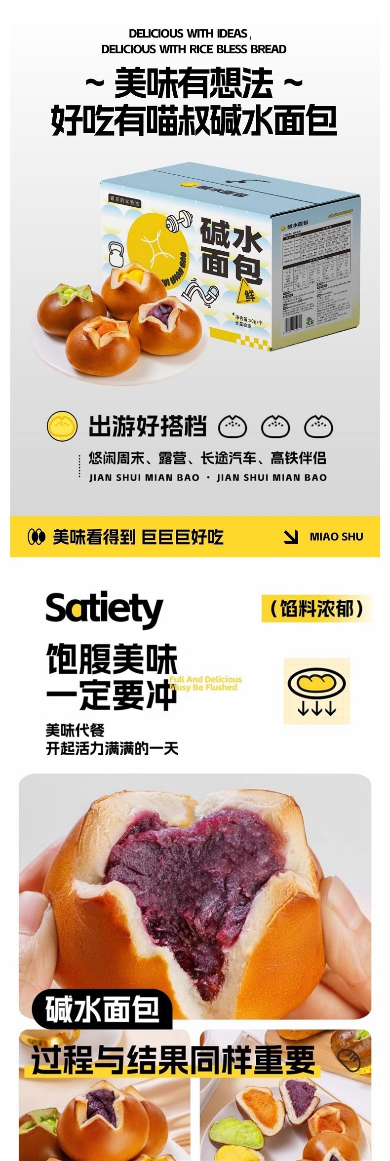 Uncle Meow's Alkaline Water Bread Balls, Whole Box of Meal Replacement Staple Breakfast, Durian Sandwich, Salty, Chewy and Flexible Small Bread