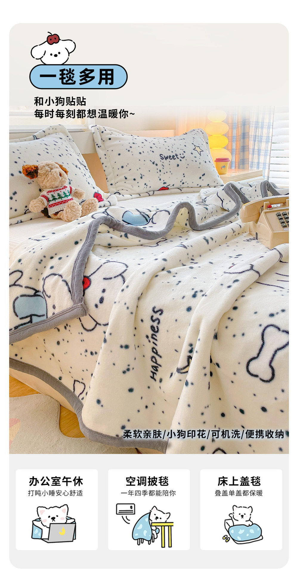 | Size Specifications | 1.0x1.5m [shawl blanket] air-conditioned room cover,1.5x2.0m [suitable for 1.2m wide bed/single blanket] can be covered or padded |