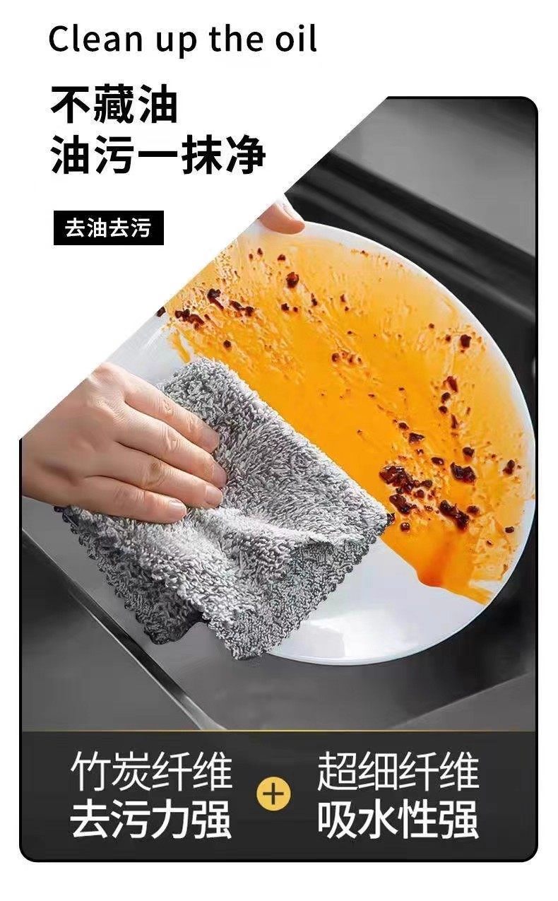 Bamboo Charcoal Fiber Dishwashing Cloth, Oil Removal, Sticky Oil Absorption, Easy to Shed Lint, Easy to Wash Kitchen Towel