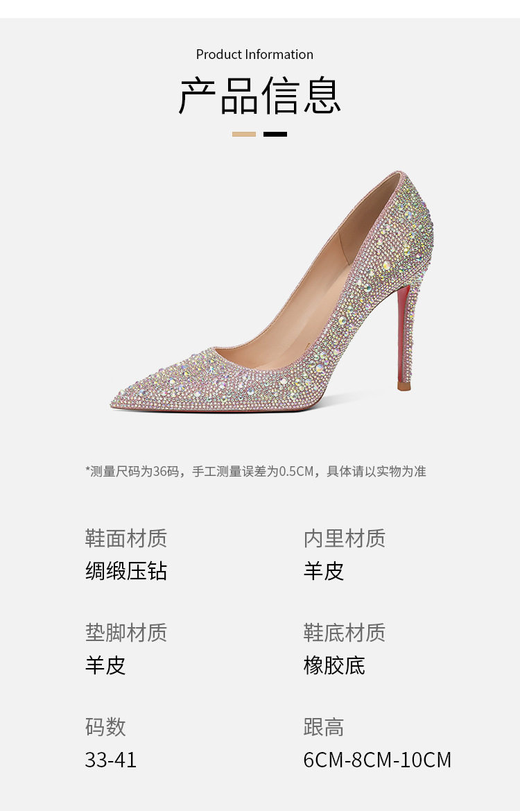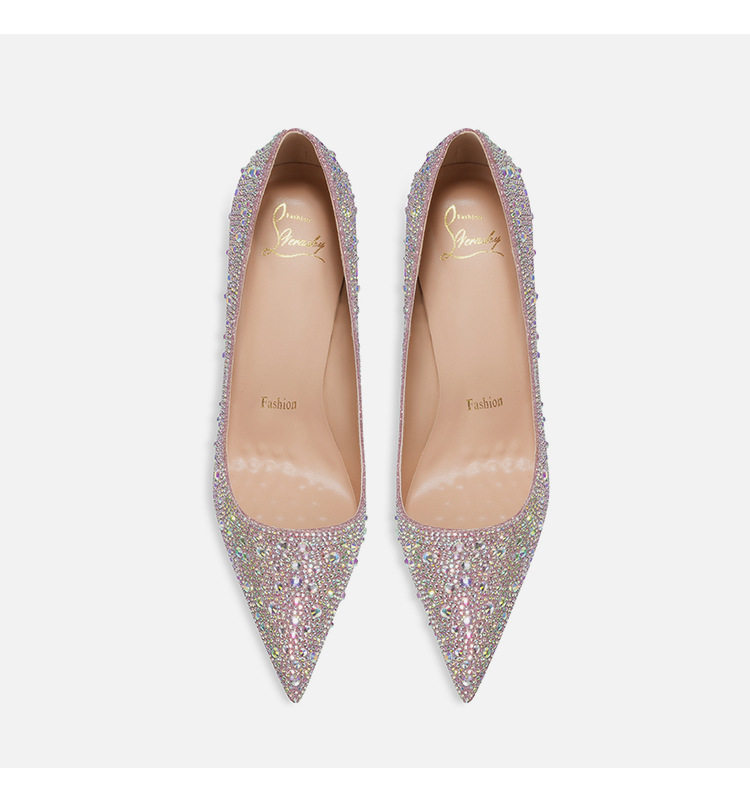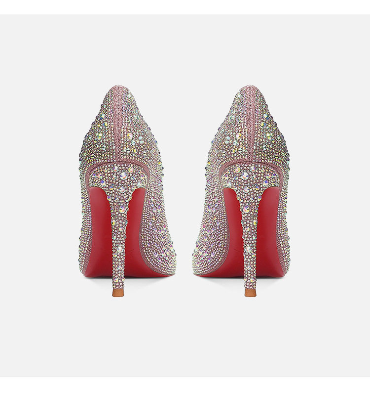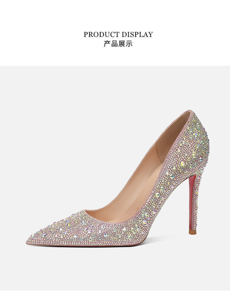 Red Bottom High Heels for Women 2025 New Style Rhinestone Beautiful Sexy Main Wedding Dress Pointed Toe Stiletto Crystal Bridal Wedding Shoes for Women