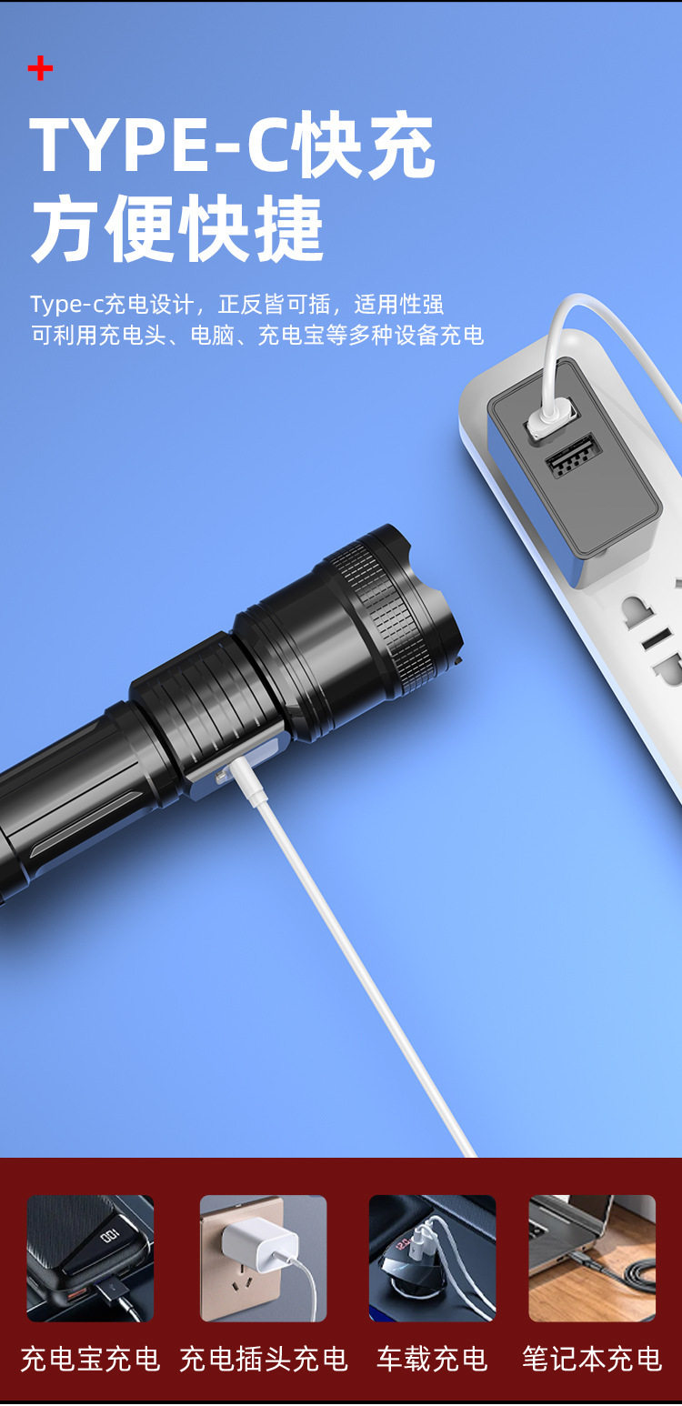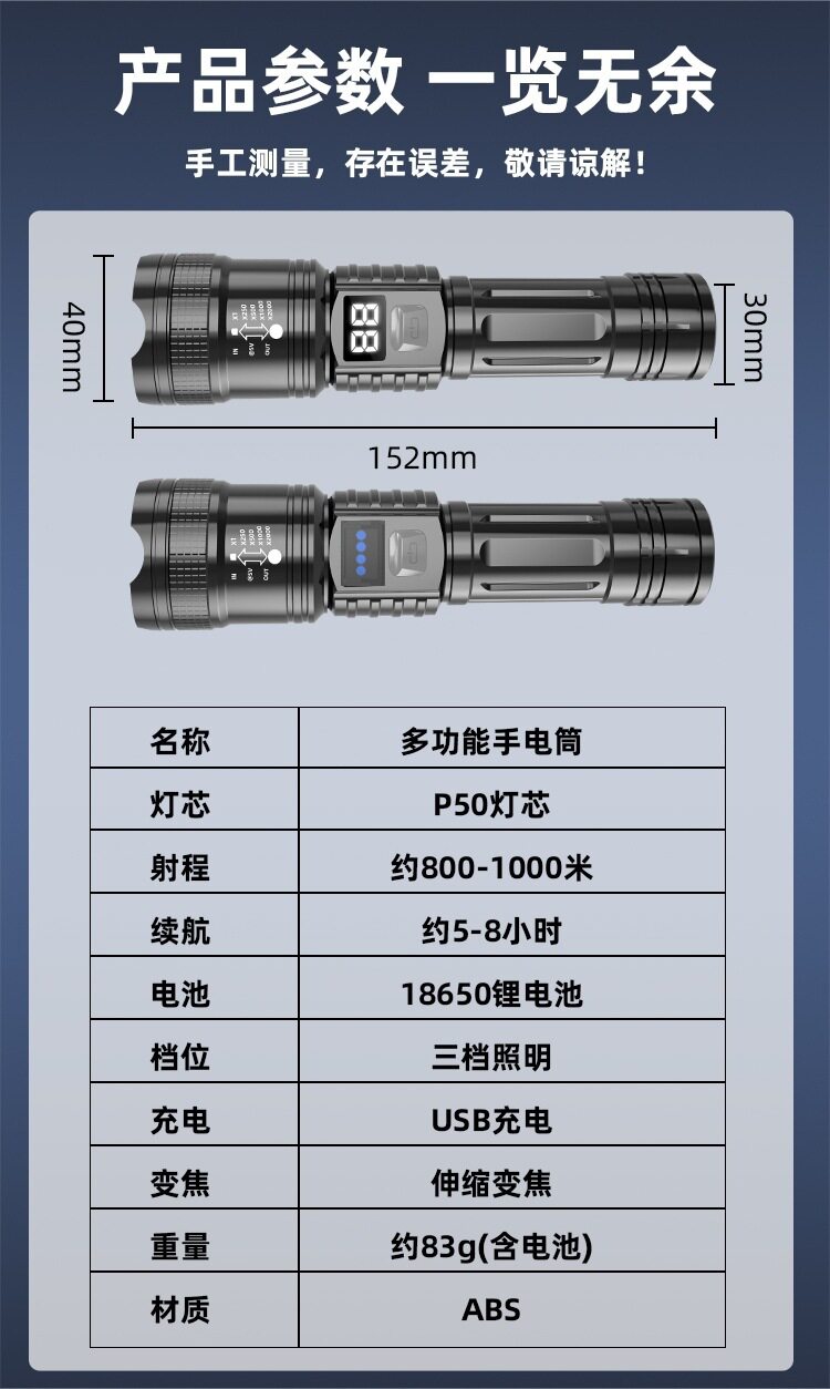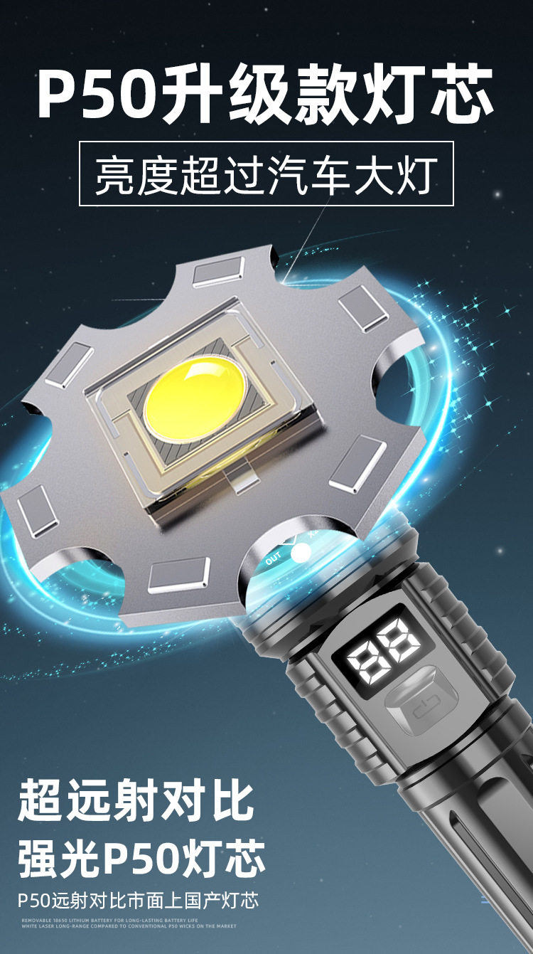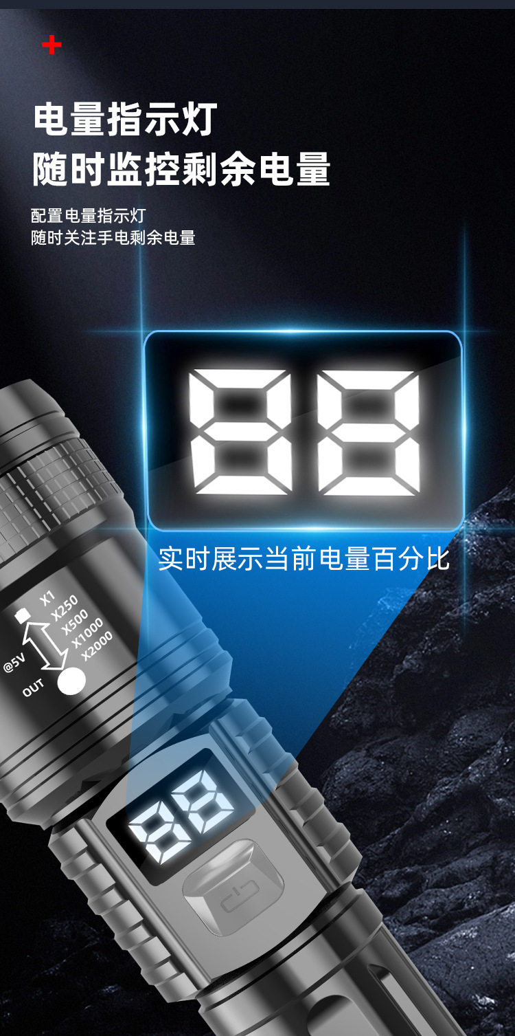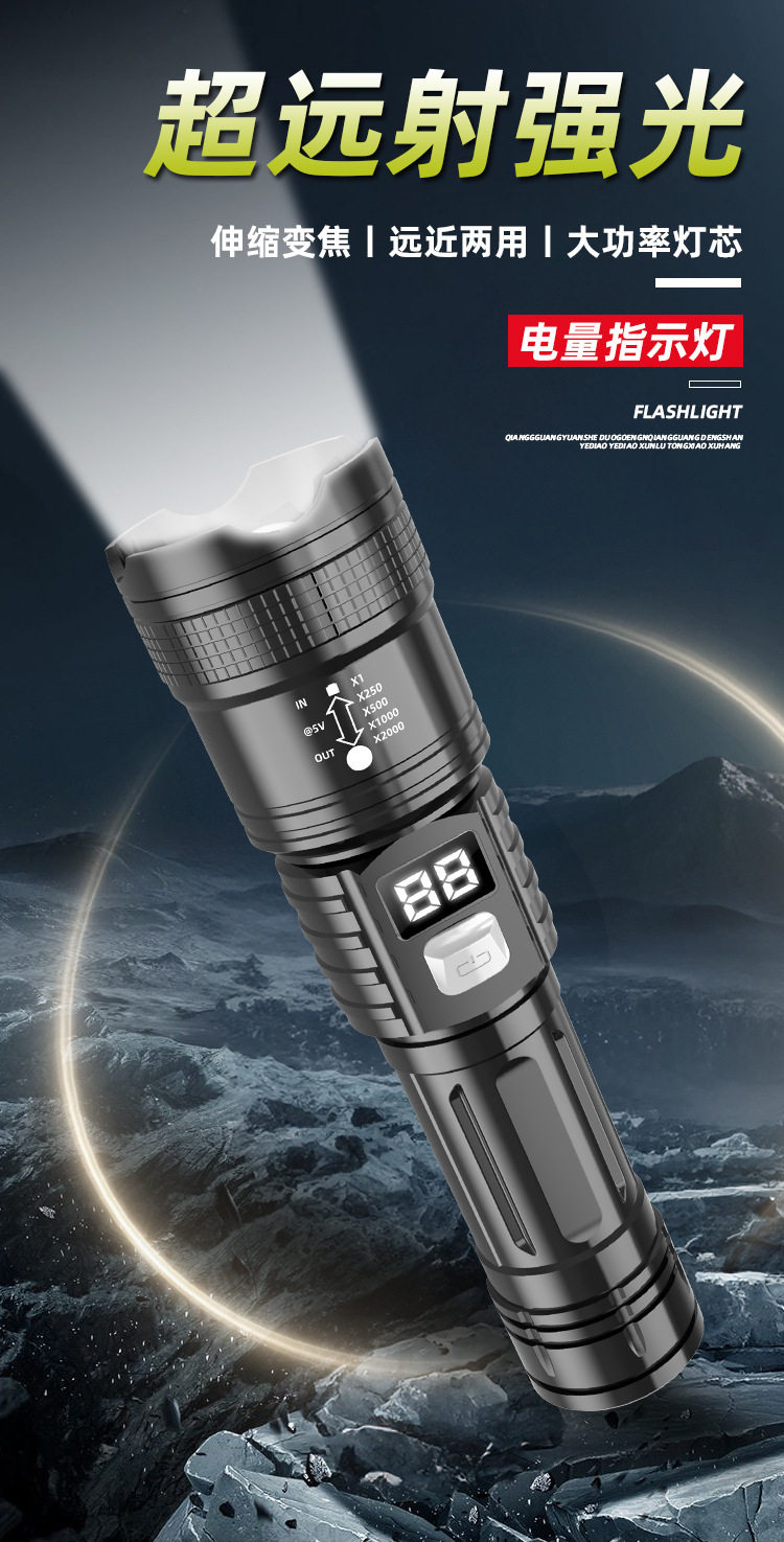 Cross-Border Strong Light Flashlight Laser Cannon Bright Telescopic Zoom Flashlight Digital Display Outdoor Portable Multi-Function Long Battery Life