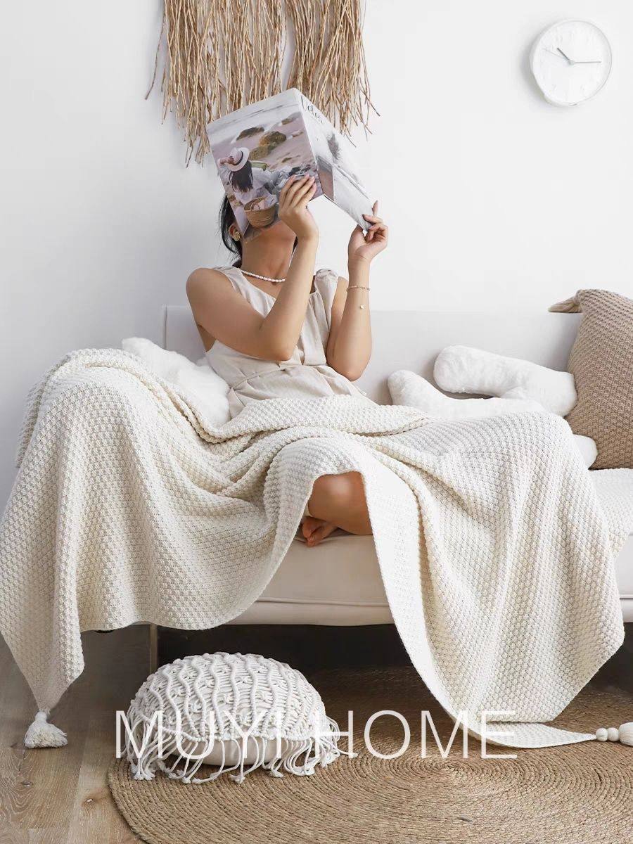 Ins Scandinavian Sofa Blanket Office Nap Blanket Tassel Knitted Wool Casual Air Conditioning Blanket