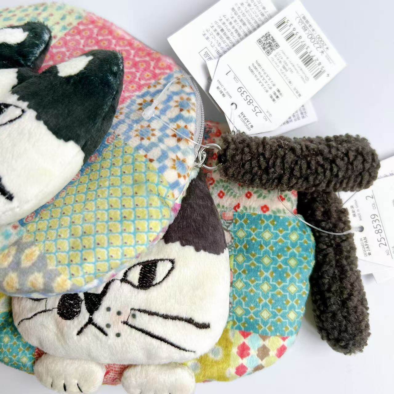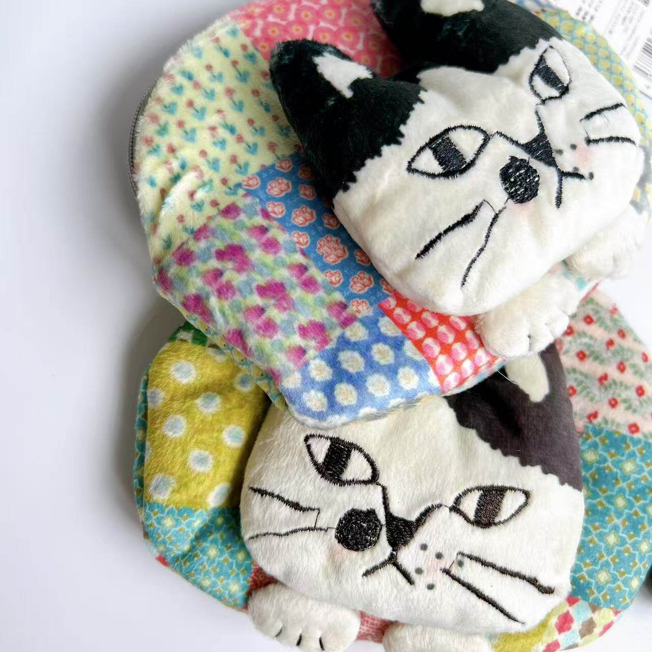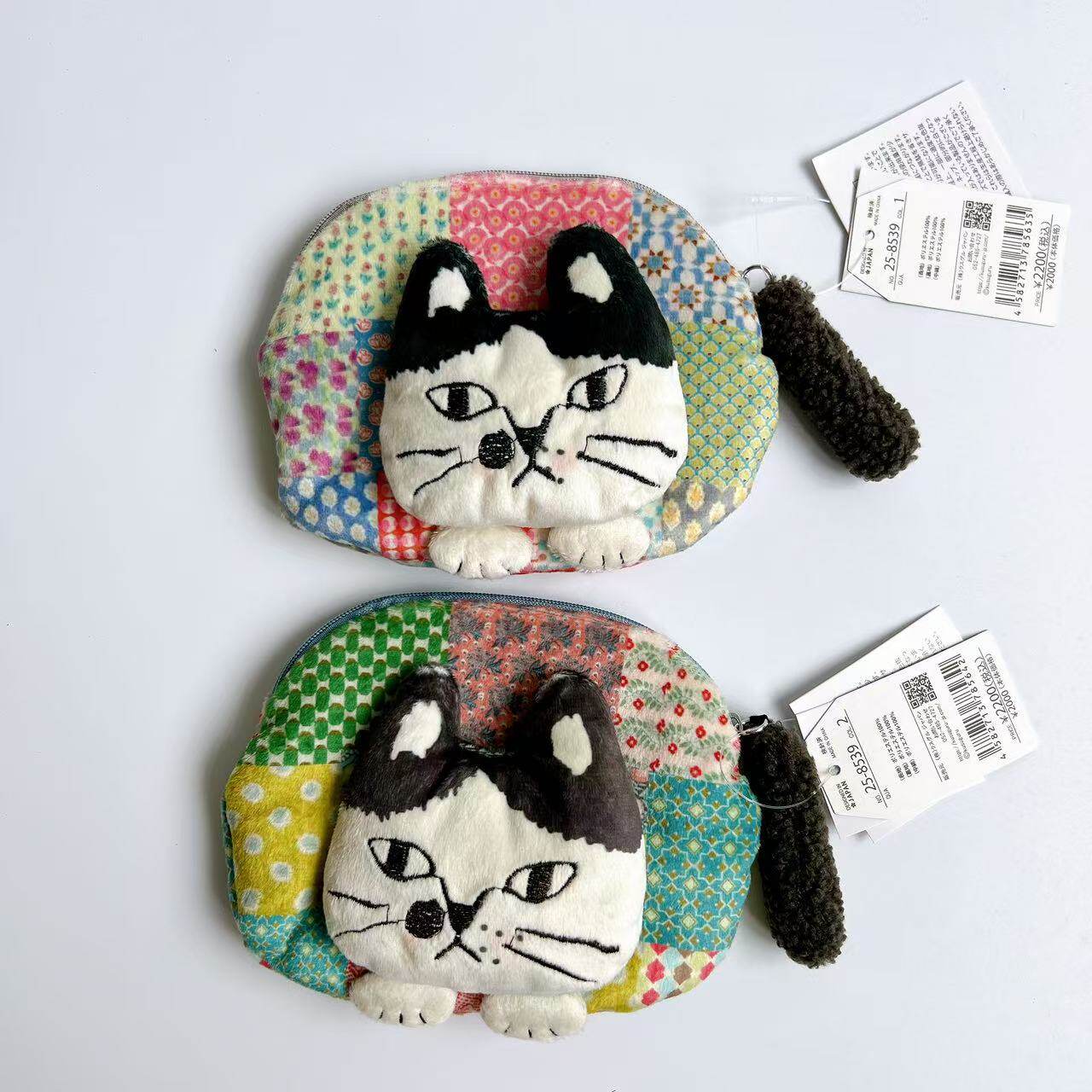 Japanese Kusuguru Genuine Embroidered Cat Coin Purse Clutch Wallet Earphone Data Cable Small Item Storage 401
