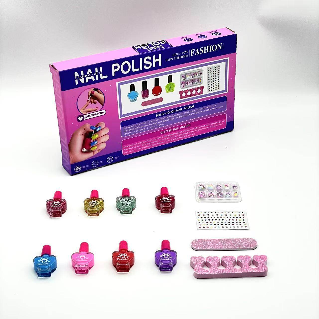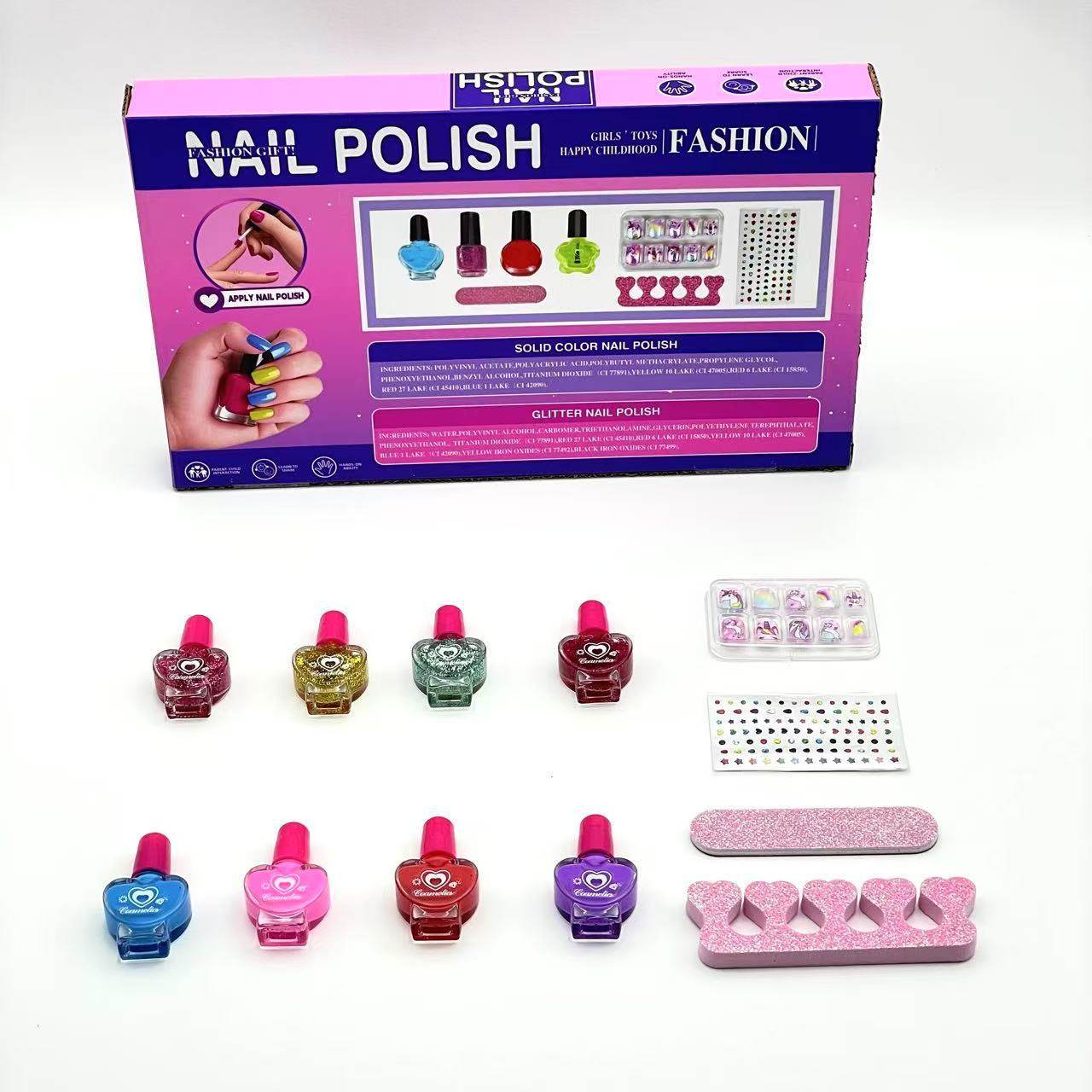 Cross-Border Hot-Selling New Children's Nail Polish Set Peach Heart Bottle Nail Polish Set Girls' Nail Art Glitter Nail Polish
