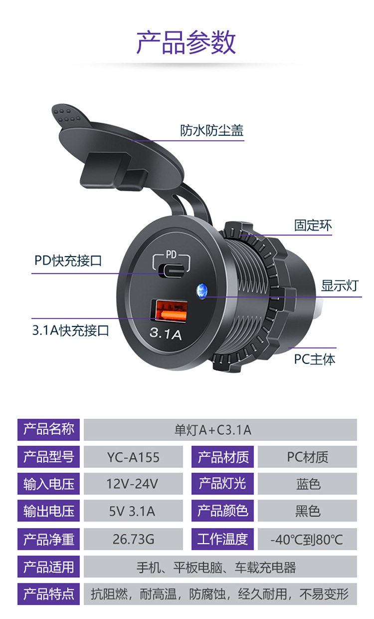 | Color | Digital display fast charging a+c (pearl bag),5v a+c (pearl bag),5v 3.1a (pearl bag),Super fast charge + 3.1a + c (pearl bag),Digital display fast charging dual u+double c (pearl bag),Packaging +0.55 does not include labor, please contact customer service |
