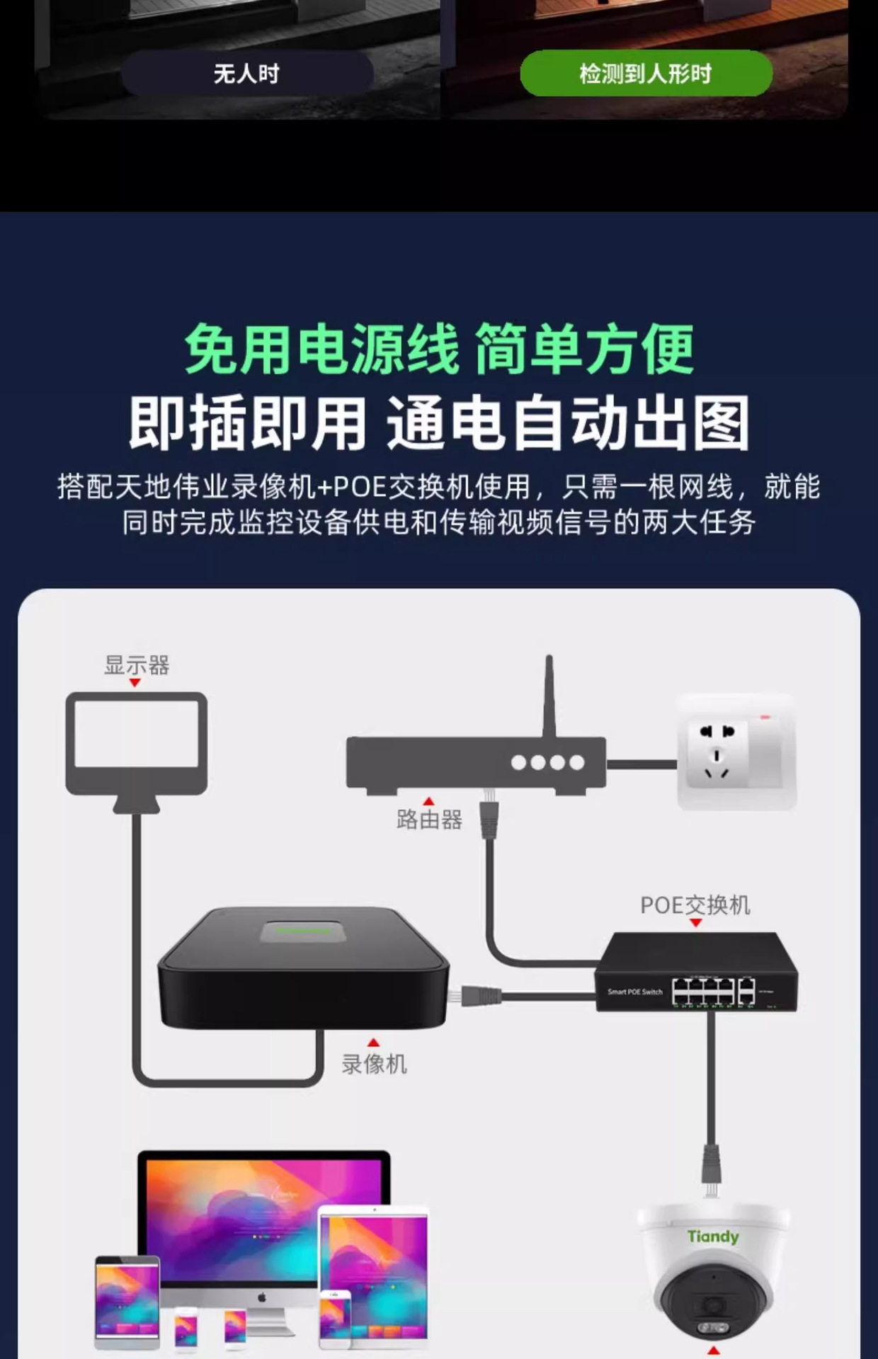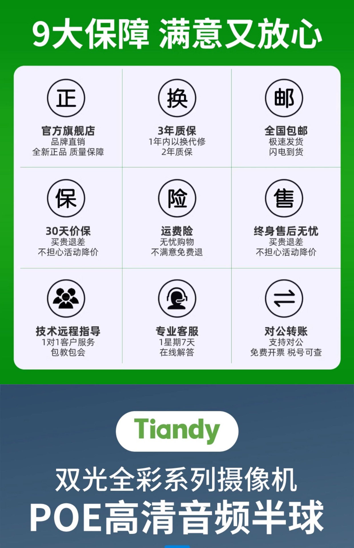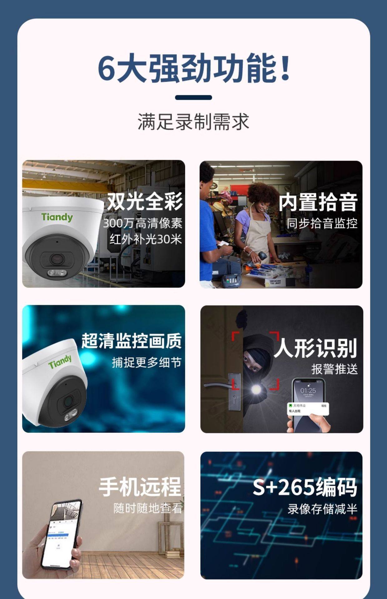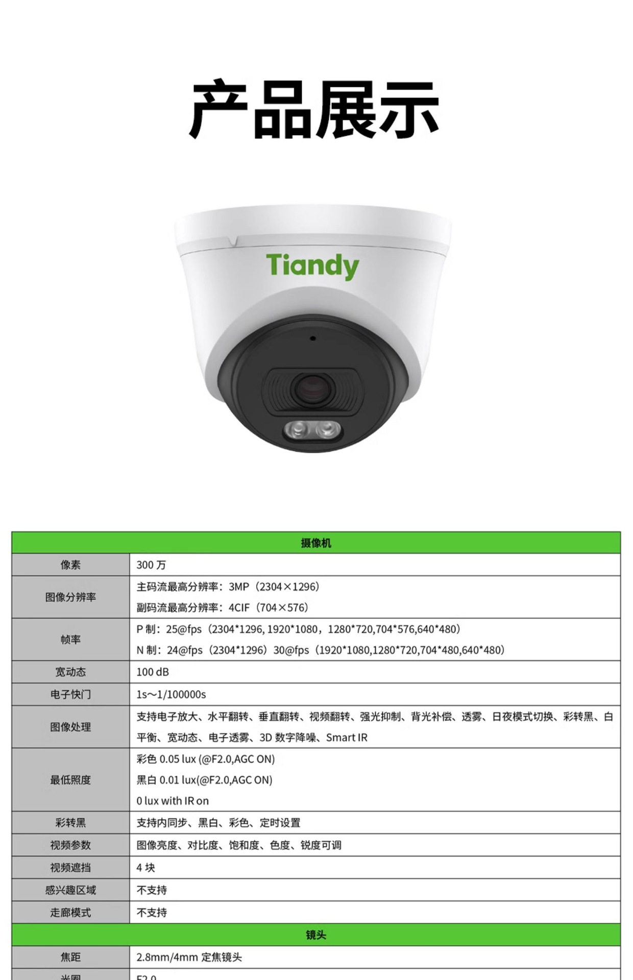 Tiandy Tiandiweiye 3Mp Poe Red Light/White Light Remote App Audio Recording Security Surveillance Camera