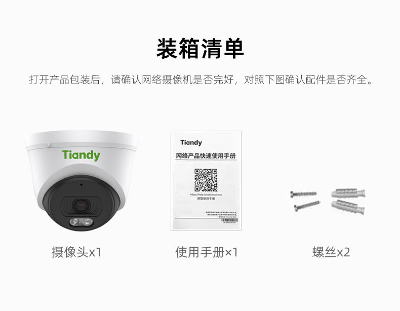 | Package list | Camera*1, manual*1, installation accessories*1 |
